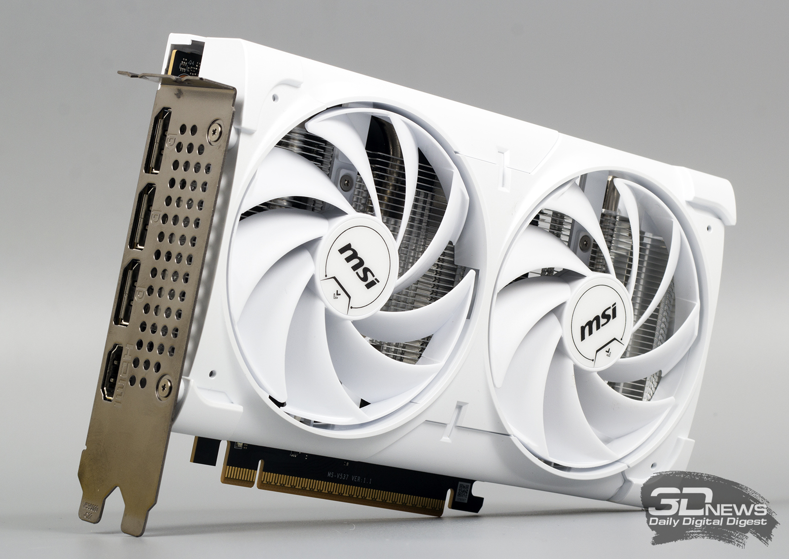 С другой стороны, стенд с GeForce RTX 5070 и 16 Гбайт ОЗУ чувствует себя великолепно как в разрешении Full HD, так и в WQHD, — по крайней мере в тех же «полевых» условиях я не обнаружил криминала. А так, конечно, мы можем подобрать ПО, настройки графики, разрешение и режимы работы системы, которые, что называется, положат на лопатки даже ПК с 12-гигабайтной видеокартой, — например, использовав 4K-разрешение в играх. Здесь важно другое: если видеопамяти в достатке, то у нас больше свободы действий и меньше проблем при запуске новых игр. Выходит, при выборе комплектующих для нового ПК и невозможности по какой-либо причине взять систему сразу с 32 Гбайт ОЗУ эффективнее все же сэкономить именно на оперативной памяти. Во-первых, производительность системы в большинстве игр не снизится — 16 Гбайт все еще хватает. Во-вторых, добавить в сборку еще 16 Гбайт DRAM гораздо проще (а чаще всего — и дешевле), чем заменить видеокарту. В тестировании приняла участие MSI GeForce RTX 5060 VENTUS 2X WHITE OC в белом исполнении. Видеокарта оснащена кулером с двумя вентиляторами TORX Fan 5.0. Ее длина составляет 197 мм. Устройство совместимо с большинством корпусов, включая компактные и стильные форм-факторы, такие как mini-tower и slim desktop. Радиатор состоит из большого блока алюминиевых ребер и двух медных теплотрубок. Задняя пластина выполнена из металла и способствует лучшему отводу тепла. Энергопотребление графического чипа не превышает 145 Вт — кулер GeForce RTX 5060 VENTUS 2X WHITE OC отлично справляется со своей работой. Перед вами тихий и холодный игровой ускоритель начального уровня. ⇡#Усидели на двух стульяхМассовая платформа LGA1700 появилась в 2021 году. С тех пор Intel выпустила для нее три поколения чипов — актуальность некоторых моделей не снизится в ближайшие годы. Кто бы мог подумать, что поддержка DDR4-памяти платформой окажется настолько полезной спустя целых пять лет?