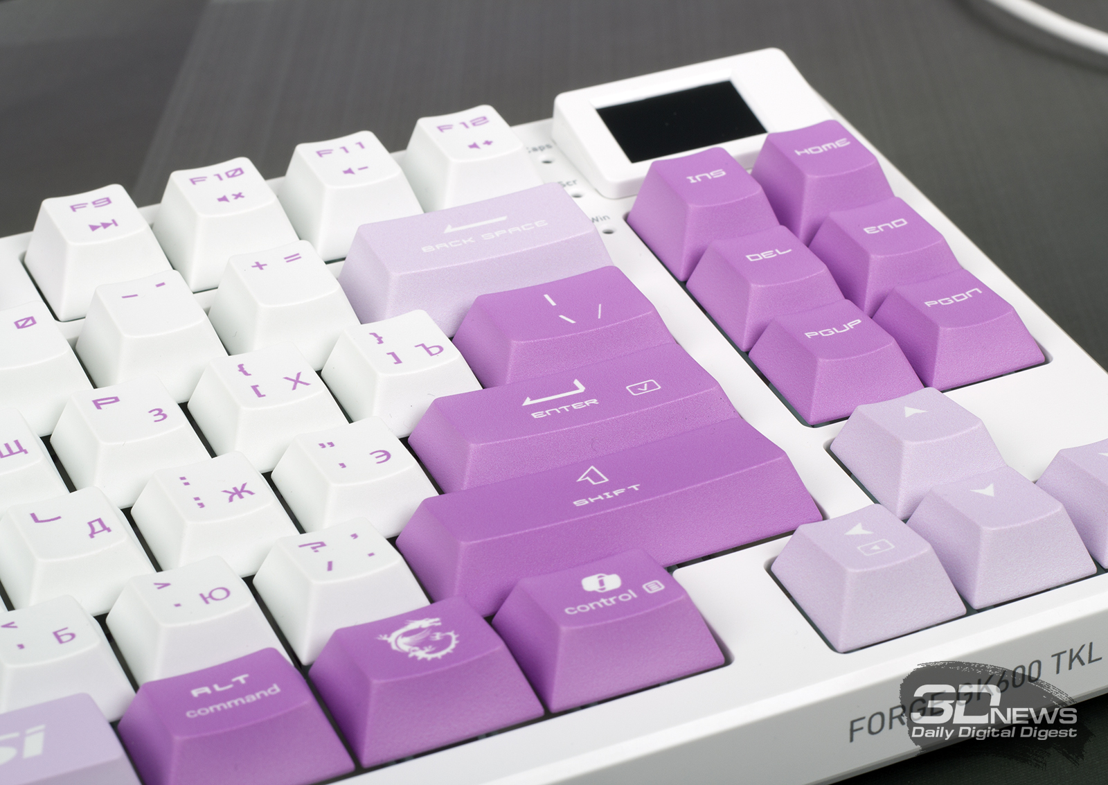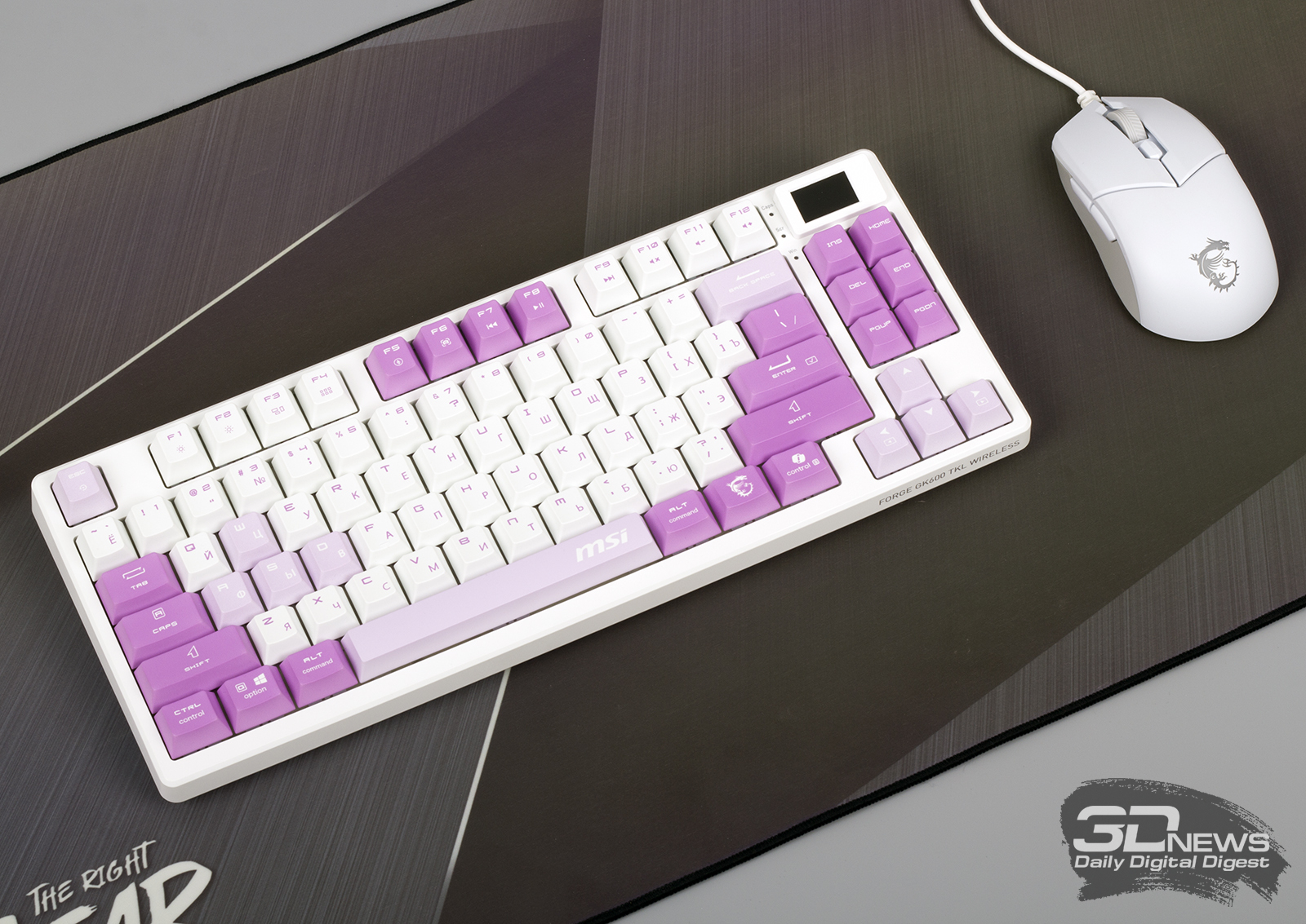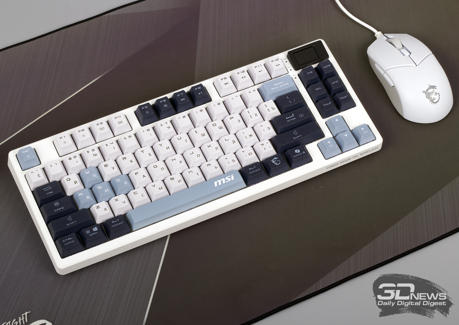 Смотреть все изображения (22) Для тестов мне предоставили блок питания MAG A850GLS PCIE5 на 850 Вт. Для конфигурации с GeForce RTX 5060 такой БП избыточен. Верно и то, что такого запаса мощности достаточно и для сборок с самыми мощными чипами Ryzen и Core, а также видеокартами Radeon и GeForce. В продаже, впрочем, встречаются модели мощностью 650, 750, 1000 и даже 1200 Вт. Все устройства гарантируют, что вся заявленная мощность может передаваться по 12-вольтовой линии. Блоки питания соответствуют энергетическому сертификату 80 PLUS Gold. Устройства оснащены полноценным разъемом 12V-2×6, передающим до 600 Вт электроэнергии. Пластиковый коннектор окрашен в желтый цвет — таким образом производитель снижает вероятность неправильного подключения разъема к видеокарте. Кабель-менеджмент здесь — полностью модульный. Каждый провод оснащен тисненой изоляций — это красиво, надежно и удобно. За охлаждение компонентной базы отвечает 135-мм вентилятор с долговечным гидродинамическим подшипником и очень тихой работой. Вместе с железом в тестовую лабораторию приехала различная периферия MSI. Мое внимание привлекли клавиатуры FORGE GK600 TKL WIRELESS. В продаже встречаются версии фиолетового и синего цветов. Клавиатуры тоже оснащены настраиваемой RGB-подсветкой. Подключение устройств — гибридное, доступны беспроводные режимы 2,4 ГГц и Bluetooth, а также прямое соединение с ПК по USB-кабелю. Встроенный аккумулятор на 4000 мА·ч обеспечивает до 20 дней работы клавиатуры с выключенной подсветкой. Аббревиатура TKL в названии устройств говорит о том, что клавиатура лишена цифрового блока, но оснащена 1,06-дюймовым дисплеем. Последний позволяет следить за уровнем заряда АКБ, а также обеспечивает быстрый доступ к настройке RGB-подсветки периферийного устройства (доступны 20 эффектов и 5 зон). На полную зарядку батареи требуется 6 часов. Механические переключатели FORGE GK600 TKL WIRELESS обеспечивают плавное, четкое и отзывчивое нажатие. Посторонних звуков не замечено — слышна только работа переключателя. При этом механические детали можно заменить без пайки моделями сторонних производителей. В MSI гарантируют, что внешний лоск клавиатуры не сойдет на нет даже спустя годы ее активного использования. Все из-за применения специального пластика с технологией сублимации красителя. Все тесты для этой статьи проводились в 19 играх в трех популярных разрешениях: Full HD (1920 × 1080), WQHD (2560 × 1440) и Ultra HD (3840 × 2160). Полный перечень приложений и настроек графики приведен ниже (настройки графики 1):