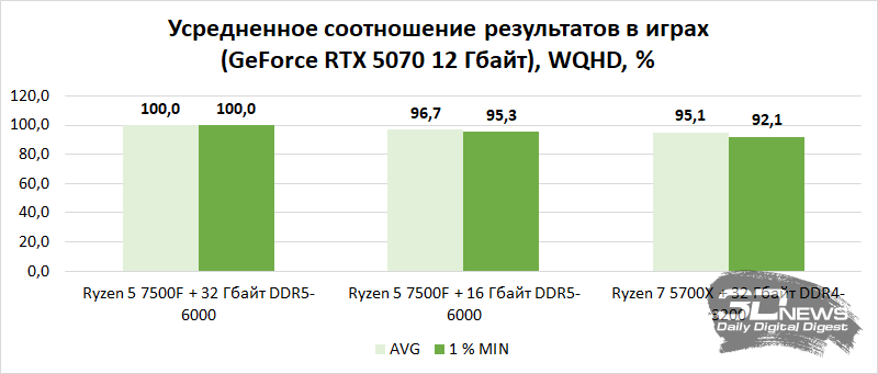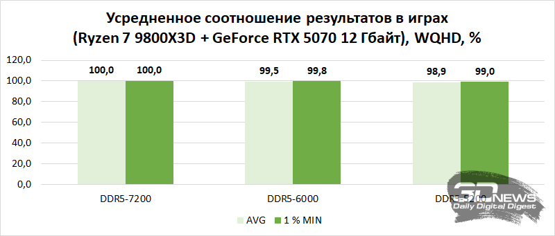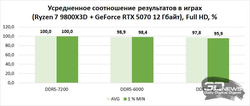 Меньше всего требований к выбору оперативной памяти предъявляют системы, собранные с использованием процессоров серий Ryzen 7000X3D и Ryzen 9000X3D. Тот же Ryzen 7 9800X3D полностью раскрывает потенциал GeForce RTX 5070 что с памятью стандарта DDR5-5200, что с DDR5-7200. ⇡#ВыводыПодведу итоги в виде тезисов: