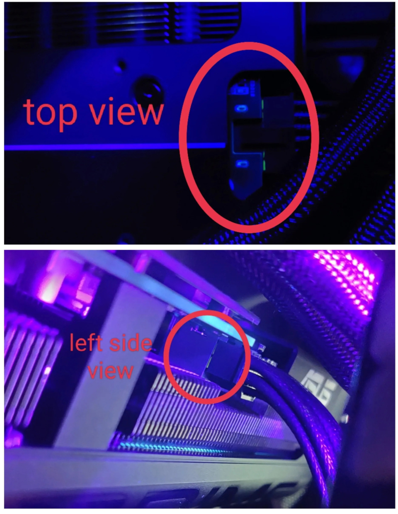 Пользователь SnooPaintings7769 сообщил на форуме Reddit, что 12+4-контактные коннекторы на стороне видеокарты и блока питания были полностью вставлены без натяжения кабеля, а затем постепенно самостоятельно вылезли из разъёмов, к которым они были подключены.