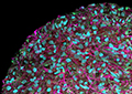 (A) при пассивной диффузии кислород, питательные вещества и факторы роста проникают в органоид на глубину всего около 300 мкм, поэтому в ядрах более крупных образований начинается некроз; (B) микрофлюидные устройства обеспечивают контролируемую перфузию по всему объёму более крупных органоидов (источник: Johns Hopkins University)