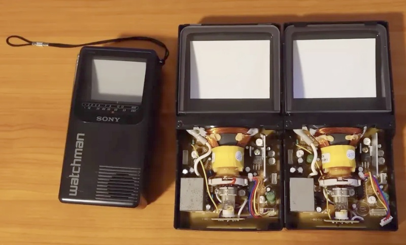 Чёрно-белые ЭЛТ-мониторы Sony Watchman с чересстрочной развёрткой обеспечивают разрешение 640 × 480 пикселей. В этих мониторах электронная пушка располагается под очень малым углом к люминофорному экрану, что позволило сделать всю конструкцию относительно тонкой.