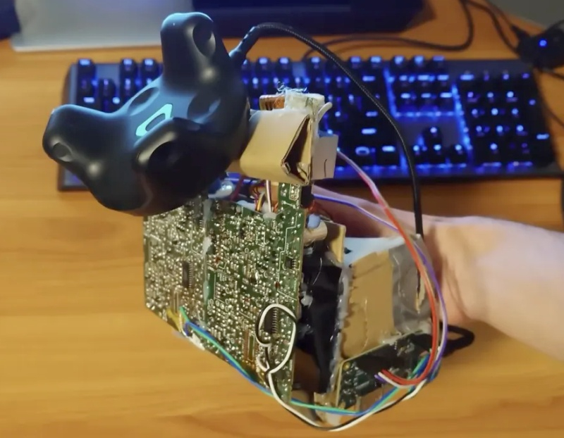 В качестве отправной точки dooglehead использовал проект VR-гарнитуры с открытым исходным кодом, найденный на GitHub. Обычно такие гарнитуры основаны на небольших ЖК-дисплеях, которые можно напрямую подключить к ПК. Разработчику пришлось использовать ЦАП для преобразования цифрового видеовыхода в аналоговый сигнал, совместимый с ЭЛТ. Он также применил готовую систему отслеживания положения головы на основе инфракрасного лазера.