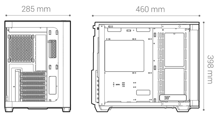 А по габаритам Iota C70 Curve ARGB скорее напоминает прозрачный сундучок, нежели привычный компьютерный корпус, поскольку его толщина увеличена со стандартных 230-235 до 285 мм, а высота, наоборот, уменьшена с 480-500 до 398 мм.