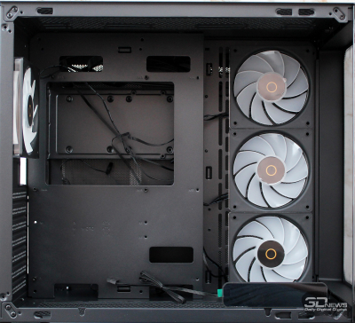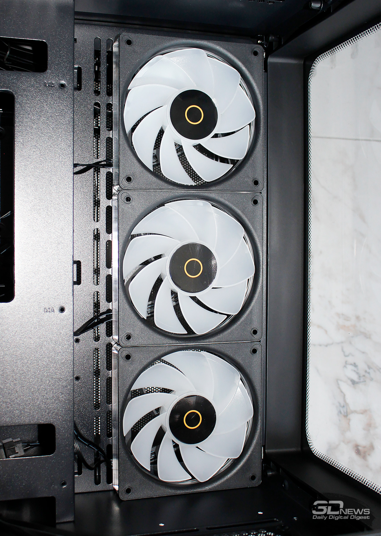 Три 120-мм вентилятора сбоку (вдув, до 1760 об/мин, PWM-регулировка, с ARGB-подсветкой);