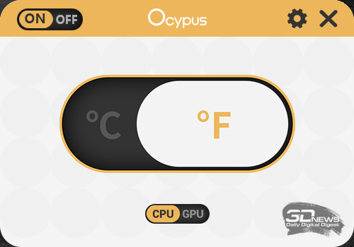 На дисплей выводится только температура процессора или видеокарты, а из настроек доступны лишь единицы измерения и автозагрузка.