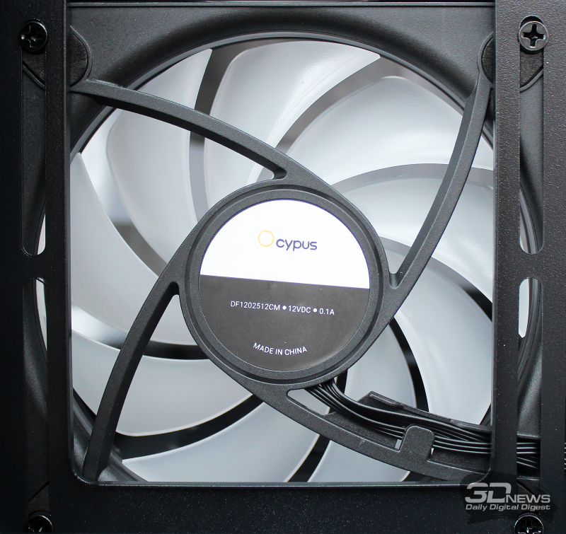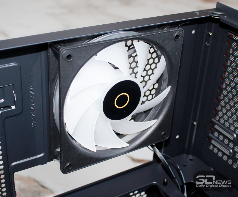Как мы уже упоминали выше, четвёртый вентилятор установлен на задней стенке корпуса и сориентирован на выдув из него.