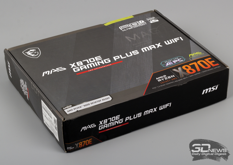 Упаковка MAG X870E GAMING PLUS MAX WIFI не обескуражит своего владельца помпезностью и броскостью. Ну и хорошо — зато она помещается в любом рюкзаке средних размеров. Постоянные читатели 3DNews знают: главное — что находится внутри. А там: