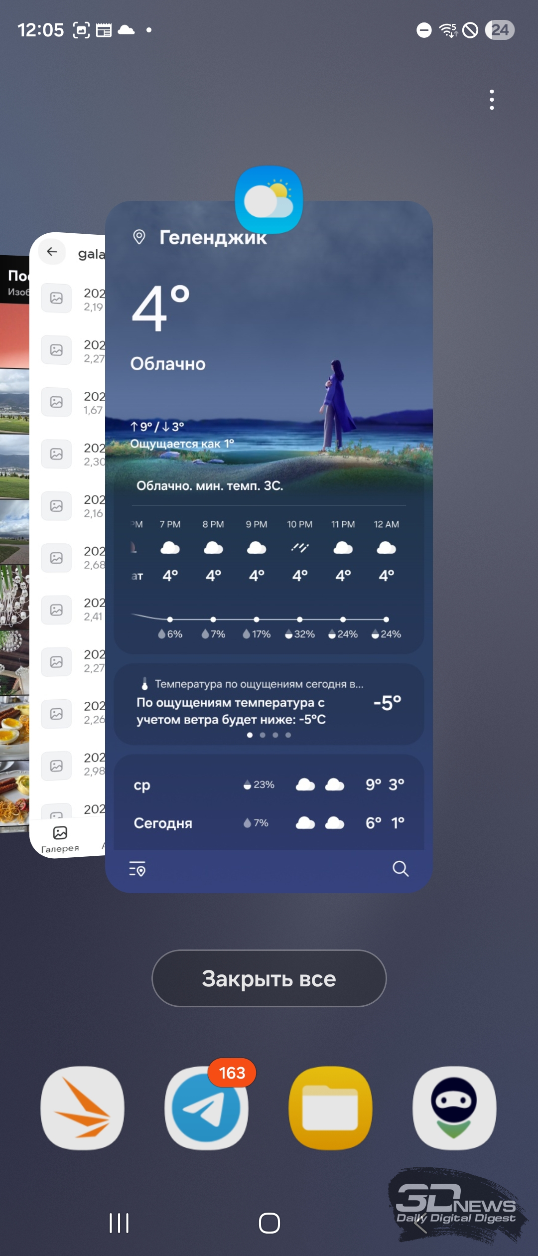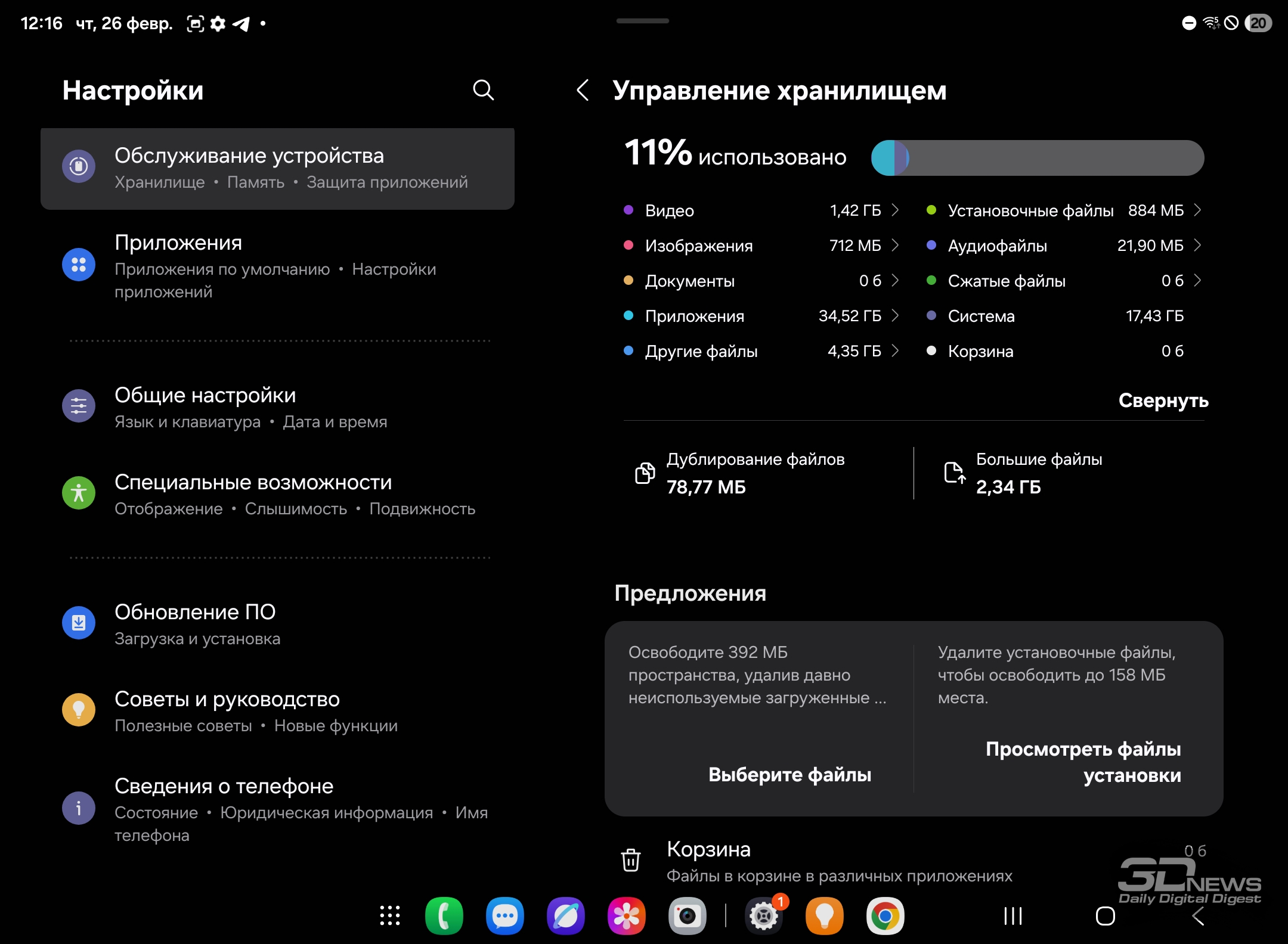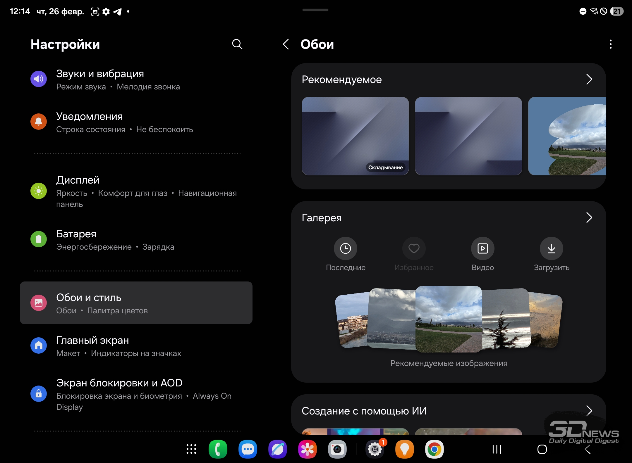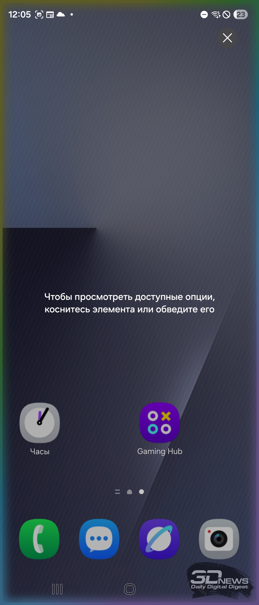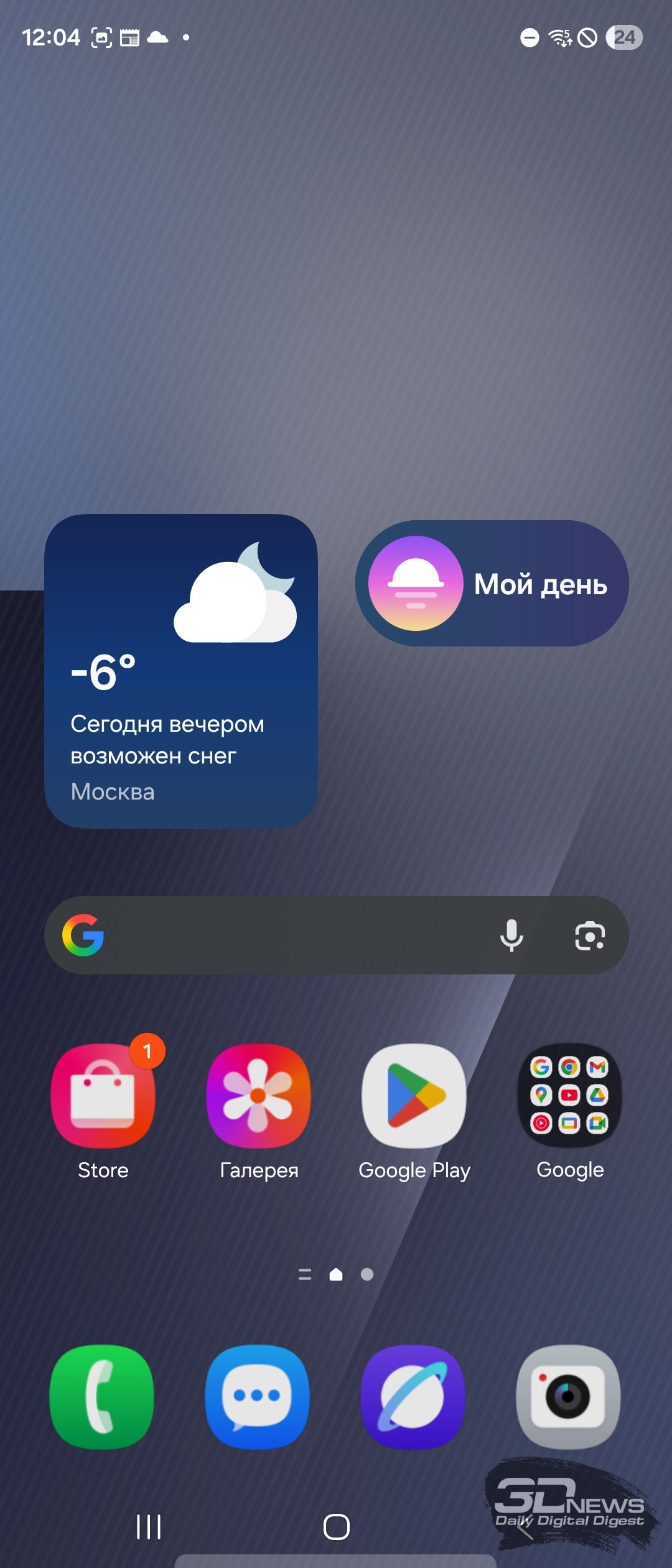 Глобально (да на самом деле и локально) оболочка OneUI 8.0 на тройном складном не отличается от таковой на обычном складном смартфоне — сравнивать стоит именно их, конечно, у этих гаджетов своя специфика интерфейса с необходимостью адаптировать приложения под разные форматы и особым рабочим столом со значками быстрого доступа. Все работает как и на Galaxy Z Fold7, к примеру. Оболочка Samsung Galaxy Z TriFold на внутреннем экране