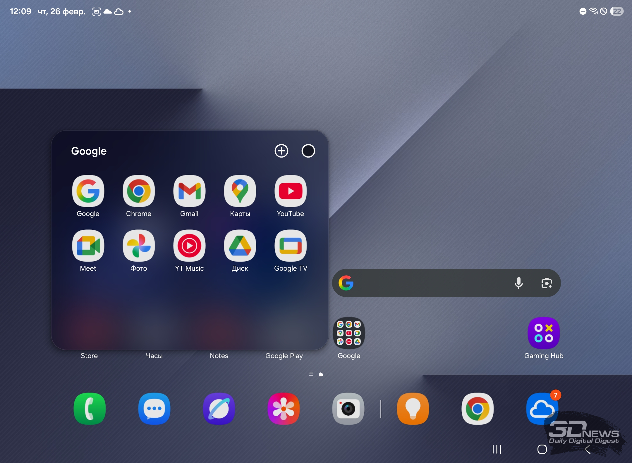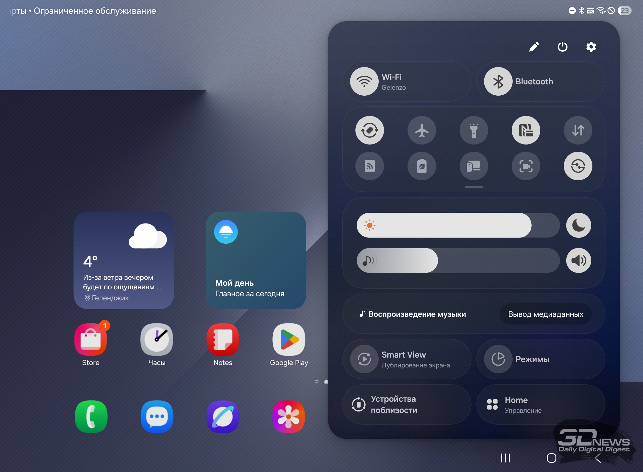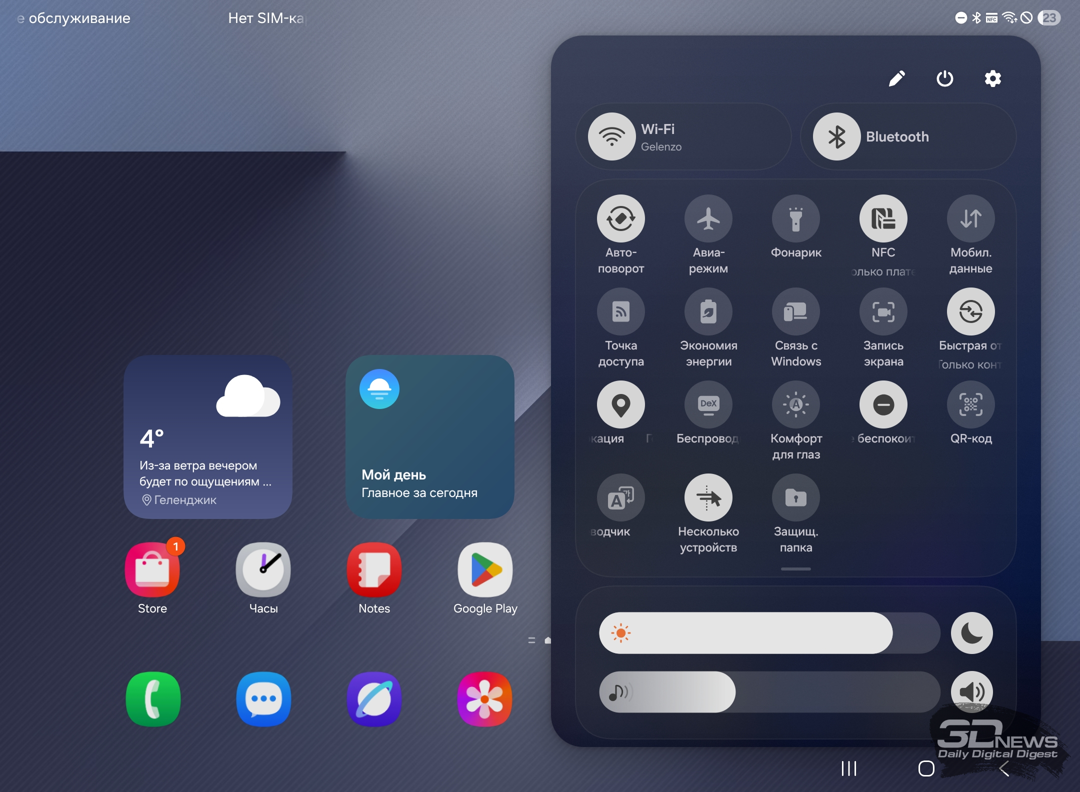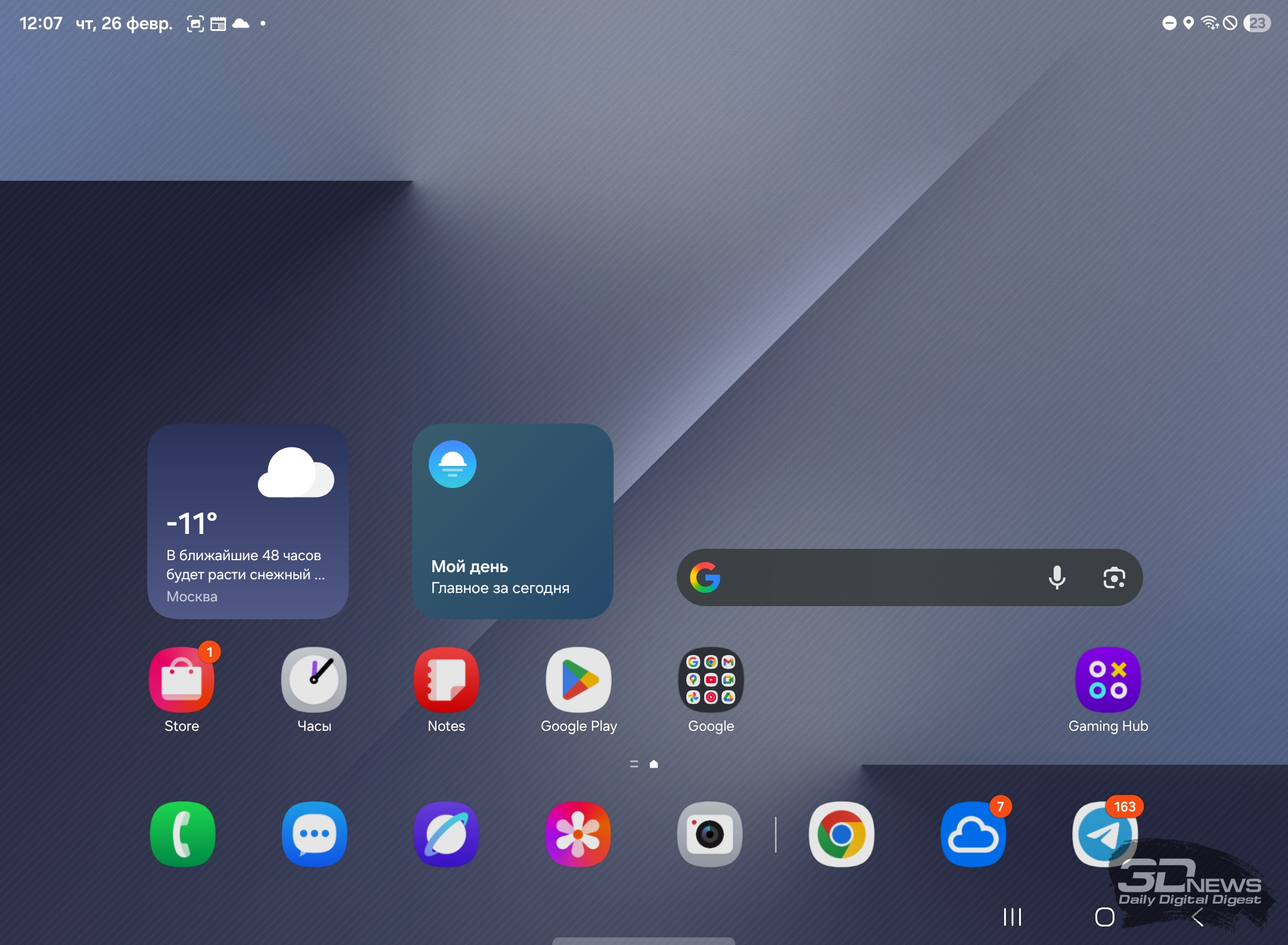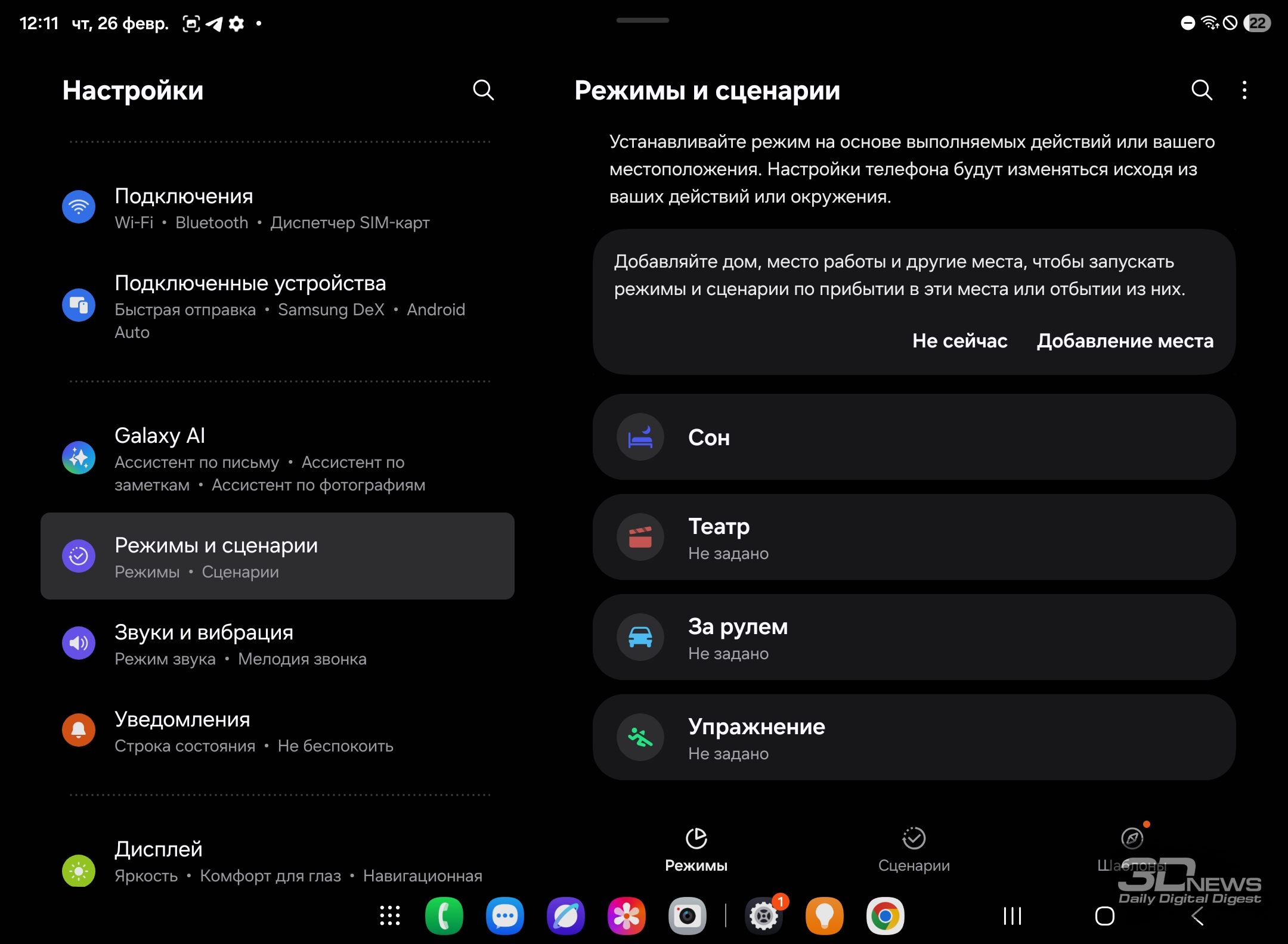Глобально (да на самом деле и локально) оболочка OneUI 8.0 на тройном складном не отличается от таковой на обычном складном смартфоне — сравнивать стоит именно их, конечно, у этих гаджетов своя специфика интерфейса с необходимостью адаптировать приложения под разные форматы и особым рабочим столом со значками быстрого доступа. Все работает как и на Galaxy Z Fold7, к примеру. Оболочка Samsung Galaxy Z TriFold на внутреннем экране