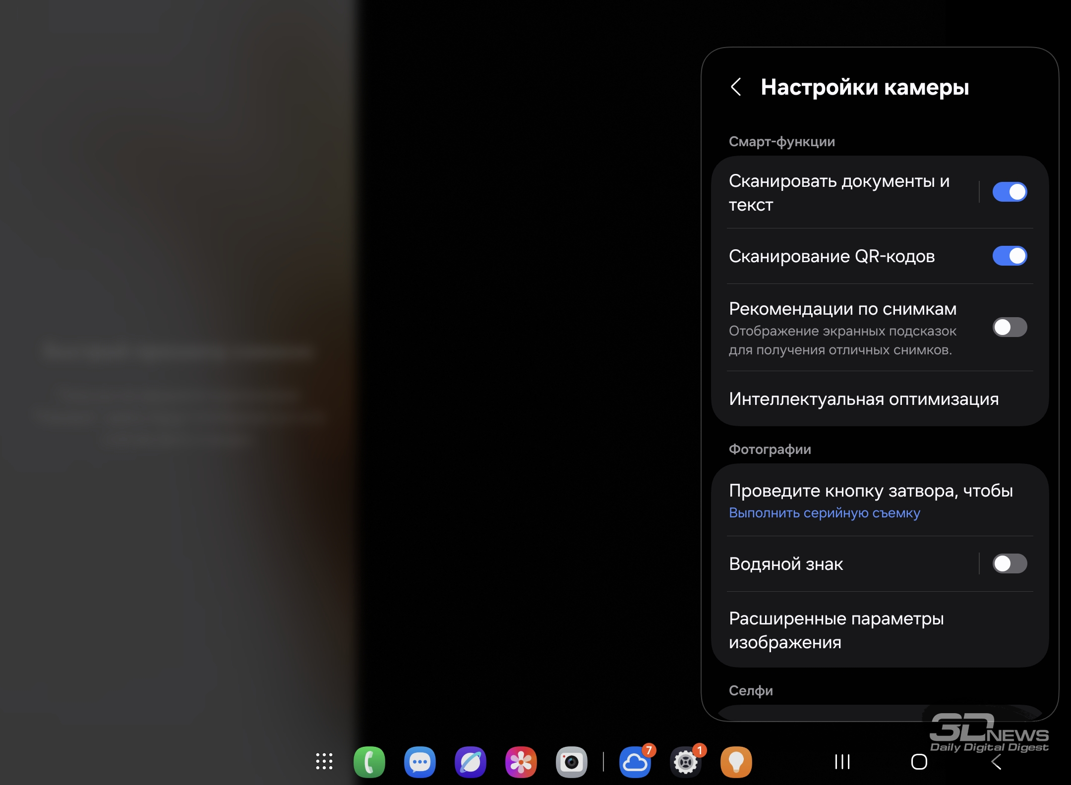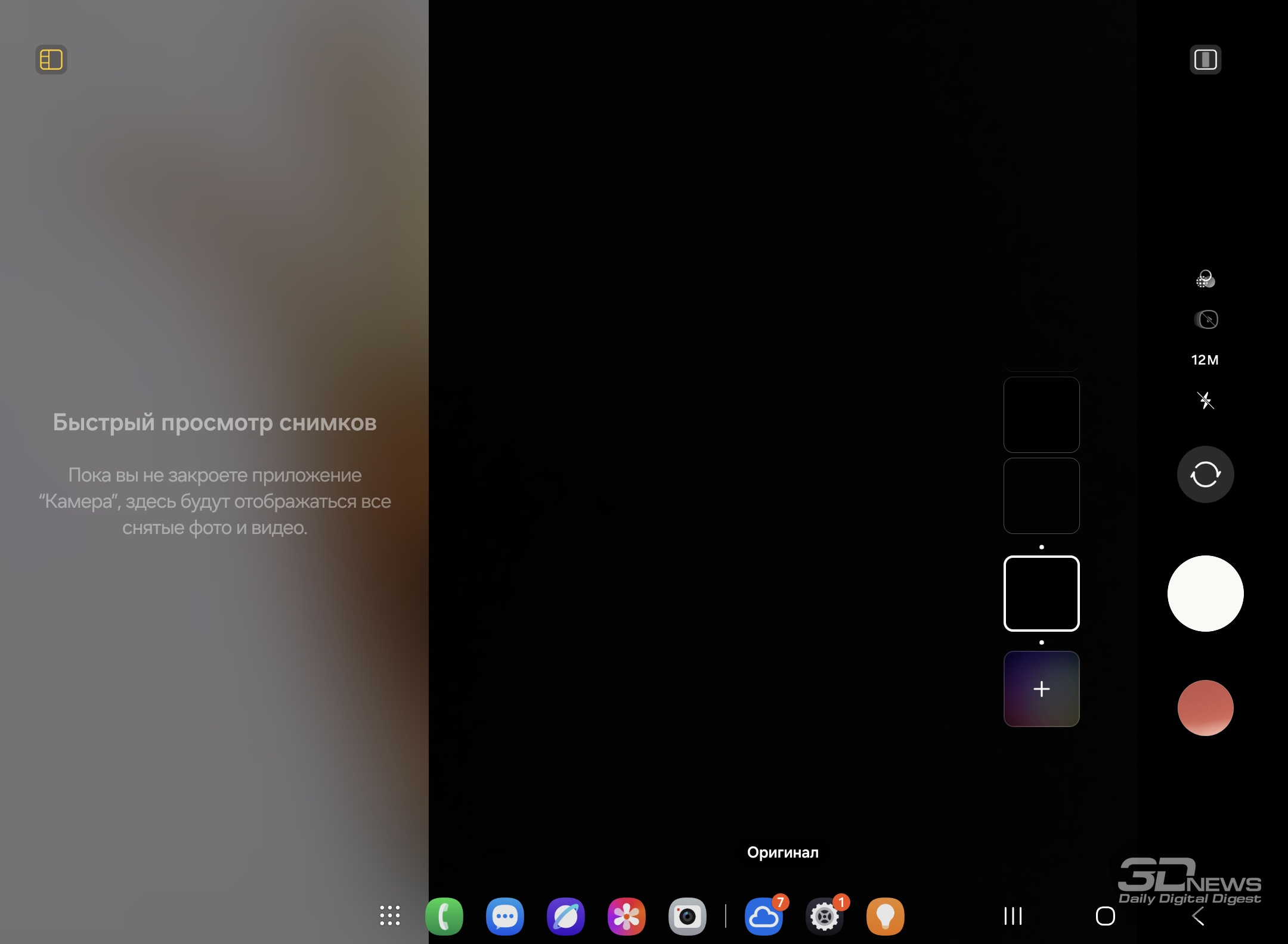 Приложение для съемки адаптировано как для внешнего экрана, так и для внутреннего — в последнем случае значки и функциональные элементы расставляются пошире, в необходимом «планшетном» формате, можно на экран вывести одновременно галерею и экран съемки. Но в целом зачем фотографировать на TriFold в разложенном состоянии — не совсем понятно, подобный режим пригодится разве что для видеозвонков. Набор режимов небольшой, что типично для смартфонов Samsung, но все самое важное (вроде возможности снимать RAW-фото и замедленные видео, ручных режимов для съемки фото и видео) есть. Примеры фотосъемки на смартфон Samsung Galaxy Z TriFold