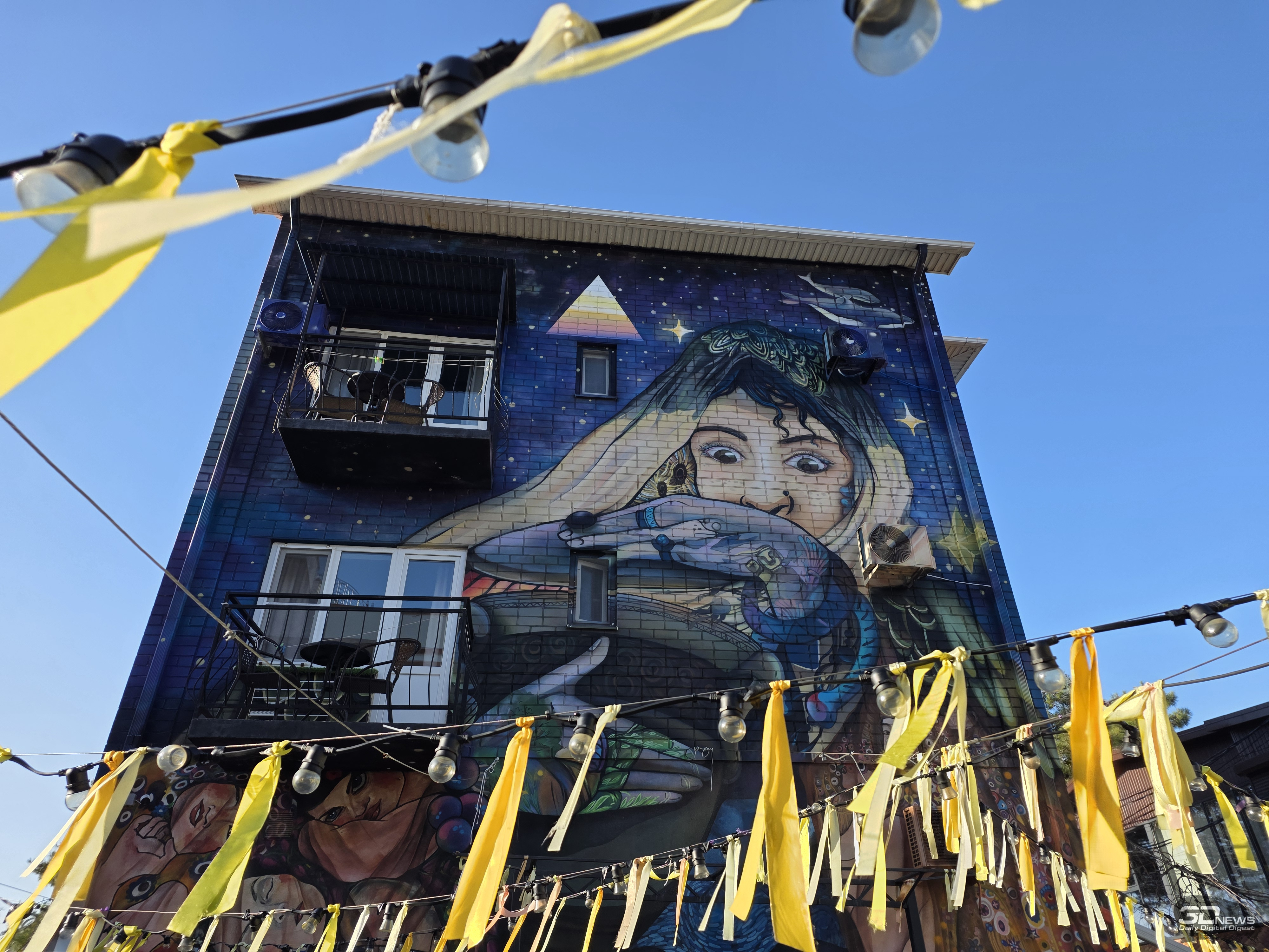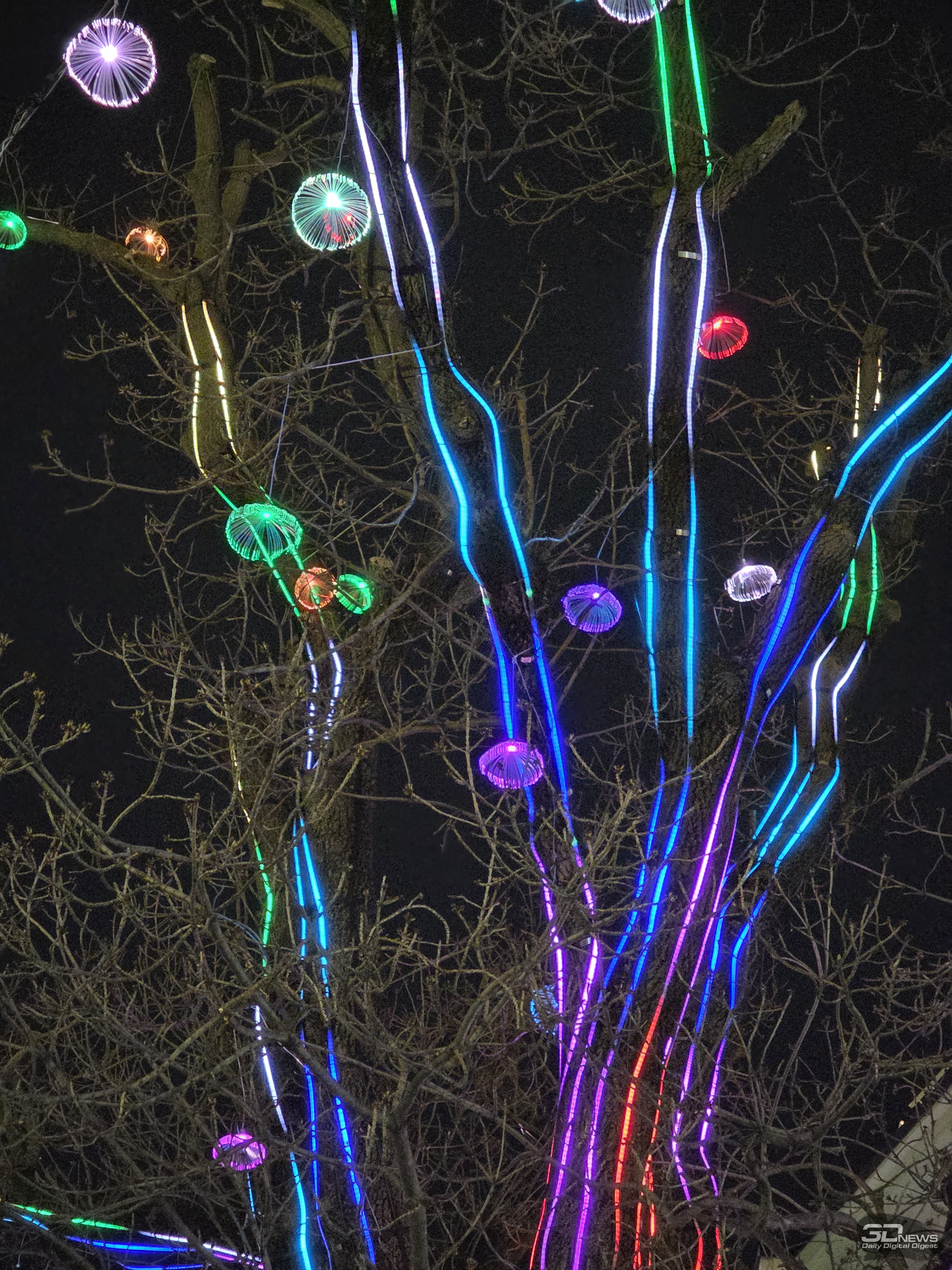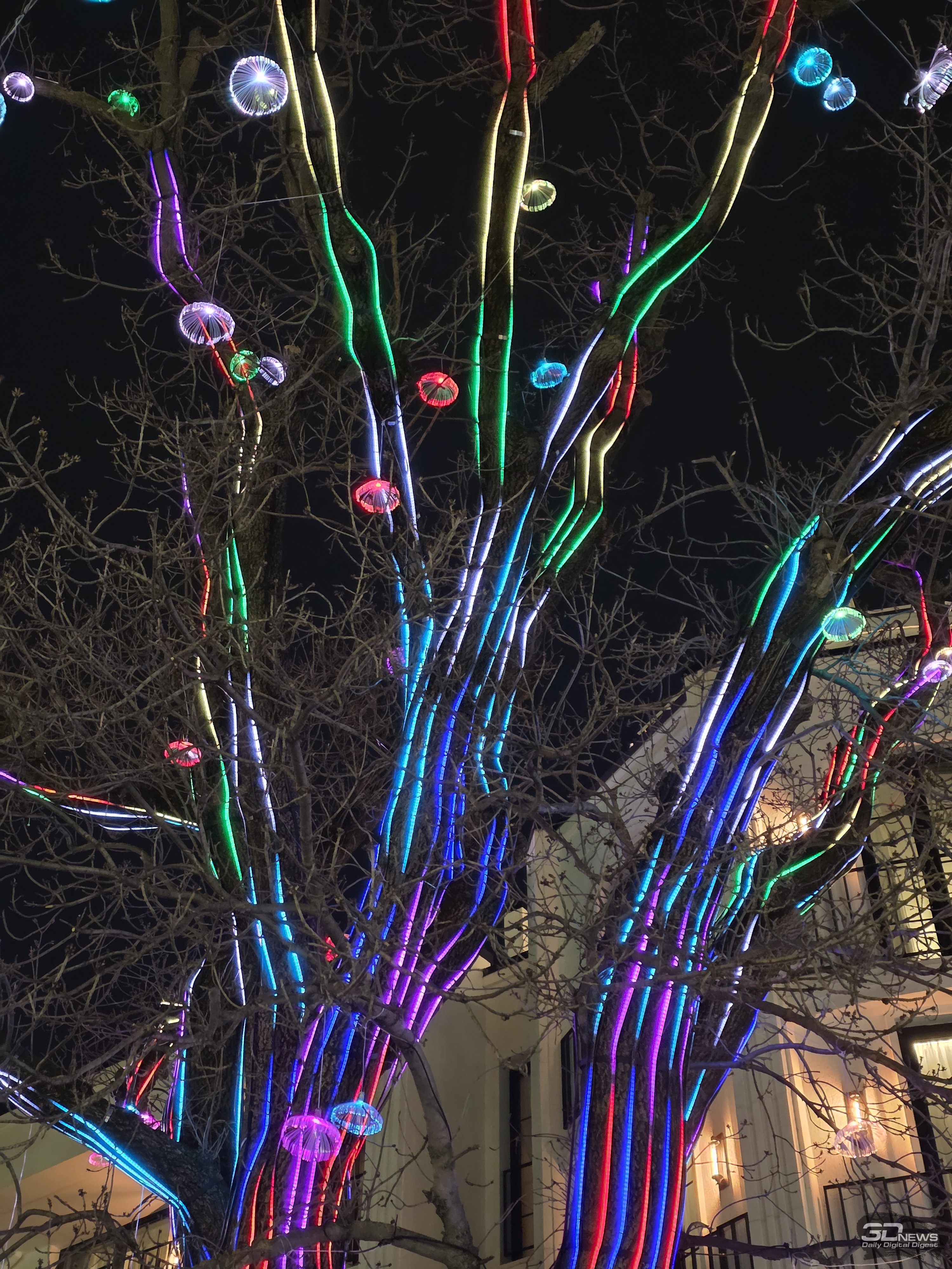 В Samsung Galaxy Z TriFold базово доступны четыре фокусных расстояния — наряду с тремя «оптическими», которые обеспечиваются непосредственно установленными здесь камерами, доступно и одно «гибридное» (двукратный зум). Причем за счет использования 200-мегапиксельного сенсора Samsung, судя по всему, решает сразу две задачи: помимо кропа для двукратного зума картинка с этого модуля, скорее всего, используется для доработки «естественного» трехкратного зума. Главная камера со своим родным фокусным расстоянием обеспечивает очень высокий уровень съемки. Тут сказывается и то, что это технически передовой датчик, и его габариты, и традиционно качественная работа Samsung с постобработкой. Днем динамический диапазон очень широкий, детализация — высокая, но без признаков «перешарпа». Да, цветопередача холодноватая, но тут дело вкуса, все более-менее в пределах нормы. К тому же баланс белого не пляшет от камеры к камере, это признак хорошего тона. Ночью отмечаем хороший баланс между светлыми и темными участками, проработанное небо, нормальную работу с источниками освещения в кадре и правильные цвета, а также приемлемый уровень шумов при разумном балансе между шумоподавлением и детализацией. Двукратный зум реализован достойно, но не выдающимся образом. Общий характер снимков тот же, что и при съемке со стандартным фокусным расстоянием, но уже появляется заметный «перешарп», проявляются артефакты при сложном освещении (например, солнечные блики и отражения могут вызывать хроматические аберрации) и в целом заметно вмешательство нейросетей в доработку картинки. При этом режим остается рабочим как при идеальном освещении, так и ночью, снять на TriFold резкий и приятно смотрящийся снимок с двукратным зумом не составляет труда. Важно, что при ночной съемке шумоподавление действует неагрессивно, — и правда, более шумные снимки выглядят выигрышно в сравнении с замыленными.
