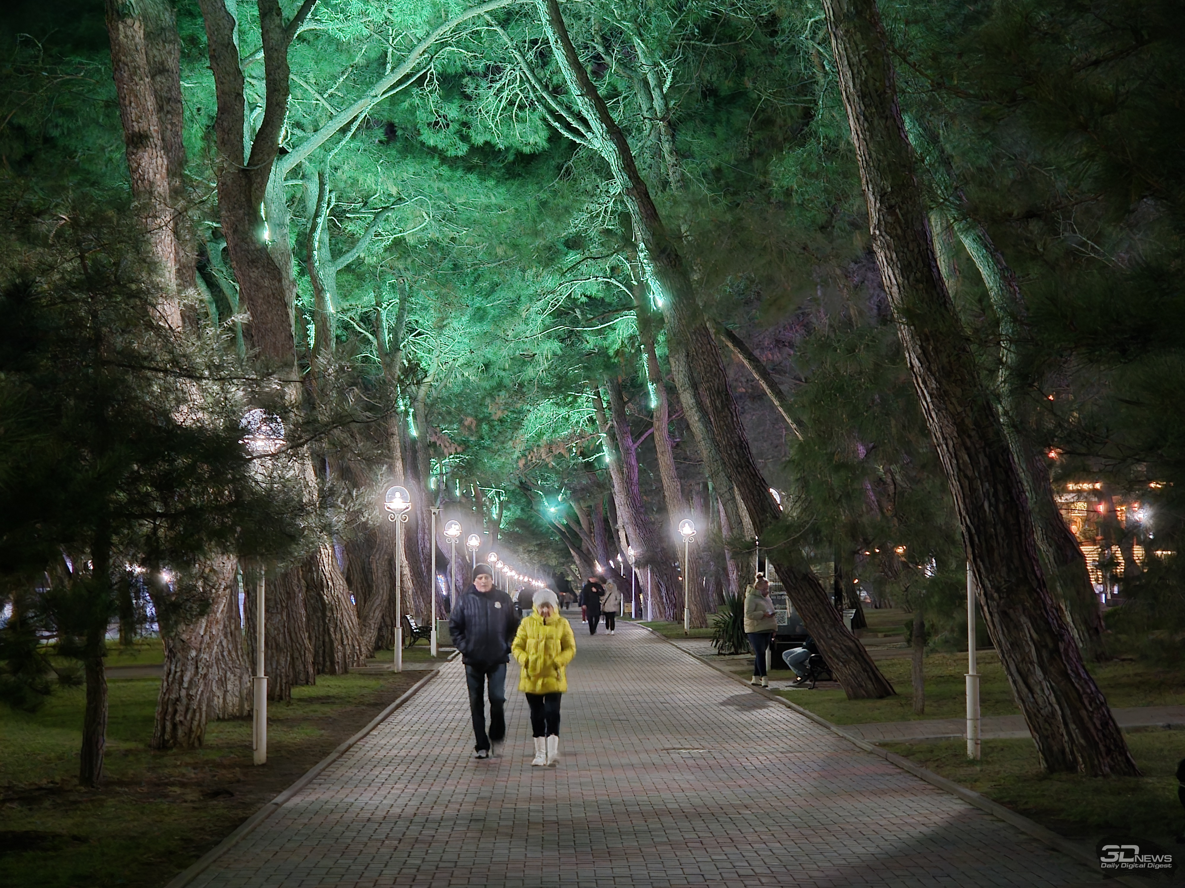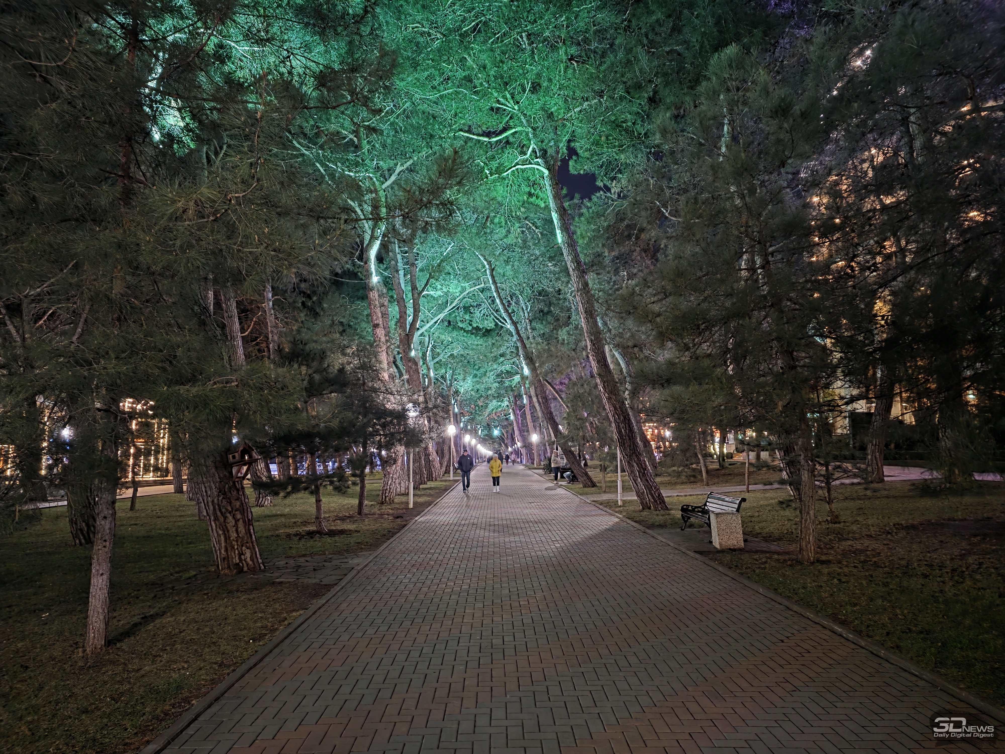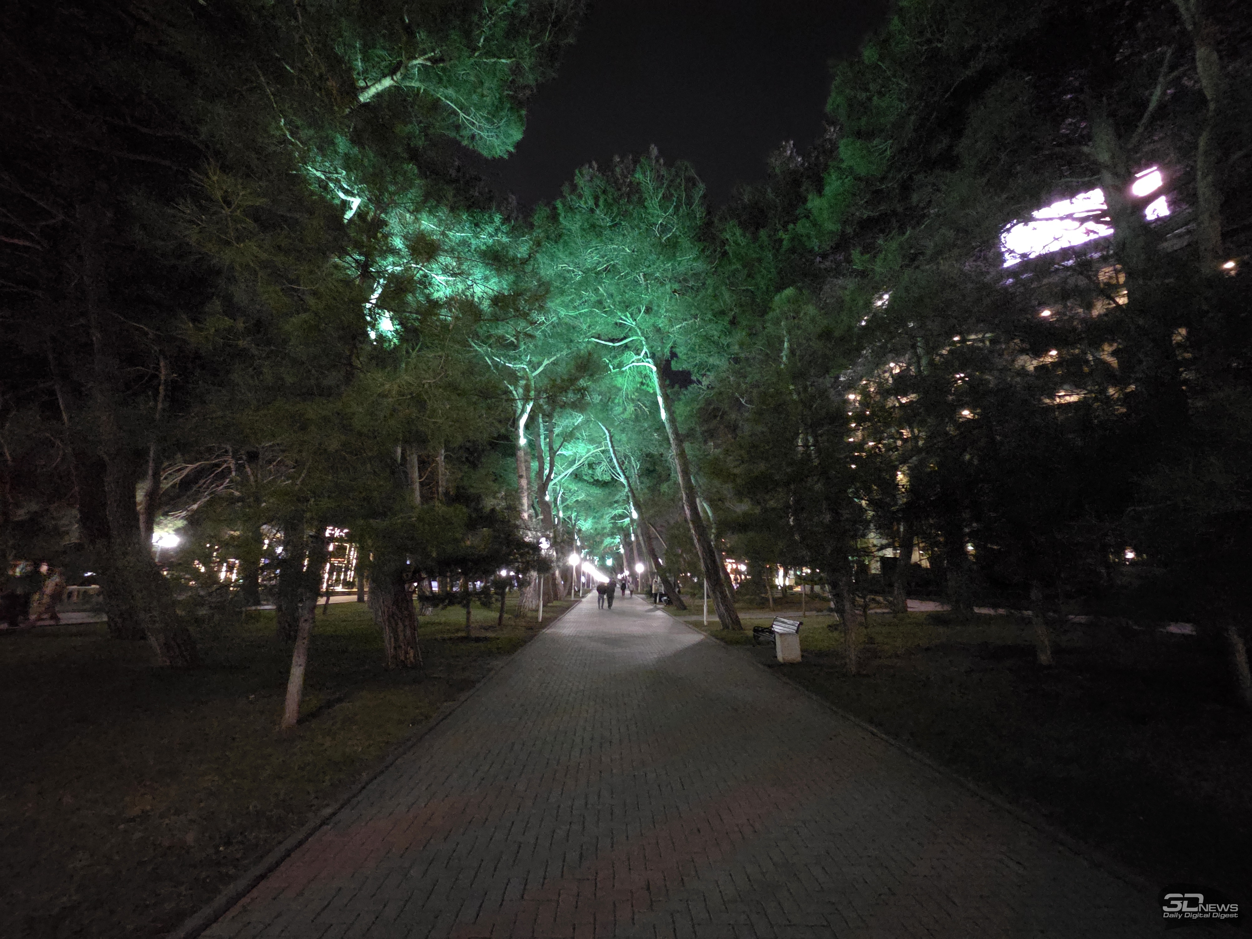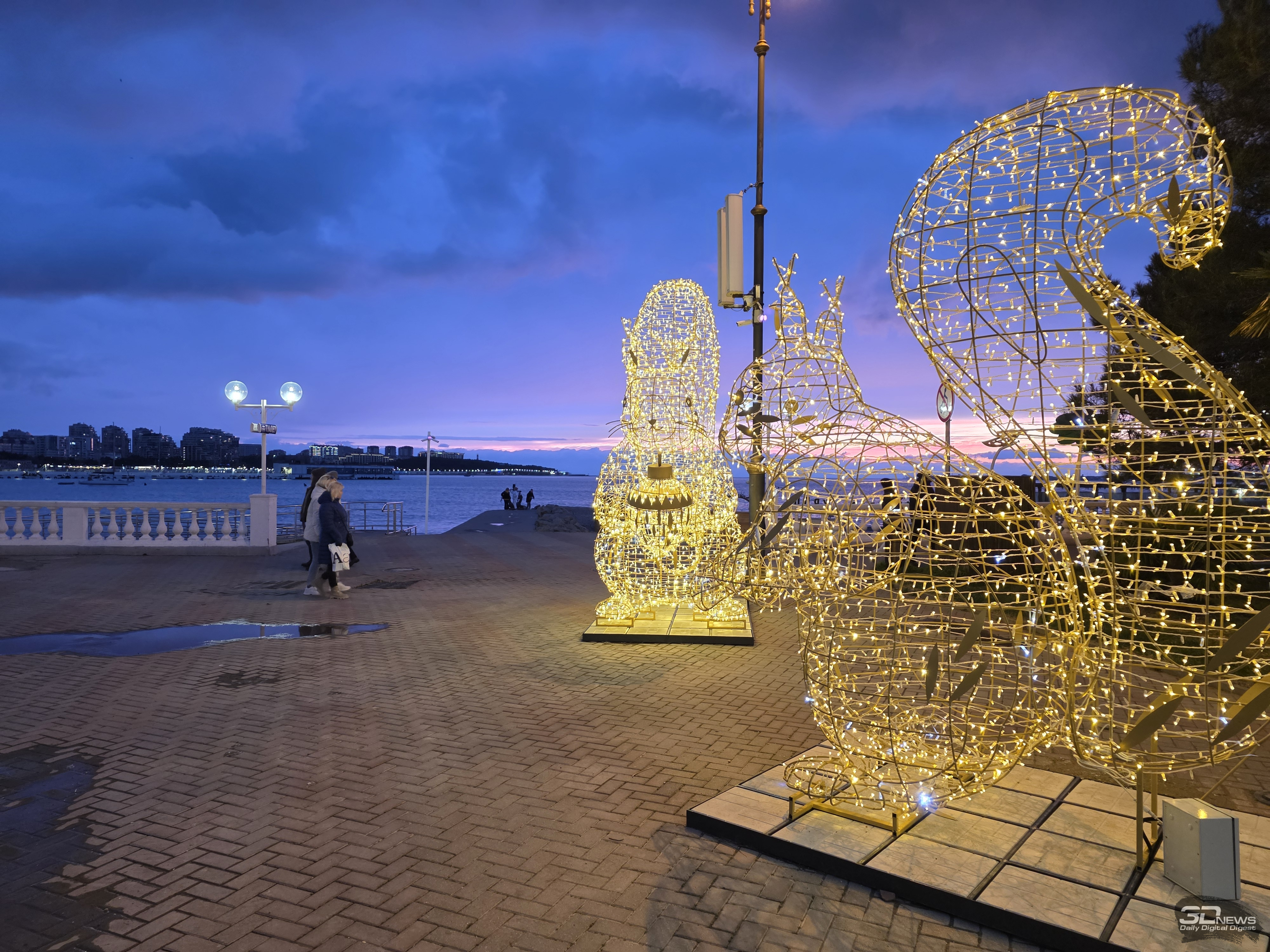 Трехкратный зум днем проявляет себя отлично: динамический диапазон послабее, чем на главном модуле, но все равно достаточно приличный, цвета не искажаются сверх обычного для этого смартфона, детализация высокая (и при этом микрорезкость смотрится естественно, без жирных контуров объектов и без артефактов, характерных для зума двукратного). Ночью же качество съемки проседает: становится много шумов, при этом детализация падает, картинка замыленная. На телефотомодуль можно снимать ночью, процент смаза при съемке невысокий, но уровень съемки не самый лучший. Широкоугольный модуль демонстрирует действительно шикарный угол обзора (что характерно для смартфонов Samsung), нормальный динамический диапазон, отменную детализацию при дневной съемке. Искажения по краям кадра при этом в пределах разумного. Ночью без использования ночного режима светочувствительности модулю откровенно не хватает, но при его задействовании смартфон способен очень здорово «вытянуть» картинку — да, она будет пережатой, но, к примеру, для соцсетей такие снимки подойдут вполне. В целом качество съемки у Samsung Galaxy Z TriFold не вызывает серьезных вопросов — достойный уровень, близкий к актуальному для сегодняшних флагманов традиционной конструкции. Но, во-первых, напомню, что это смартфон за 400 тысяч рублей, и тому же Samsung Galaxy S25 Ultra, который дешевле в четыре раза, он уступает весьма серьезно. Во-вторых, он уступает и единственному конкуренту в лице HUAWEI Mate XT – в первую очередь в том, что касается зума и ночной съемки.