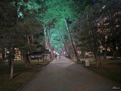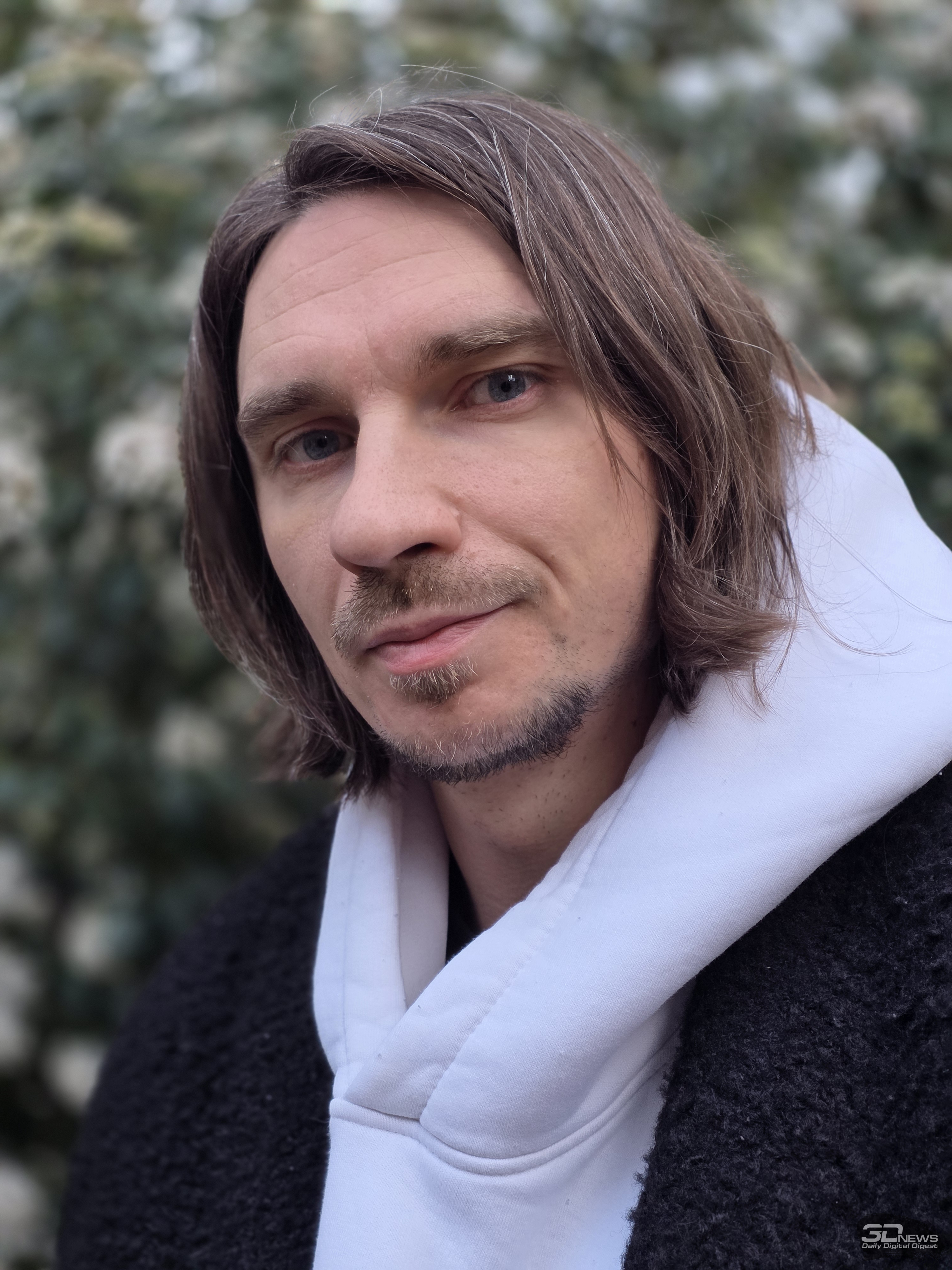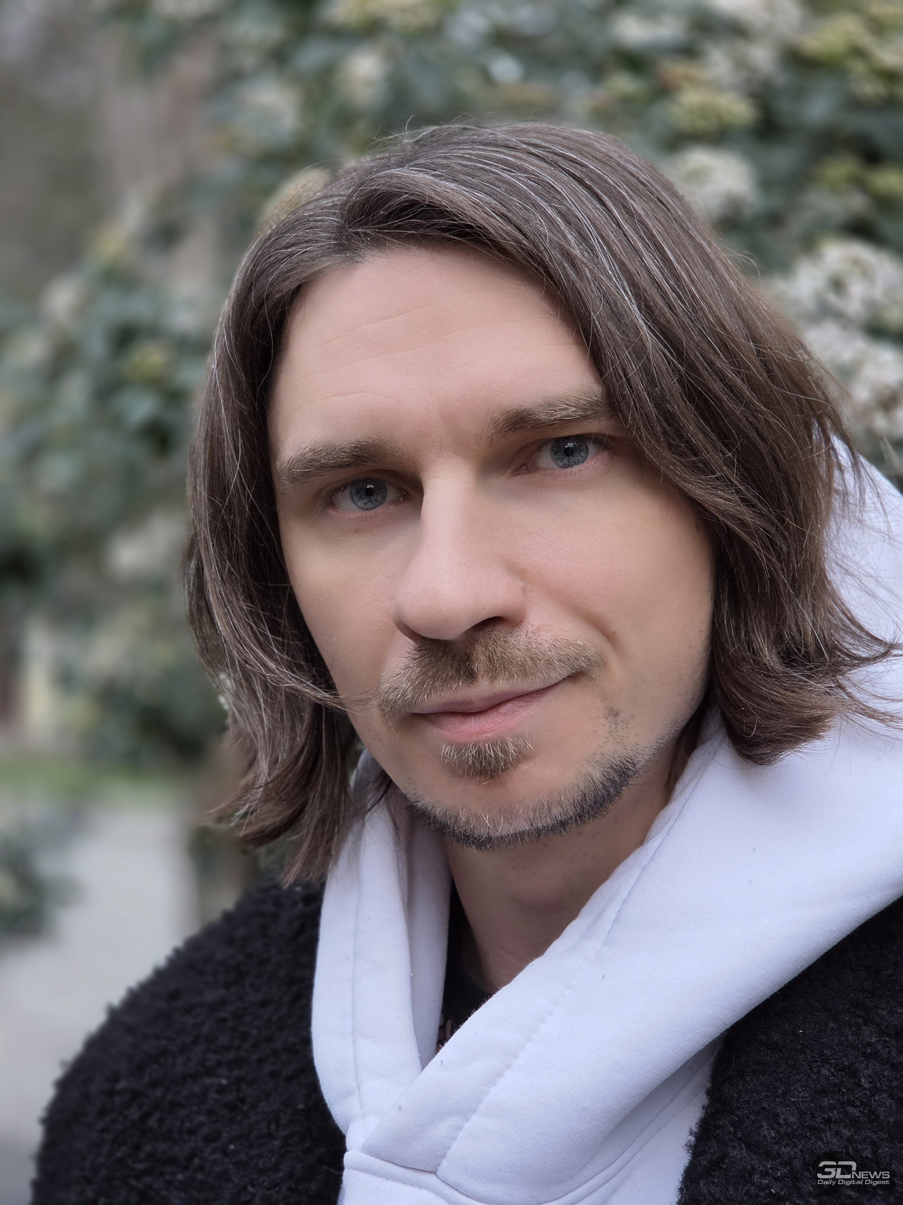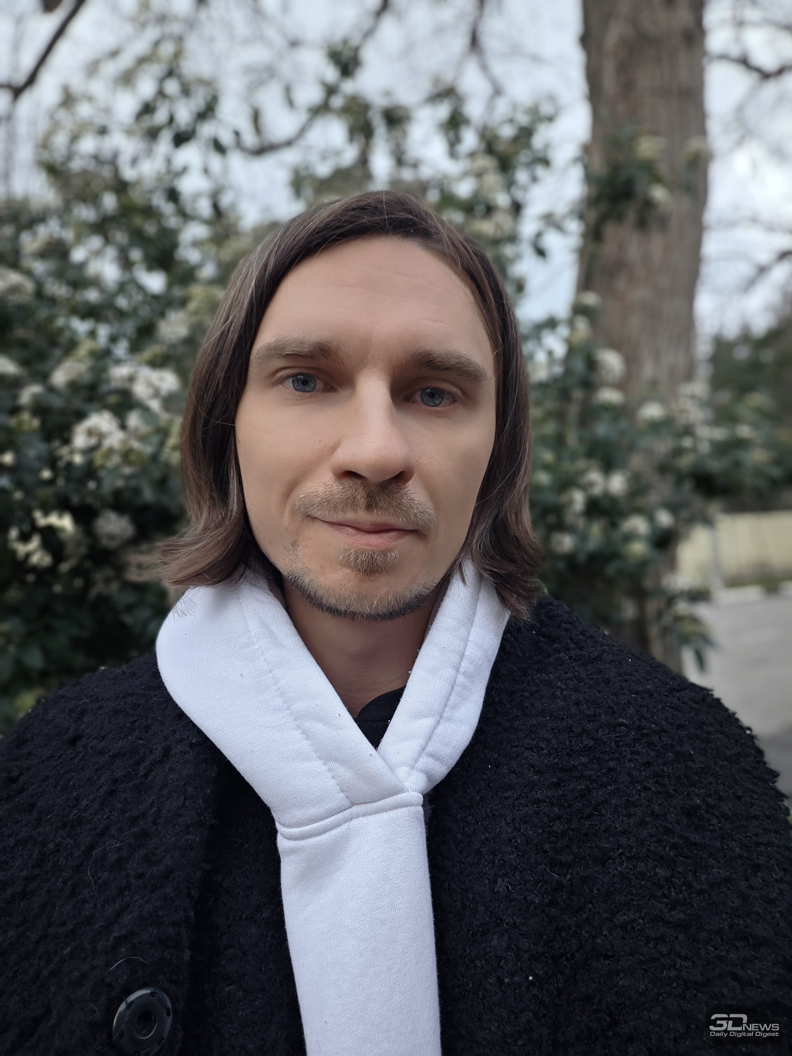 Ночной режим (склейки мультиэкспозиции из кадров с разными параметрами съемки с последующей доработкой результата нейросетями) в Samsung Galaxy Z TriFold доступен без выбора специальной опции в списке режимов. По умолчанию он активируется, если смартфон видит недостаток освещения. Но делает он это не всегда корректно, особенно при использовании зума, словно «забывая» о такой опции. Тогда можно вручную выбрать режим «Ночь». Отказываться от такой опции не стоит: повышается общая яркость снимка, насыщенность, детализация, но сохраняется ощущение именно ночной съемки, снимок не пересвечивается, как это порой бывает. «Выдержка», как правило, не превышает двух секунд, смартфон не сможет снять что-то внятное в полной темноте. Но при наличии источников освещения в кадре TriFold справляется хорошо. В портретном режиме доступны три фокусных расстояния (помимо стандартного угла обзора и трехкратного оптического зума доступен и «гибридный» двукратный), размытие осуществляется уверенно, с минимальными артефактами по границам объекта (размазываются выбивающиеся пряди волос и так далее – типичная история для любого смартфона). Эффекты размытия можно добавлять только при постобработке в галерее. Во время съемки доступно несколько вариантов тонирования, возможность поместить модель на однотонный или черно-белый фон (при сохранении цвета на объекте съемки). Есть регулируемая и корректно работающая ретушь. Тон кожи, на мой вкус, холодноват, портреты смотрятся бледненько. При этом отмечу высокую детализацию (без перебора с микрорезкостью) при съемке с широким углом и трехкратным зумом, но вот с двукратным зумом смартфон заметно «мылит». filter