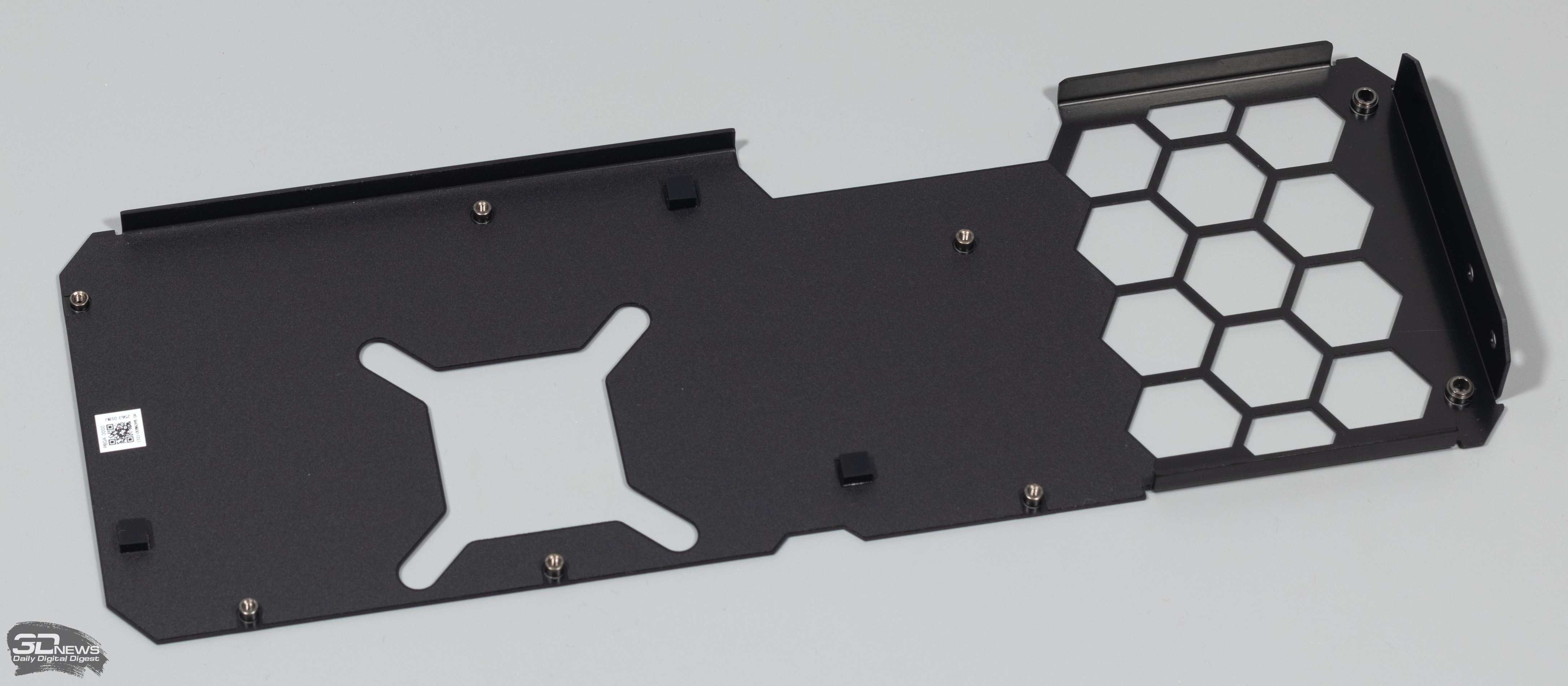 Обратная сторона печатной платы защищена металлической пластиной с привычным окном для сквозного прохода воздуха.
