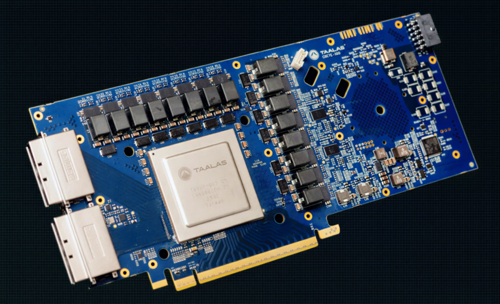 В феврале стартап Taalas, занятый разработкой специализированных под конкретные БЯМ (hard-wired) серверных вычислителей провёл очередной раунд финансирования и привлёк 169 млн долл.; здесь показан созданный им демонстратор технологий для инференса модели Llama 3.1 8B: техпроцесс TSMC «6 нм», площадь чипа 815 кв. мм, 53 млрд транзисторов (источник: Taalas)