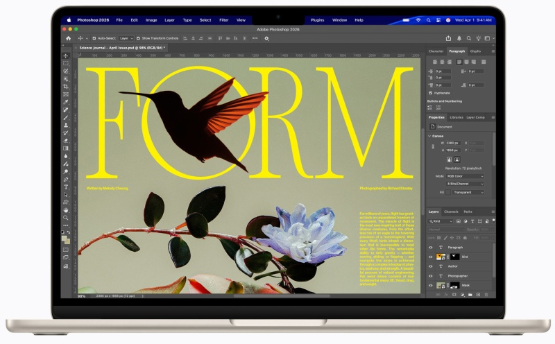 - До 2,7 раз более высокую производительность обработки изображений в Affinity по сравнению с MacBook Air с M1 и до 1,5 раз более высокую, чем у MacBook Air с M4.