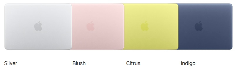 Ноутбук получил встроенный литийионный аккумулятор ёмкостью 36,5 Вт·ч. На одном полном заряде батареи Apple обещает до 16 часов показа потокового видео и до 11 часов работы в беспроводном интернете. Мощность комплектного зарядного устройства USB Type-C составляет всего 20 Вт. Зарядка MagSafe не поддерживается. Размеры ноутбука: 1,27 × 29,75 × 20,64 см при весе 1,23 кг. Он будет доступен в четырёх цветах: серебристом, индиго, розовом и цитрусовом.