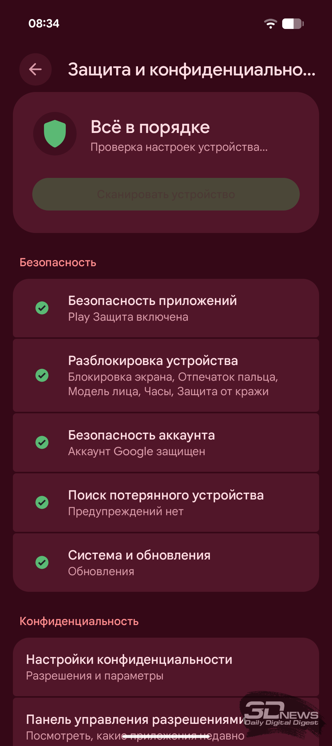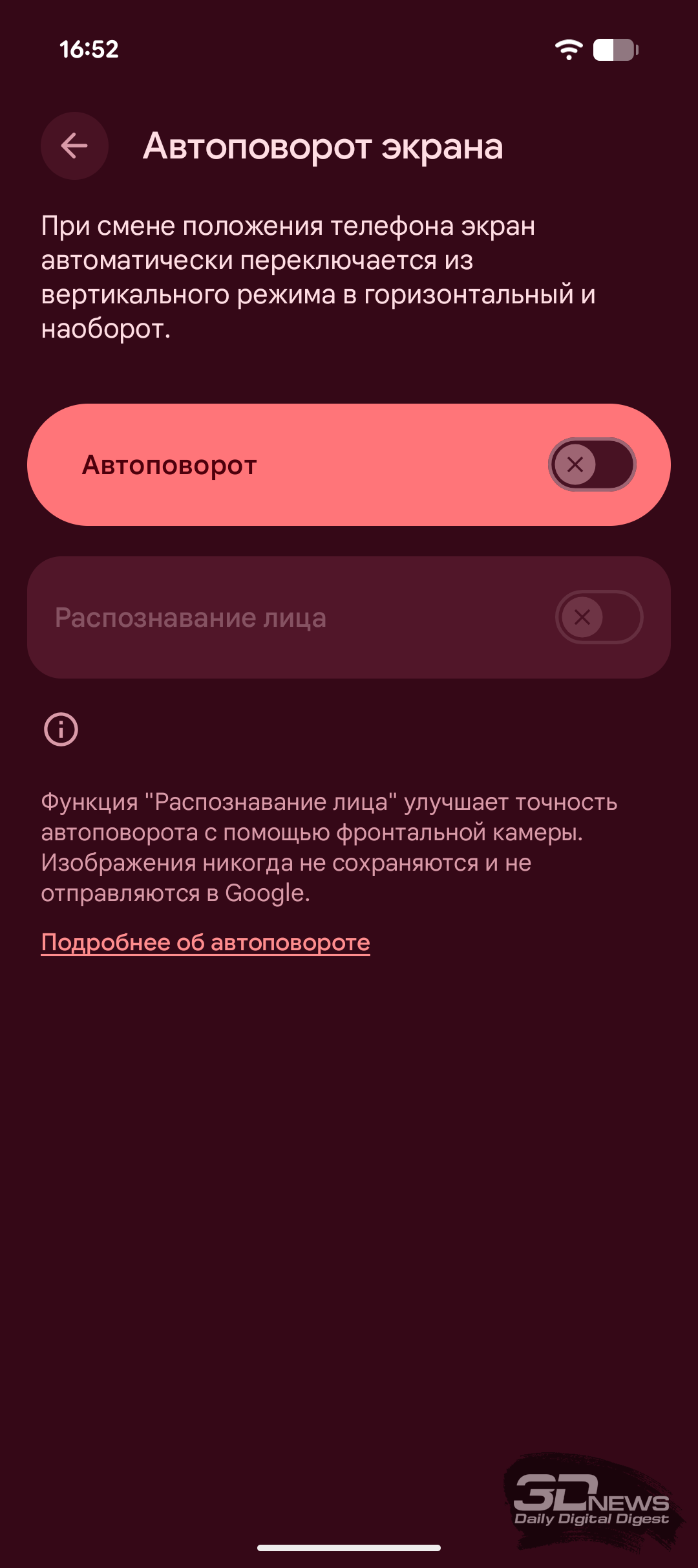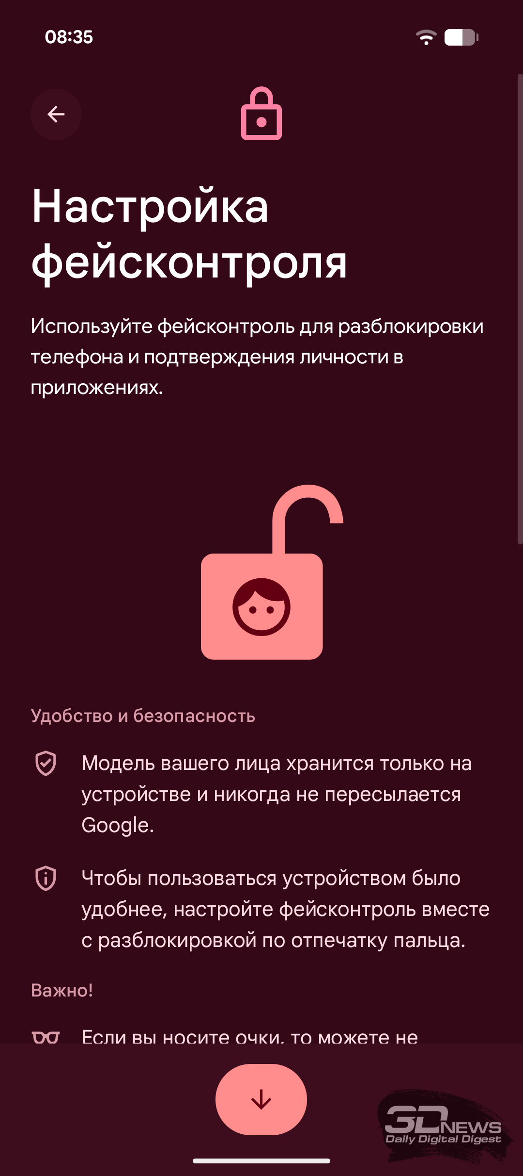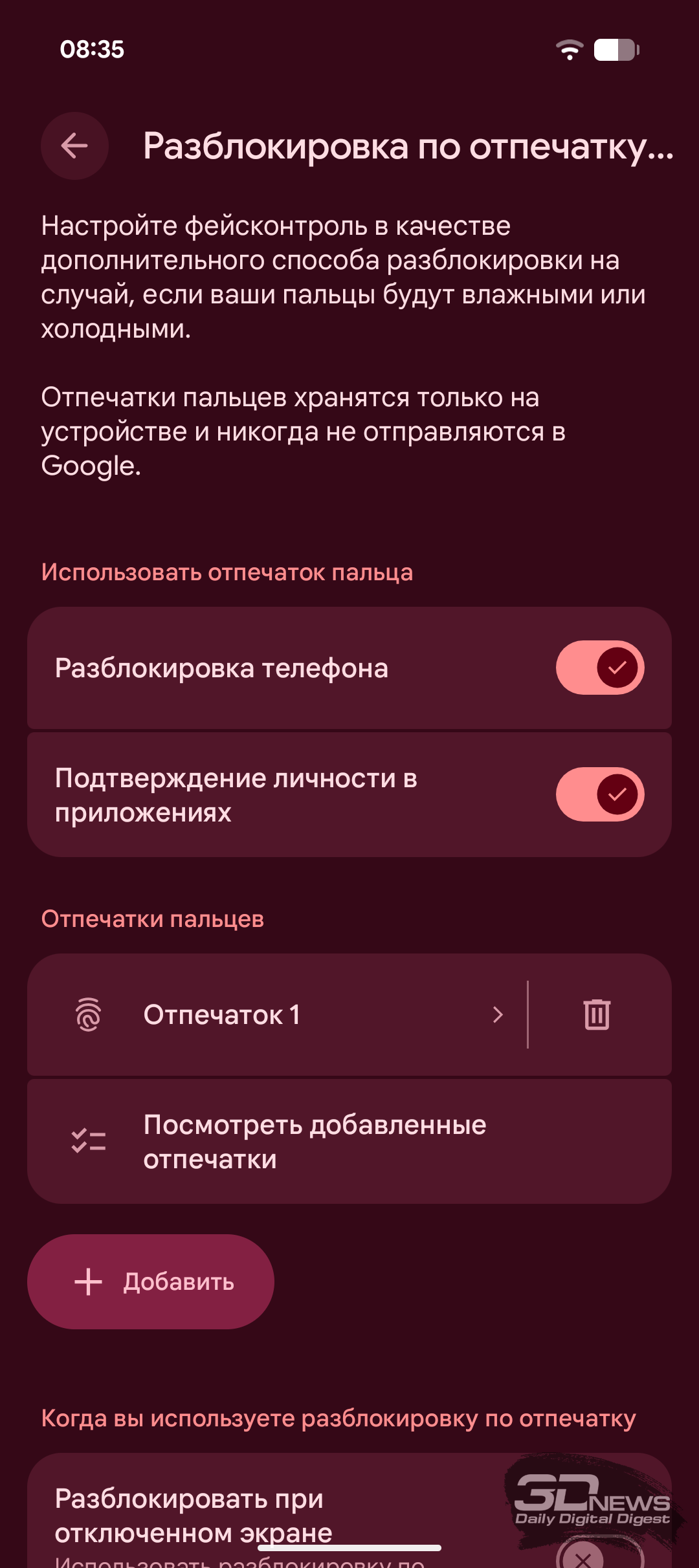 Что касается функций безопасности, то здесь у Pixel 10a всё стандартно. Для разблокировки есть сканер отпечатков пальцев под экраном и система распознавания лиц без каких-либо дополнительных датчиков. Сканер оптический, работает стабильно и довольно быстро, с тактильной отдачей при срабатывании.