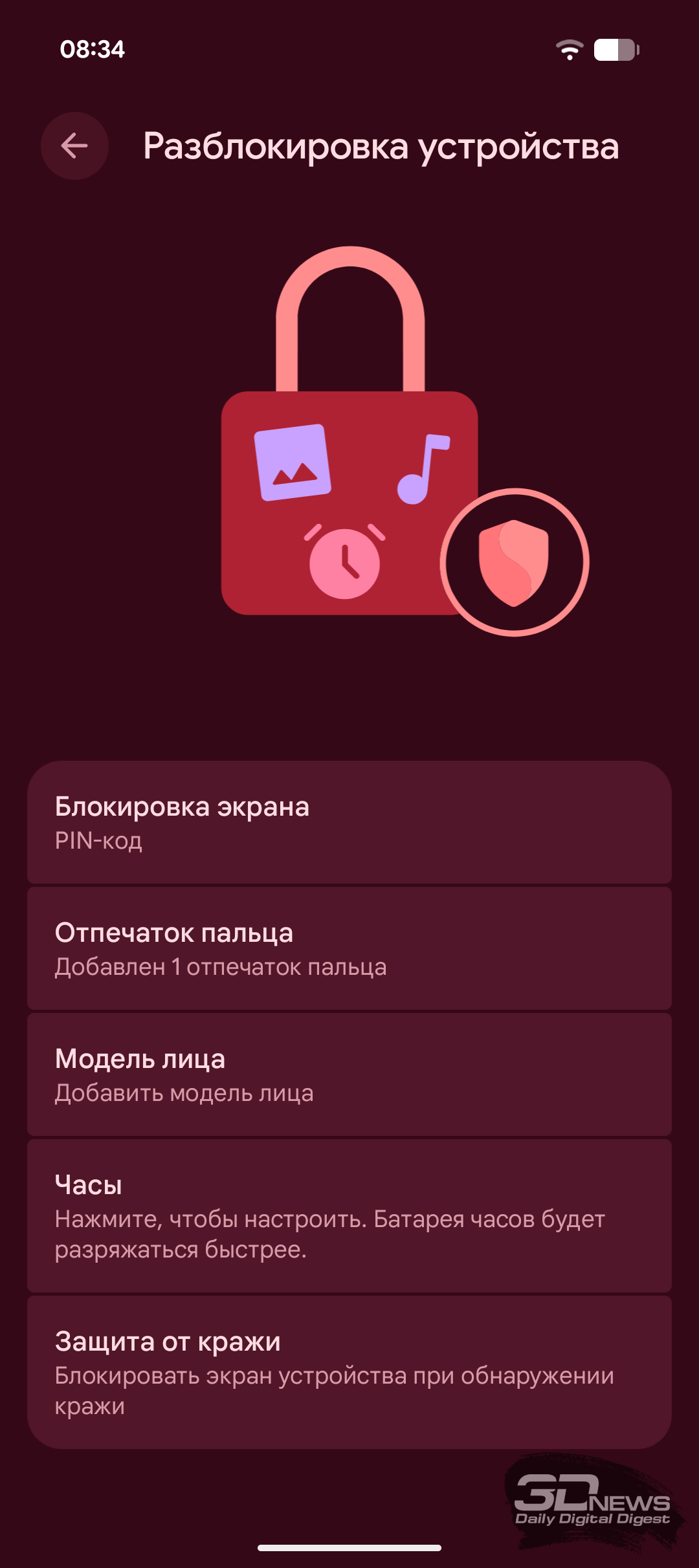 Есть и функция «Защита от кражи» с тремя настройками: