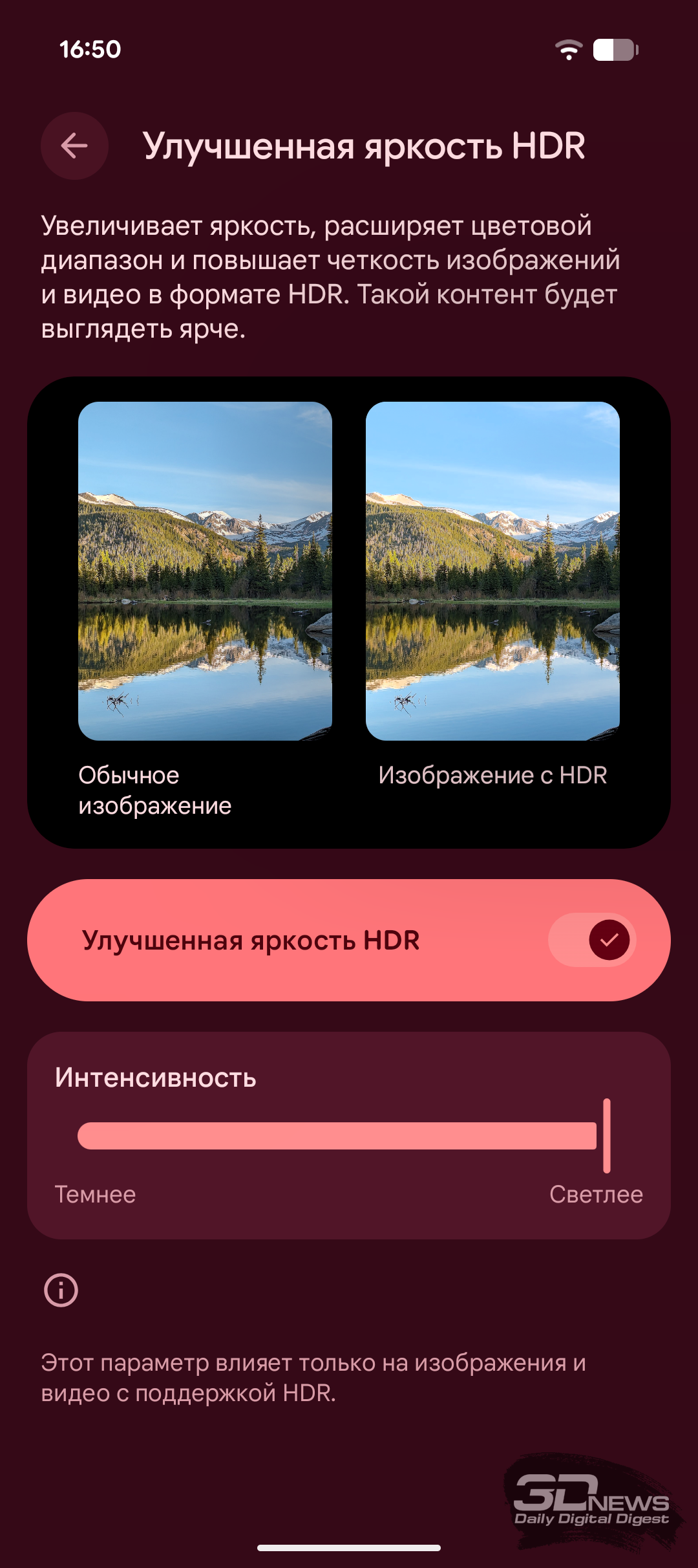 Но одно отличие от экрана прошлогоднего Pixel 9a всё же есть — это более высокие показатели максимальной яркости. Прирост нельзя назвать значительным: при отображении HDR-контента яркость выросла с 1800 до 2000 кд/м², а пиковый показатель — с 2700 до 3000 кд/м². Дисплей остаётся хорошо читаемым даже под прямыми солнечными лучами, а автоматическая регулировка яркости отрабатывает вполне корректно как при интенсивном окружающем освещении, так и в темноте.