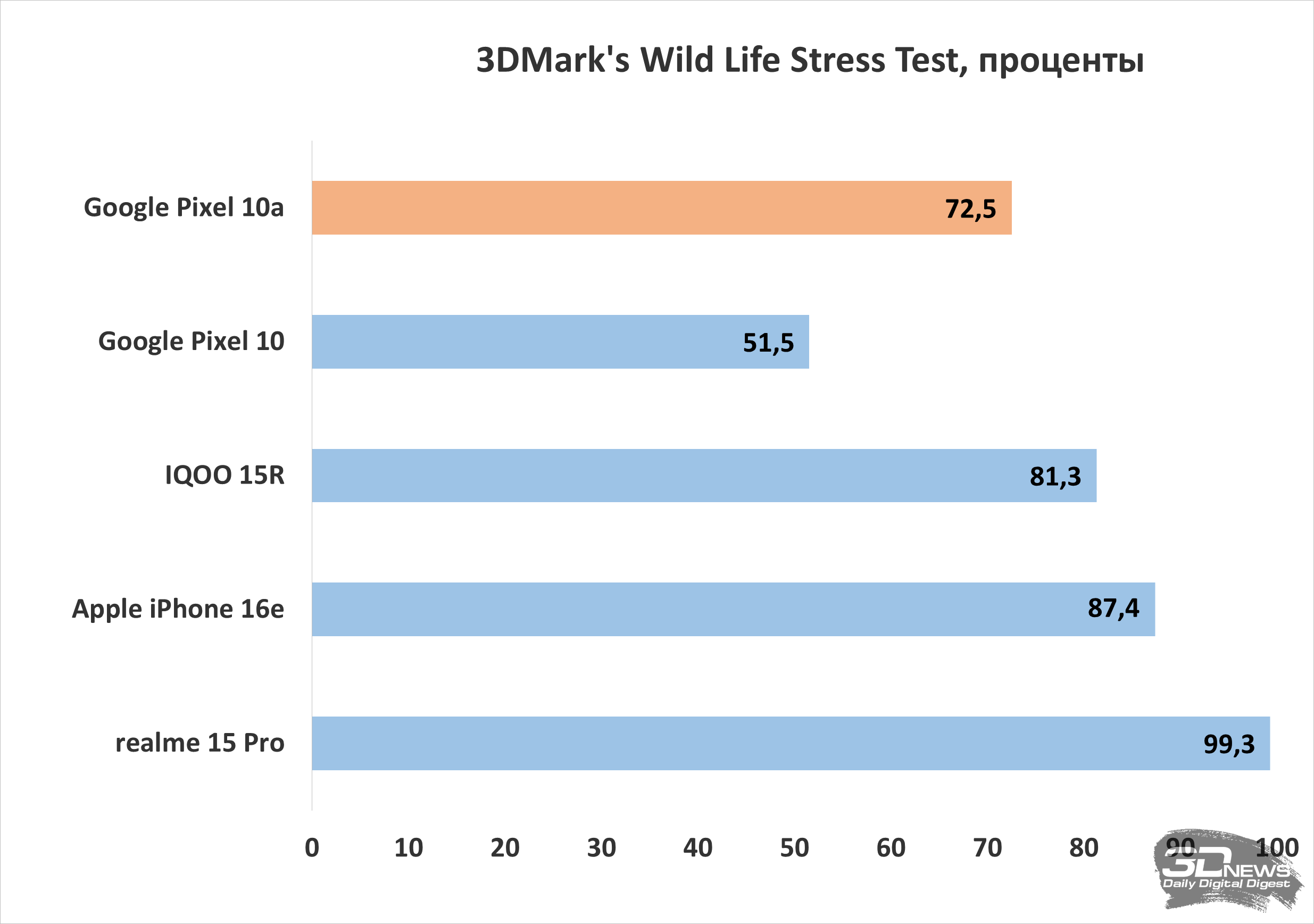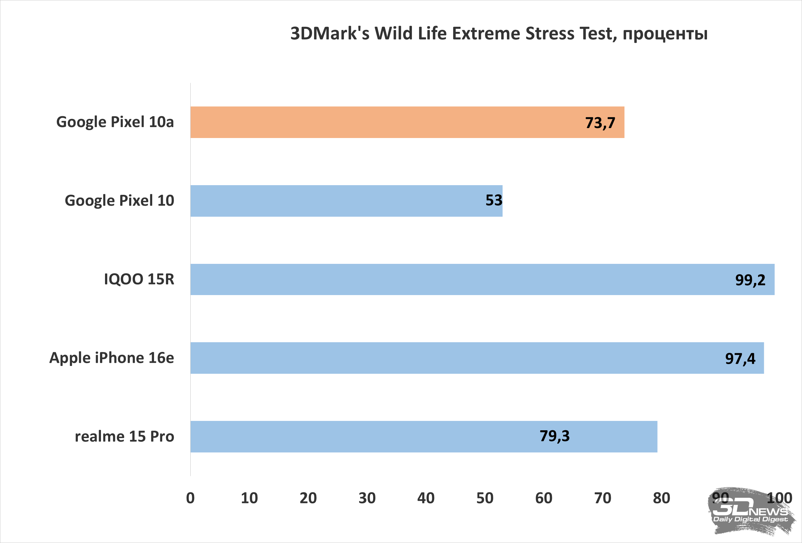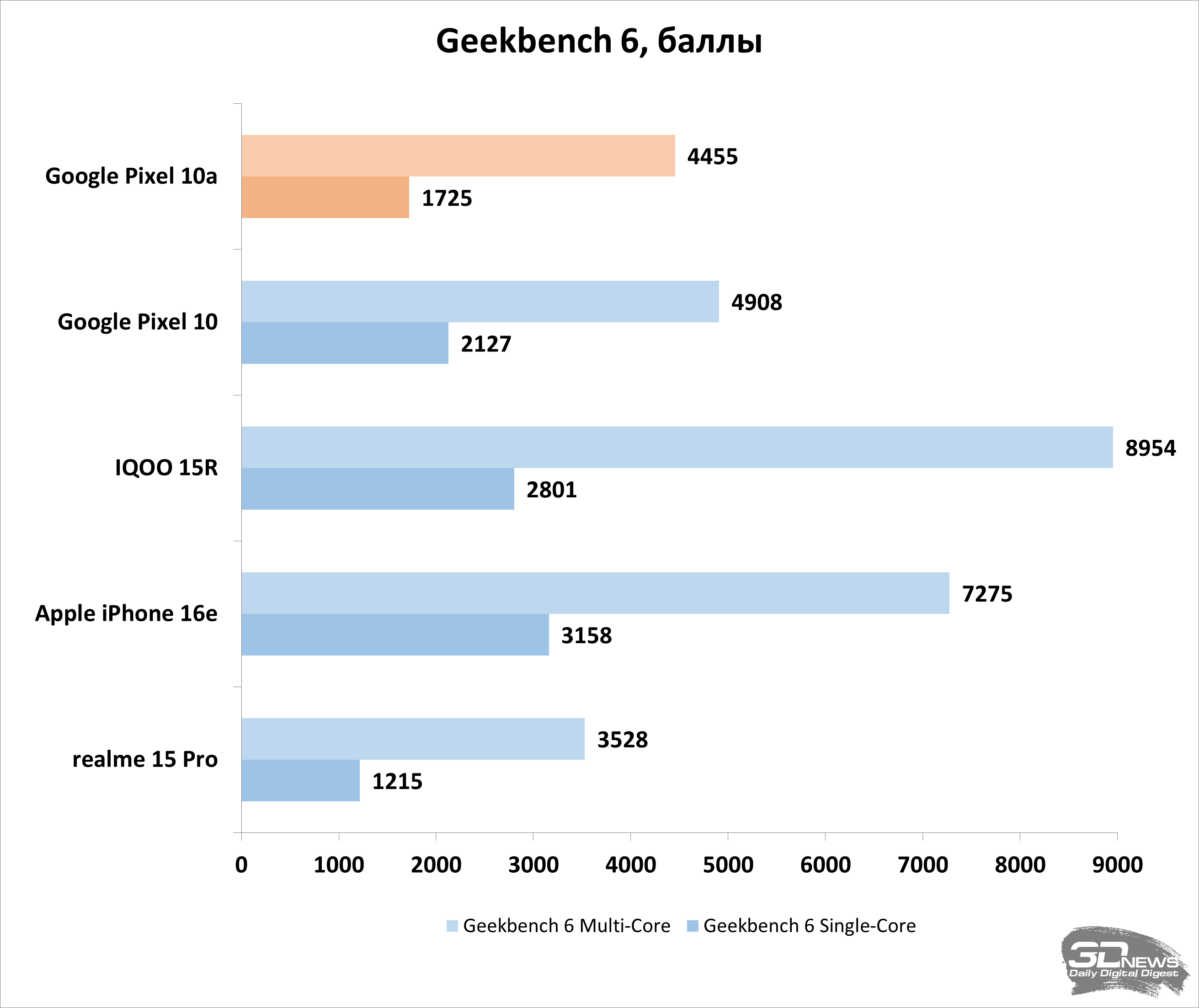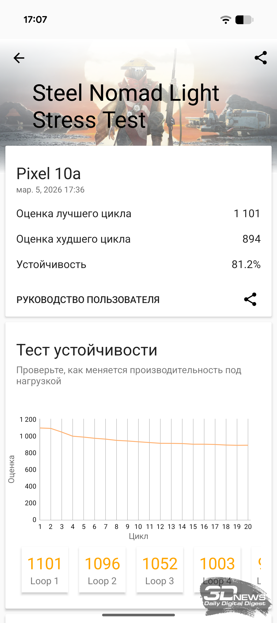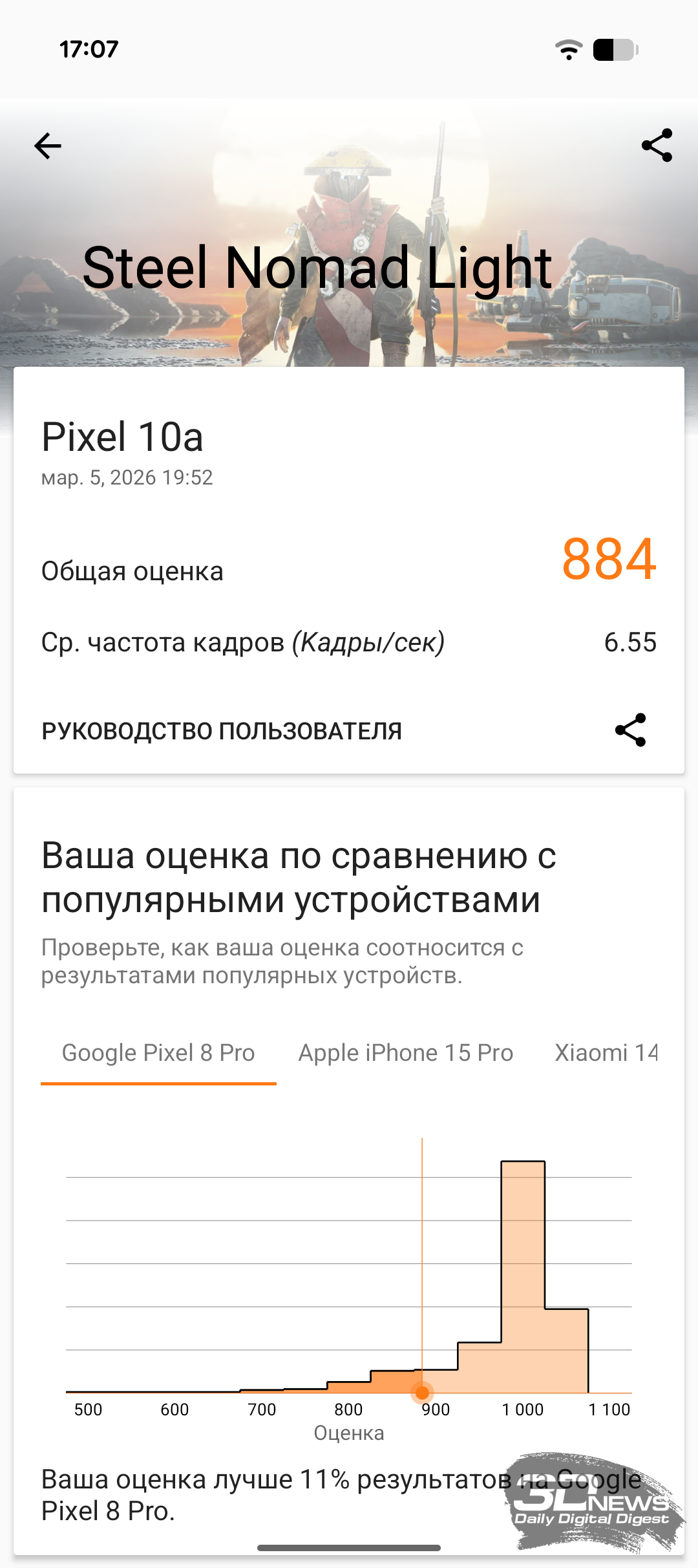 «В вакууме» же, без сравнения с конкурентами, Pixel 10a демонстрирует весьма достойный уровень производительности — или по меньшей мере достаточный для комфортного использования смартфона с любыми приложениями и современными играми. Смартфон ни разу не завис, нигде не подтормаживал и в целом показал достойную производительность, которой на сегодняшний день достаточно для любых задач.