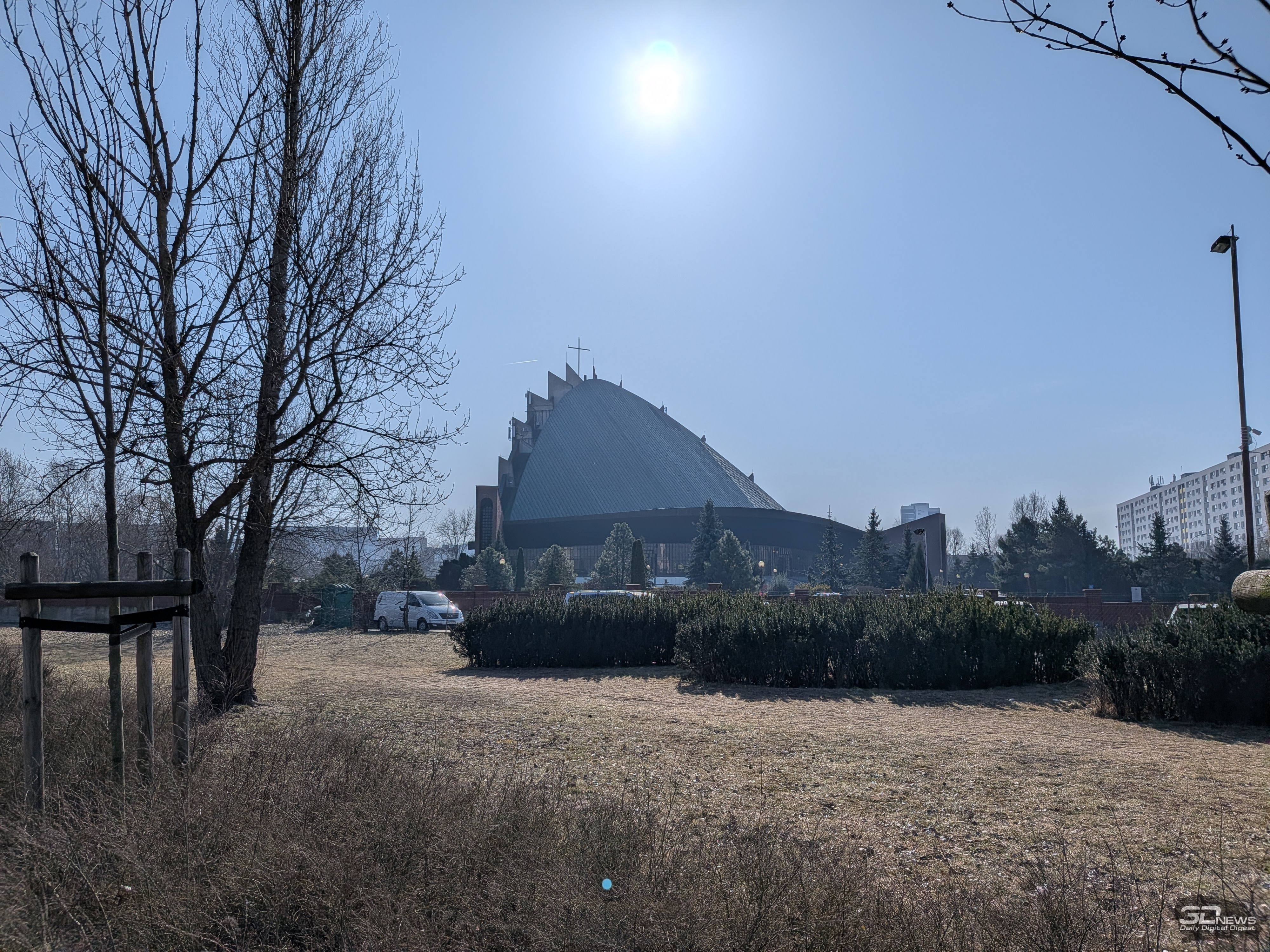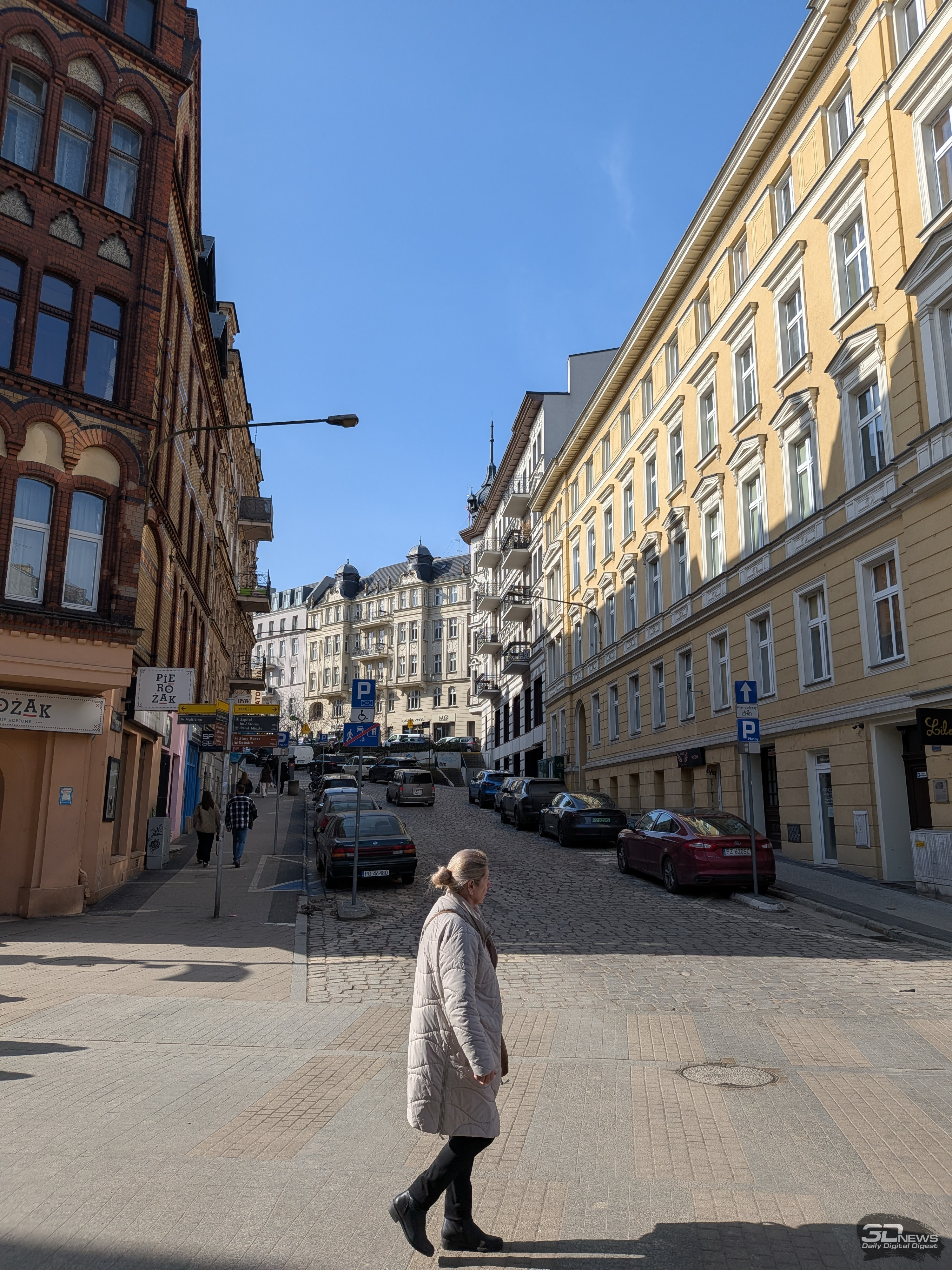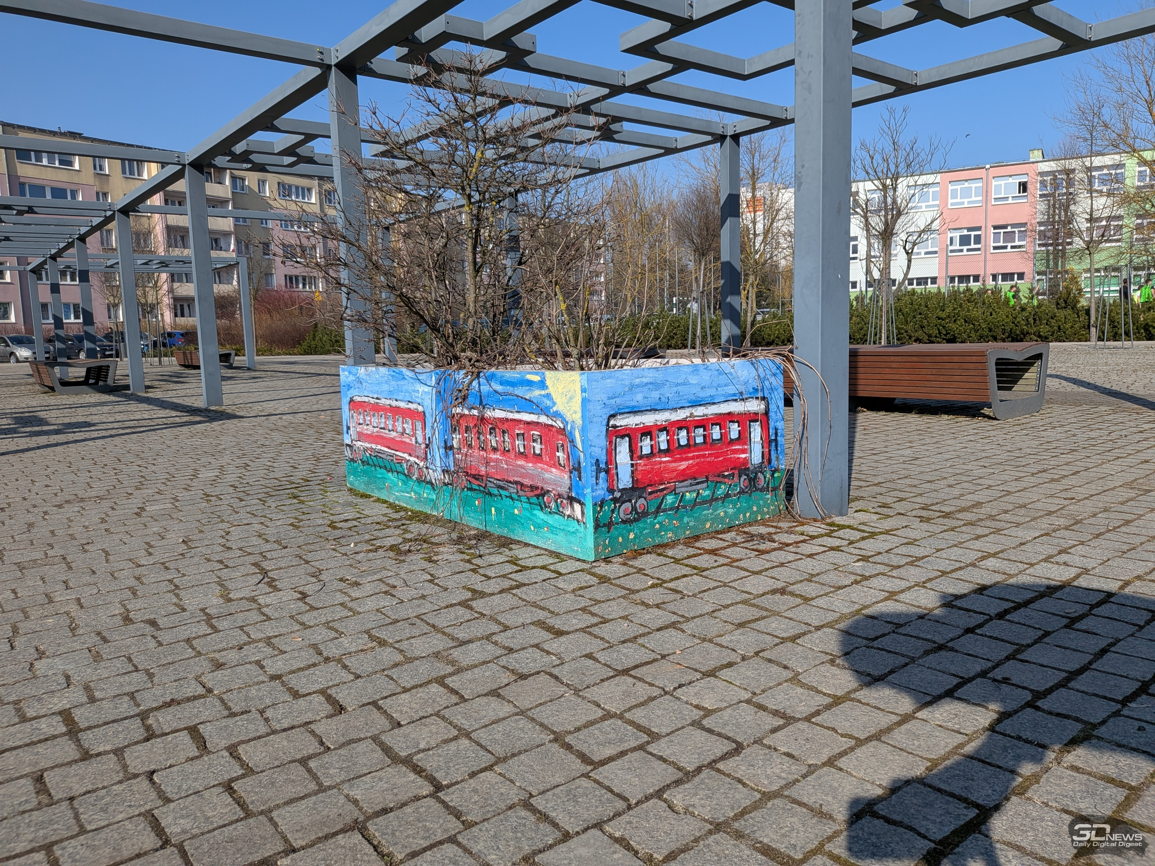 Вышесказанное в основном справедливо и для двукратного гибридного зума: днём снимки сохраняют адекватную цветопередачу и широкий динамический диапазон, но при ближайшем рассмотрении заметна просадка в детализации, а также отдельные кадры могут слегка перебарщивать с контурной резкостью. В свою очередь, на ночных снимках уже сильнее проявляются огрехи по части детализации и резкости, но при этом шум держится на приемлемом уровне, а цветопередача остаётся естественной.