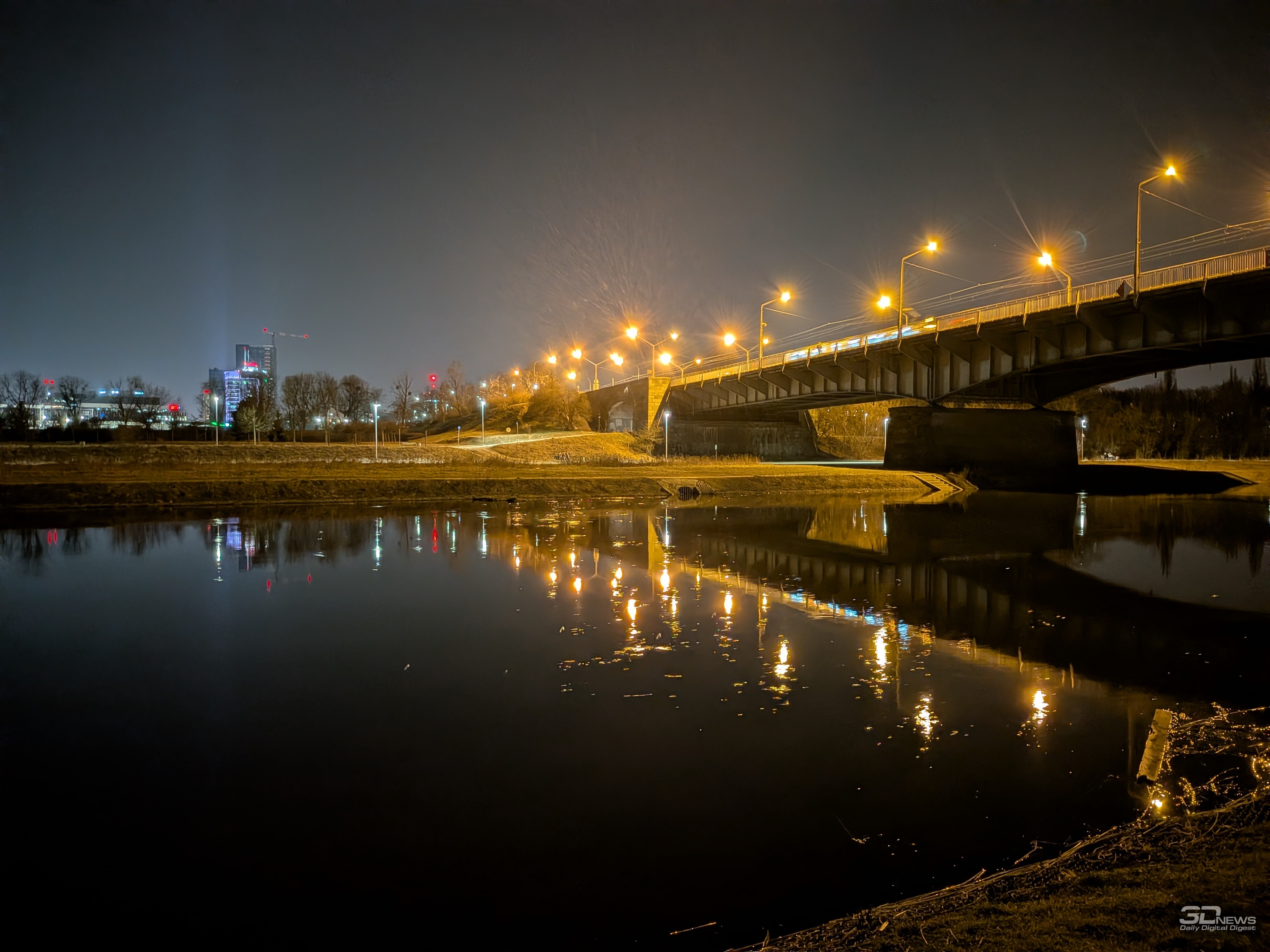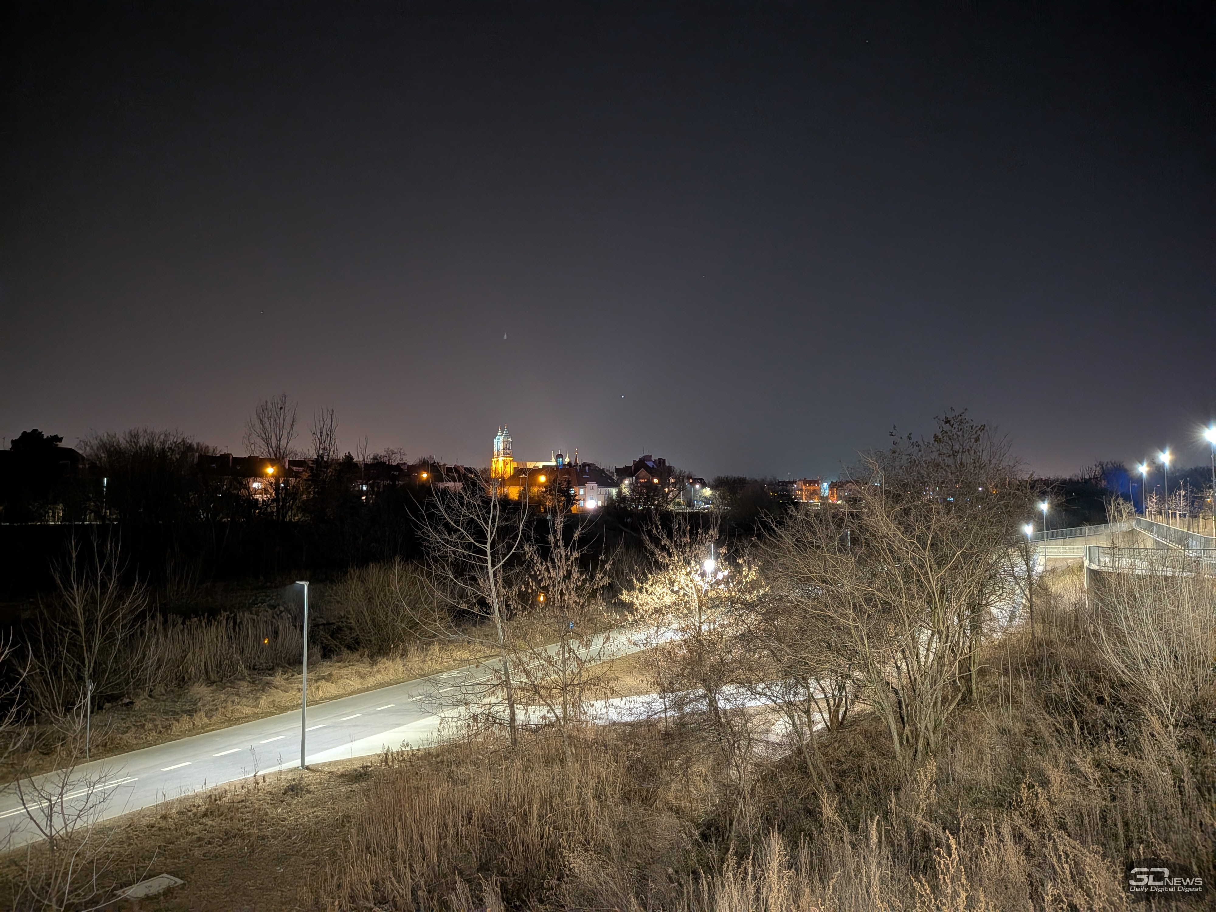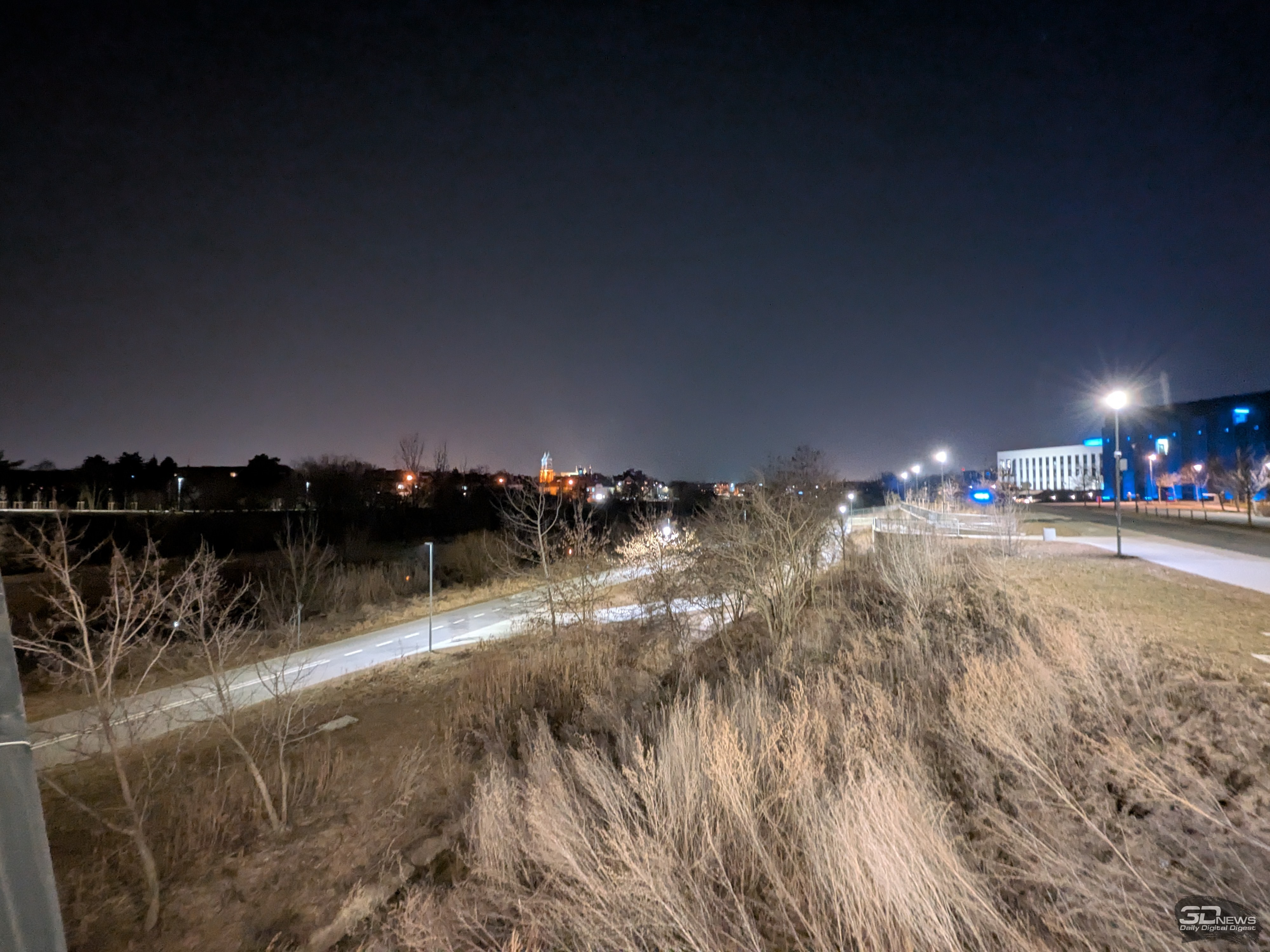 При недостатке освещения смартфон автоматически активирует ночной режим съёмки, но можно переключиться на него вручную — он доступен на отдельной вкладке в приложении камеры. Автоматический и «ручной» ночные режимы ничем не отличаются друг от друга — в каждом из них смартфон делает серию снимков в течение 2–6 секунд и программно их «склеивает», подстраивая освещённость, тени и прочие параметры. В целом автоматика здесь срабатывает хорошо, и вручную включать ночной режим обычно не приходится — да и отключать его не стоит, ведь с ночным режимом изображения получаются намного более яркими, с более высокой детализацией и насыщенностью в тенях. В стандартном режиме зачастую вы получите слишком тёмное «шумное» фото без деталей и нередко со смазом. Но и ночной режим далеко не всегда способен «вытянуть» картинку. Тут же добавлю, что оптика Pixel 10a бликует, но сколько-нибудь серьёзно это картинку не портит, да и проявляются блики отнюдь не всегда.