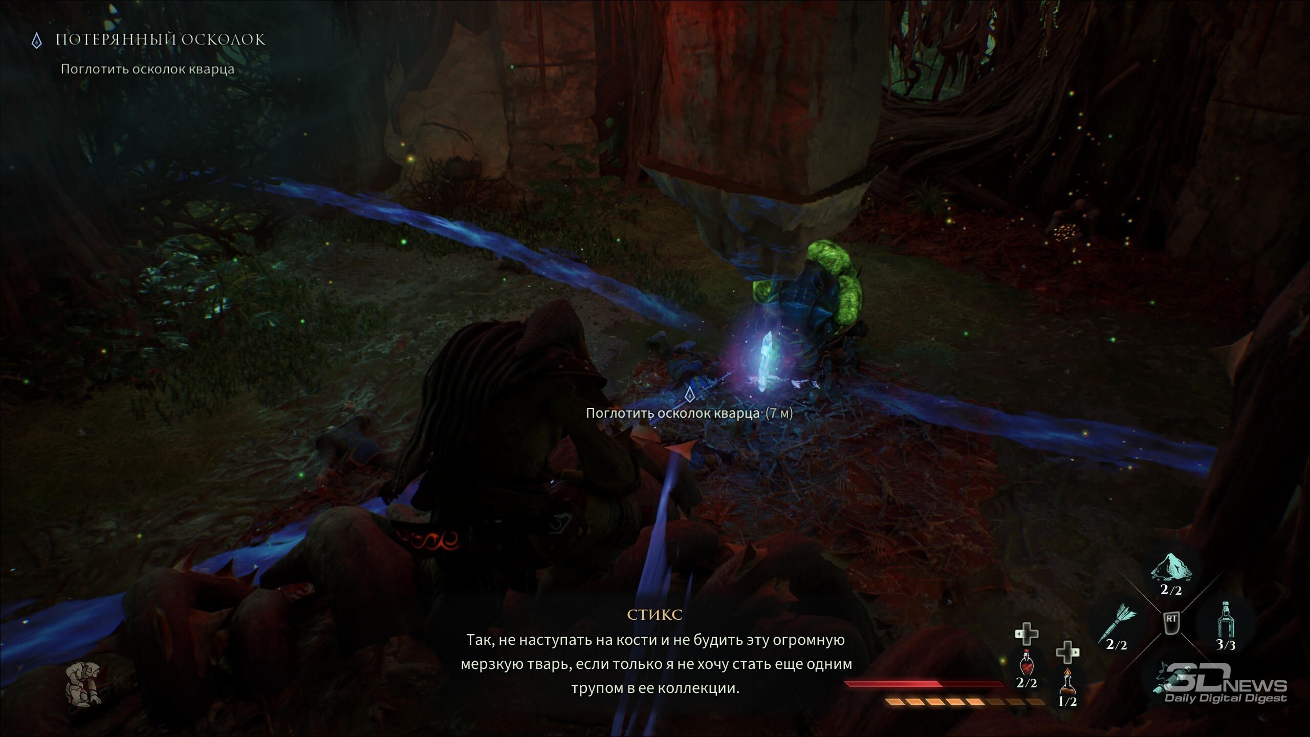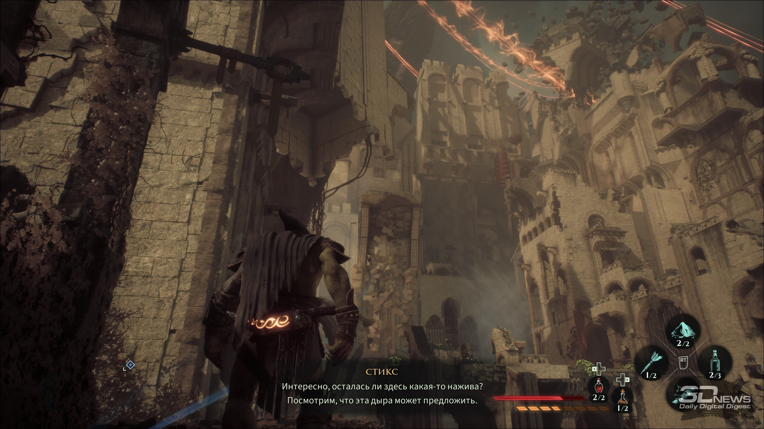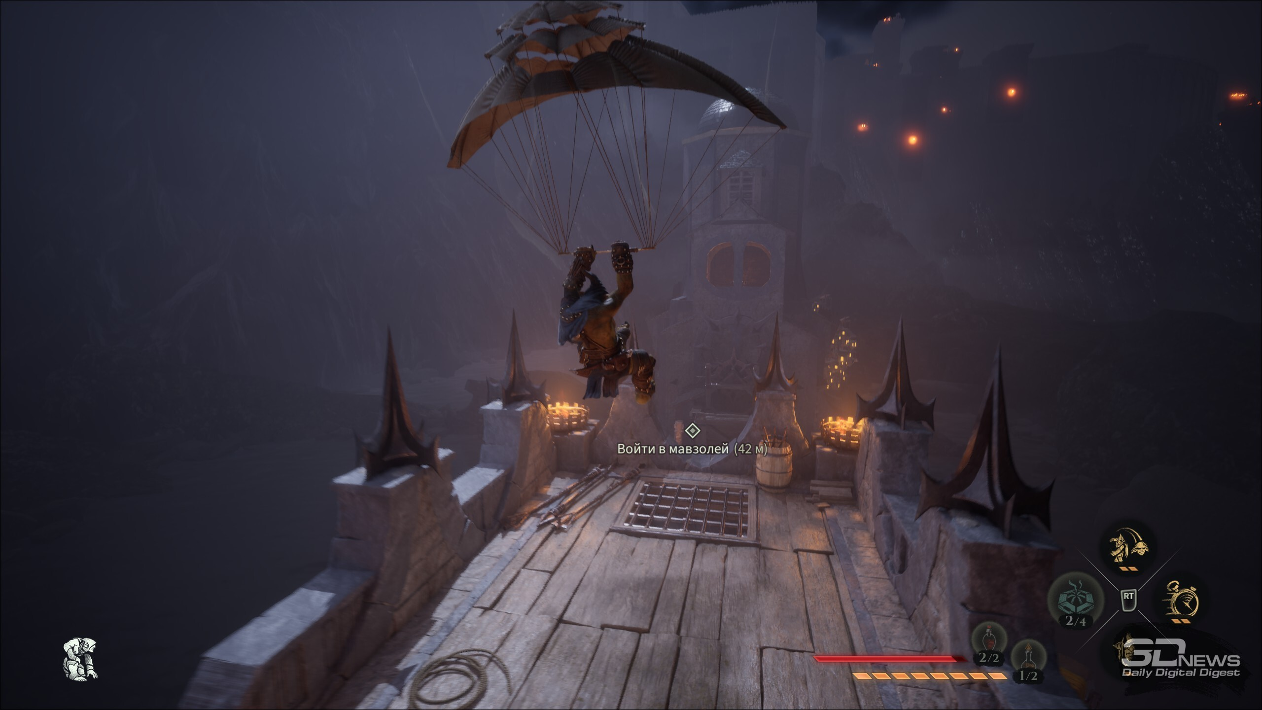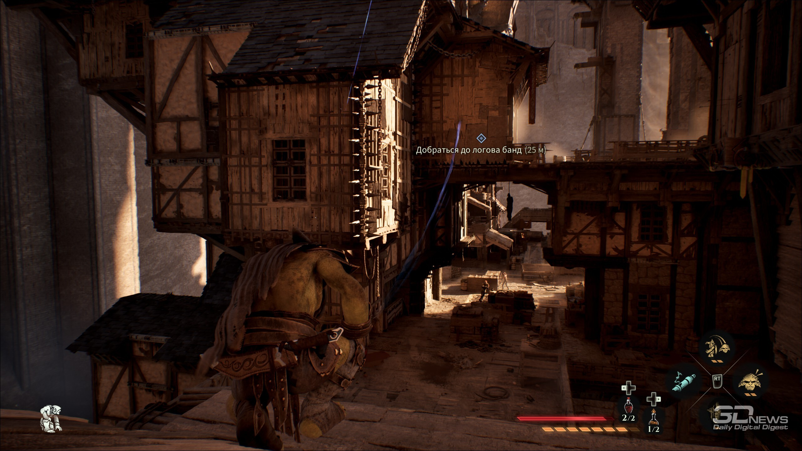 Девять лет назад я закончил рецензию на вторую часть Styx словами: «Shards of Darkness — шаг в правильном направлении как с точки зрения истории, так и в геймплее. Надеемся, авторы не остановятся на достигнутом». Но время шло, и за годы я уже смирился с тем, что история так и не получит продолжения. И вдруг Cyanide внезапно объявила, что триквелу быть! Само собой, я ждал Blades of Greed. Но когда игра была пройдена, а по экрану поползли титры, я испытал противоречивые чувства. Студия действительно попыталась толкнуть серию вперед. Кто же знал, что впереди окажется яма. ⇡#Не камни, а кварц!Blades of Greed начинается с той же сцены, которой заканчивается Shards of Darkness. Наш герой Стикс и темный эльф Джарек решили подраться после победы над каменным титаном. Но даже если вы знакомы с серией, сразу вспомнить, что к чему, будет очень сложно. Пришлось поставить игру на паузу и поискать ролик с пересказом прошлых событий. Вступление третьей части очень хочет казаться высокобюджетным. Выяснилось, что голем вовсе не повержен. Отложив личные разборки, Стикс забирается по колоссу, словно Кратос из God of War 3. Залезает внутрь и уничтожает сердце, а затем убегает, пока каменное чудище не стало его могилой. Звучит захватывающе, но на деле пробежка по серому коридору под аккомпанемент дешевых эффектов — не самая увлекательная сцена. К счастью, она не задает тон всей игре. Конфликт, заложенный в последней сцене сиквела, исчерпывает себя в первые полчаса. Но вместо того, чтобы рассказать новую историю, Blades of Greed почти весь свой хронометраж топчется на месте. Стикс, коснувшись драгоценного кварца, получает странную силу. Что неожиданно, ведь все прочие существа при контакте с магическим минералом погибают. Гоблин справедливо решает, что чем больше кварца собрать, тем круче он станет… поэтому мы всю игру и будем носиться за камушками. Да, формально по ходу дела мы встретимся с разными персонажами и столкнемся с некой сущностью, называющей себя Флакс (она возникает при контакте с каждым новым кусочком кварца). История добавляет несколько крох к мифологии Акенаша и даже касается тайны прошлого гоблина. Но глобально сюжет вопиюще пуст. И никакие подмигивания для фанатов, вроде убежища из первой части, ситуацию не исправят. Режиссура тоже сделала шаг назад. Ролики поставлены слабее, чем в сиквеле. Настолько, что даже скучаешь по комиксам из оригинальной Master of Shadows. Общая низкобюджетность чувствуется даже в озвучке. Диалоги краткие и скучные, а голоса буквально делятся на Стикса и всех остальных — здоровенные мускулистые орки говорят ровно теми же стерильными голосами, что и тщедушные стражники-люди. ⇡#Гоблинский патрульСложно не испытывать разочарования. Ведь Shards of Darkness вышла всего спустя три года после первой части, но сделала приличный шаг вперед по всем фронтам. А триквел, который появился спустя еще девять лет, не смог даже удержать ранее заданную планку. Но все же главным плюсом серии всегда был игровой процесс. После проходного вступления Стикс попадает в Город-на-Стене, и тут Blades of Greed начинает показывать свои сильные стороны. Прошлые выпуски славились продуманным дизайном уровней со множеством путей, как очевидных, так и неприметных. Триквел предлагает еще более замысловатую архитектуру. На смену череде отдельных миссий пришли просторные локации, на которых расставлены сюжетные и по
