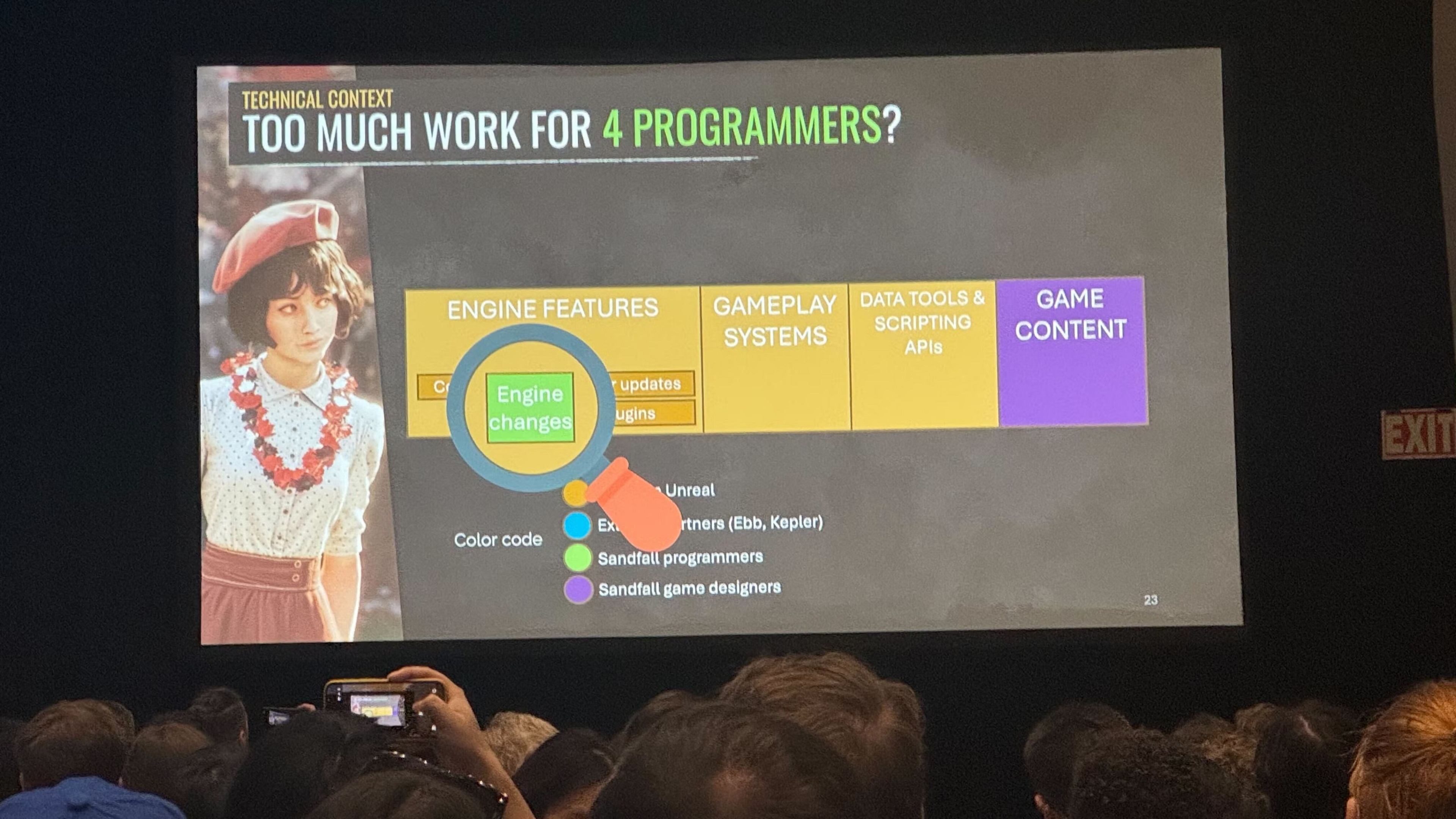 В результате команда из четырёх штатных программистов Sandfall Interactive написала для игры совсем немного кода на C++ — в основном для проработки экспериментальных функций и помощи с оптимизацией.