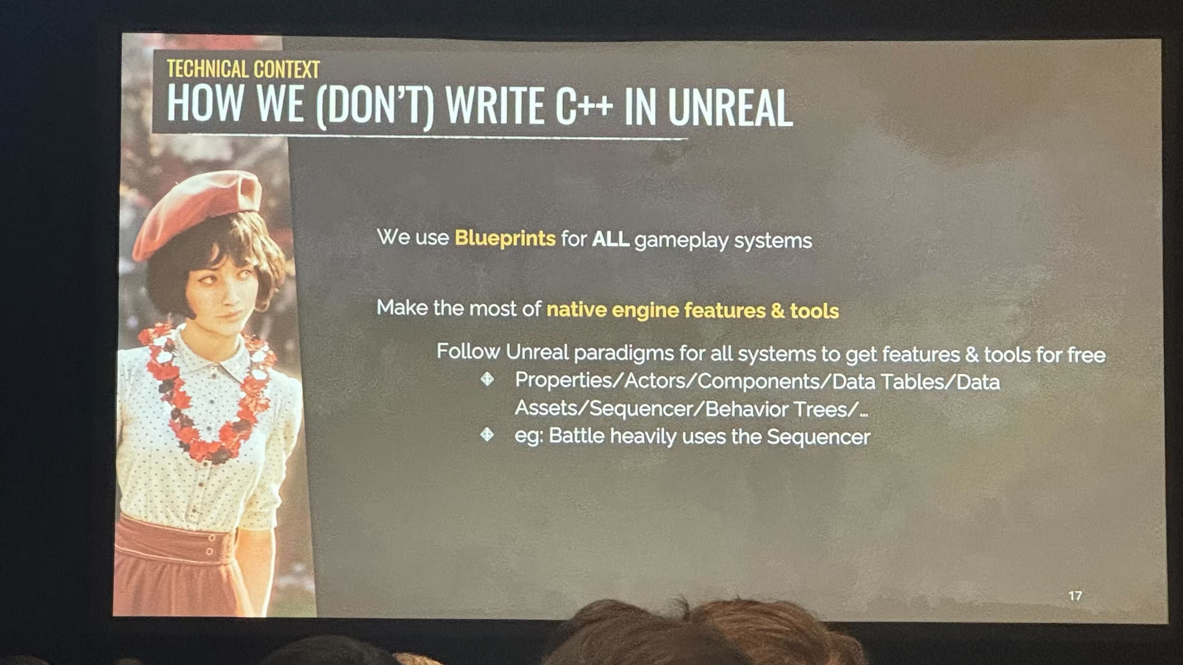 По словам Гиймена и Торреса, 95 % кода для механик игры было создано с помощью системы визуального скриптинга Unreal Blueprints, которая облегчает разработку игровой логики при ограниченных ресурсах или опыте программирования.
