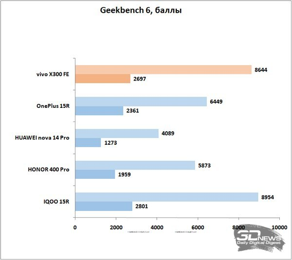 В vivo X300 FE используется субфлагманская платформа Qualcomm – Snapdragon 8 Gen 5. Типичное решение для смартфонов этого класса, которое мы встречали и на IQOO 15R, и на OnePlus 15R.