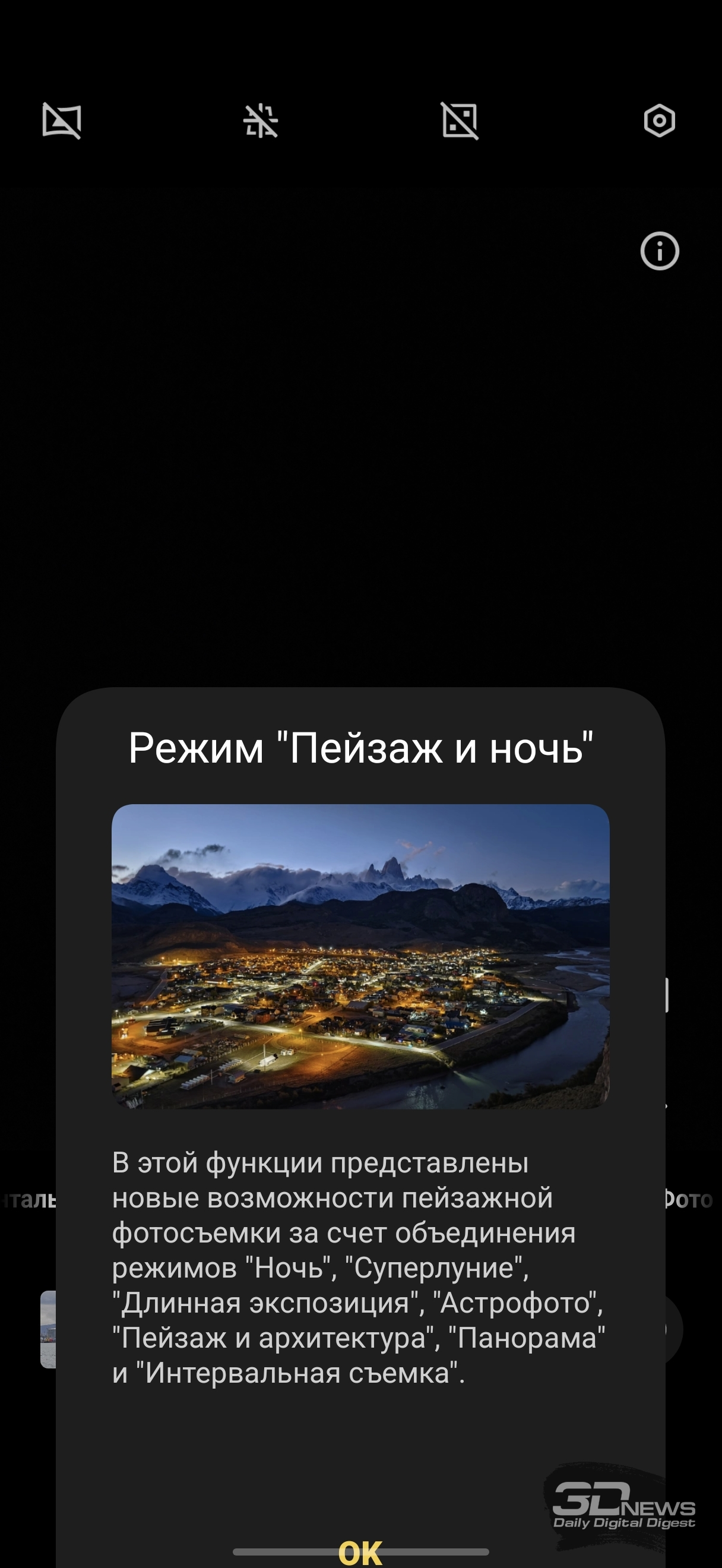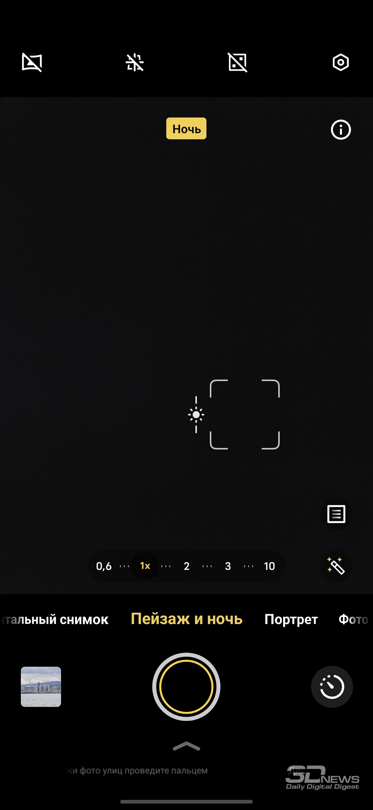 Упомянутым выше сочетанием зума «оптического» и «гибридного» дело, конечно, не ограничивается — также доступны варианты минимального кропа. Помимо опций для главной камеры и телефотомодуля (что как бы предполагается присутствием там Quad Bayer-сенсоров — то есть как бы речь о промежуточных фокусных расстояниях между стандартным и «гибридным» зумами) есть также варианты и для самих «гибридных зумов». Для трехкратного это вполне уместно — например, при 141 эквивалентном миллиметре смартфон снимает точно лучше, чем при 243 мм (то есть доступном по умолчанию в приложении камеры 10-кратном зуме). А вот опции для и так слабенького максимального зума тут откровенно для количества, пользоваться ими не стоит