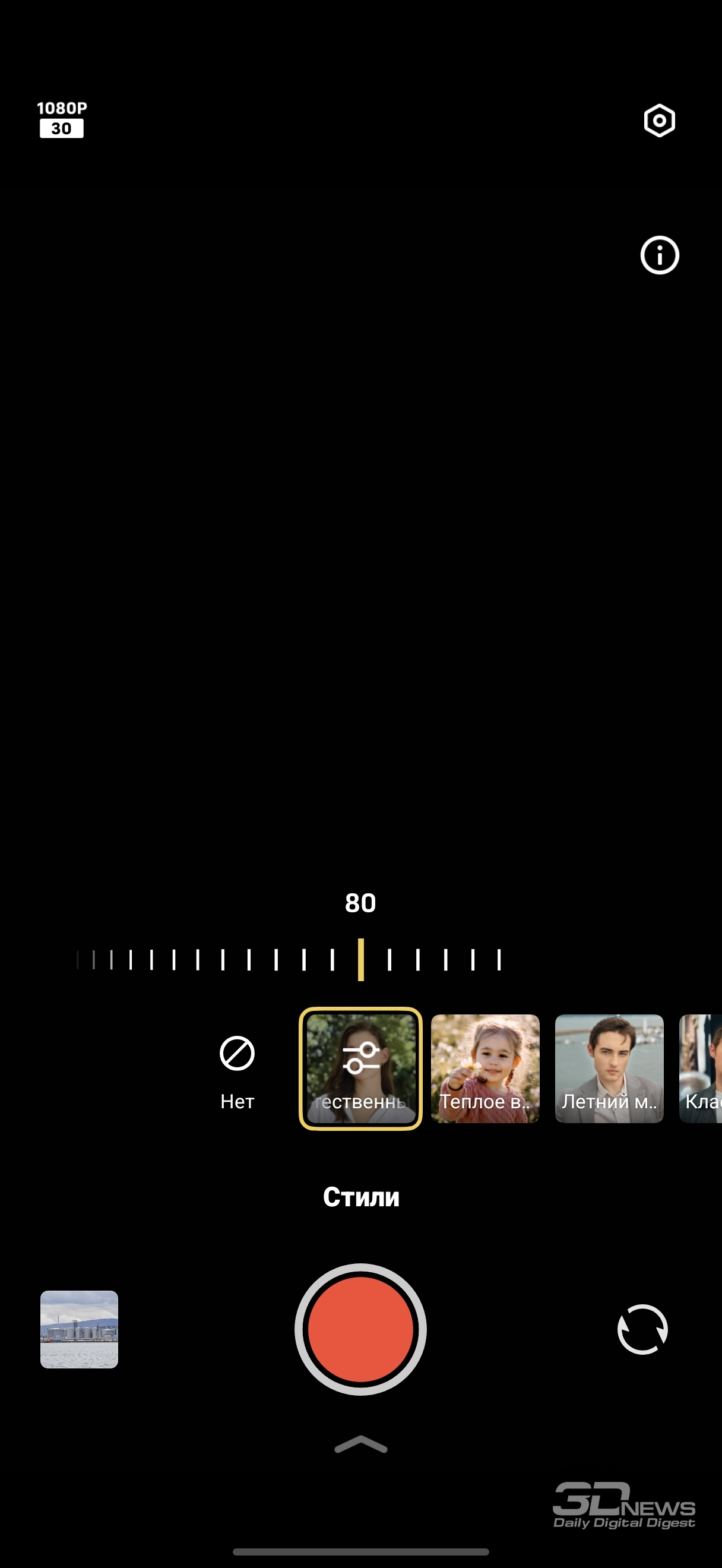 Есть усиленная стабилизация, которая работает вплоть до Full HD-разрешения при 60 кадрах в секунду. Из дополнительных опций стоит сказать про съемку видео с размытием заднего плана («Видеопортрет»), которая работает здесь в Full HD до 30 кадров в секунду. Имеются фильтры, тонирующие картинку, регулируемая ретушь. Флагманских опций, вроде съемки в формате LOG или с учетом стандарта Dolby Vision, нет. По качеству съемки претензий нет — изображение детализированное, с хорошим динамическим диапазоном. Главное — не злоупотреблять программным зумом и пореже переключаться между фокусными расстояниями в процессе съемки, делает это смартфон резковато.