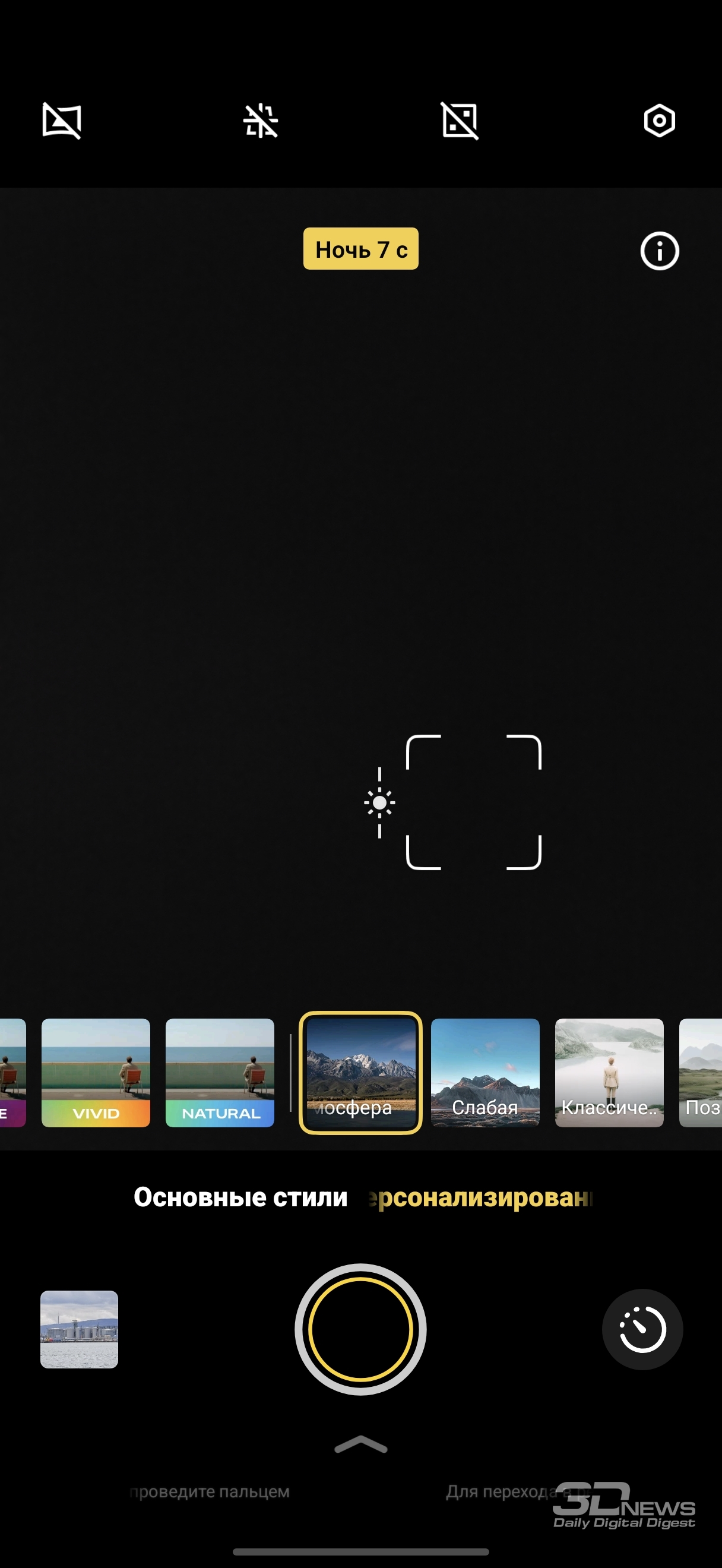 Другая (помимо дополнительного кропа для увеличения количества доступных фокусных расстояний) важная фишка последних лет на дорогих смартфонах — так называемые профили, когда смартфон по-разному работает с цветом, контрастом, яркостью. Они у субфлагмана и старших смартфонов бренда одинаковые: Vivid, Texture, B&W и Natural. По умолчанию выставлен профиль Vivid (условно — «яркий»). С ним мы сделали большинство снимков, примеры которых предложены в этом материале. Цвета в этом профиле более яркие, картинка светлая, как и ожидается, исходя из названия. В профиле Texture цвета становятся чуть более насыщенными, добавляется небольшое виньетирование, повышается контраст. В профиле Natural цвета слегка приглушенные и более теплые, будто бы приближенные к реальности, при этом визуально повышается резкость. Профиль B&W делает картинку монохромной, очень контрастной, с выразительными тенями.