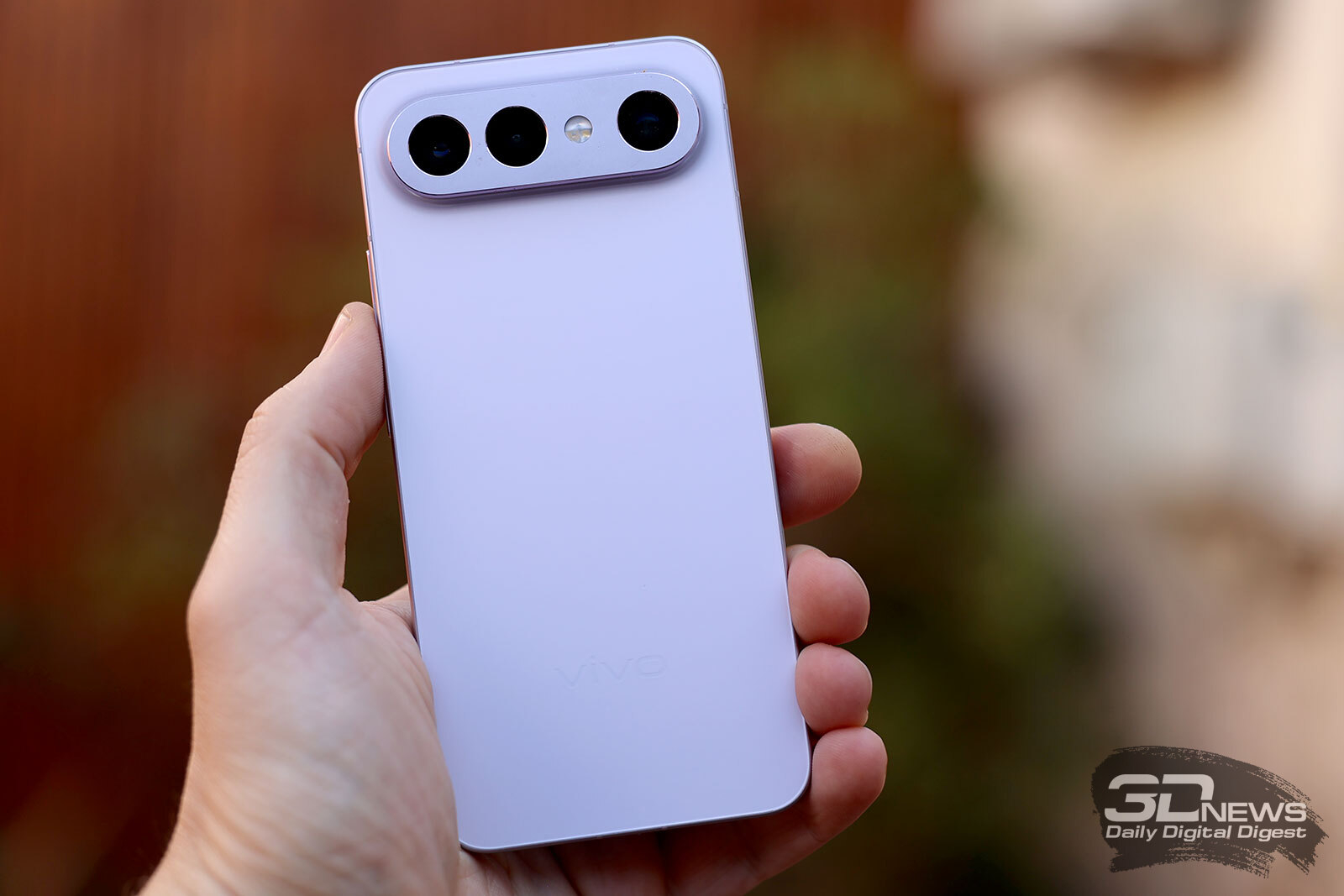 Цветовых вариаций три: черная, лиловая и белая. В белой версии спинка красиво переливается на свету. Но у нас на тесте побывал vivo X300 FE в вариации «холодный лиловый», и, надо сказать, он тоже смотрится свежо и эффектно даже без рисунка на задней панели.