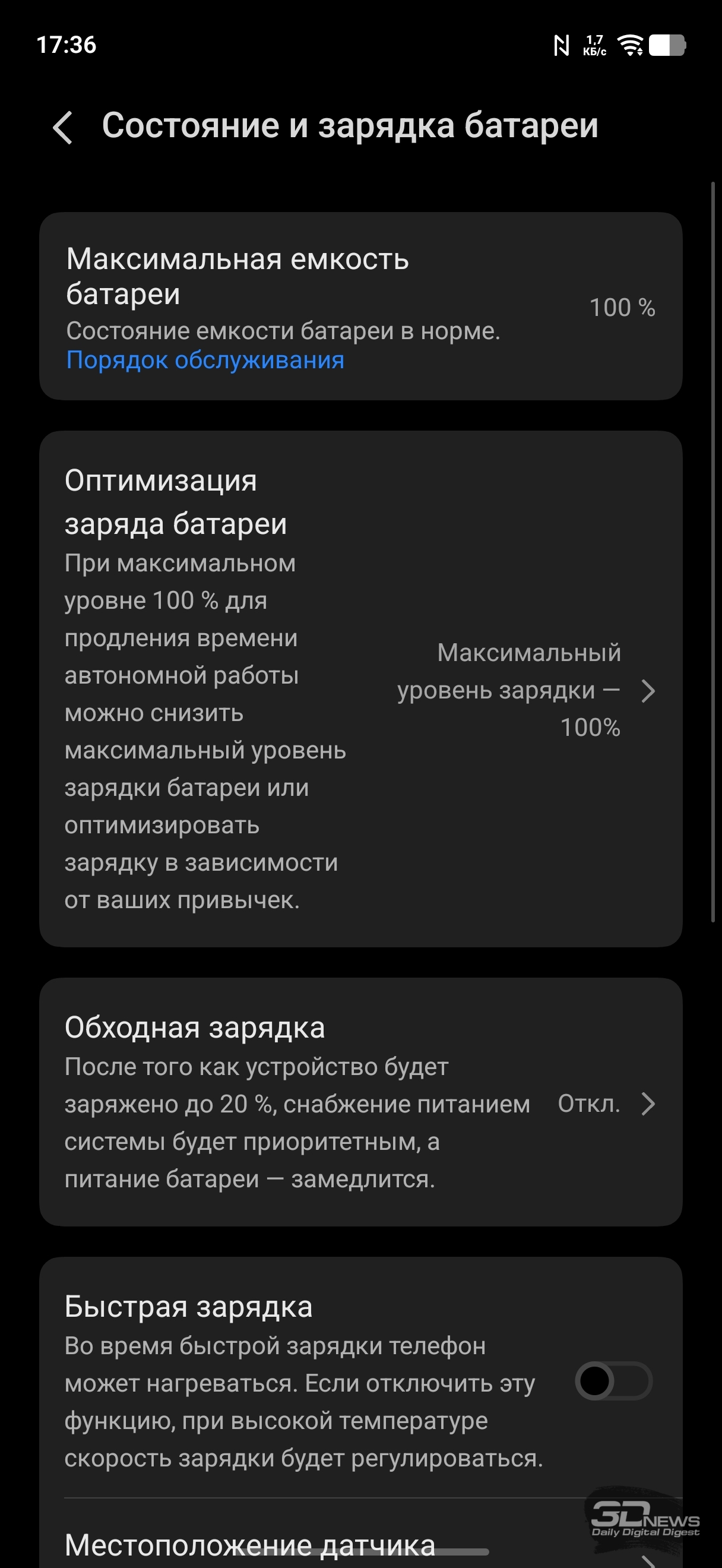 В комплекте со смартфоном поставляется адаптер мощностью 90 Вт. На зарядку ему требуется около часа — отличный результат. Также поддерживается и беспроводная зарядка мощностью до 40 Вт. Единственная отсутствующая «флагманская» опция — это обратная беспроводная зарядка, аксессуары можно заряжать только по кабелю.