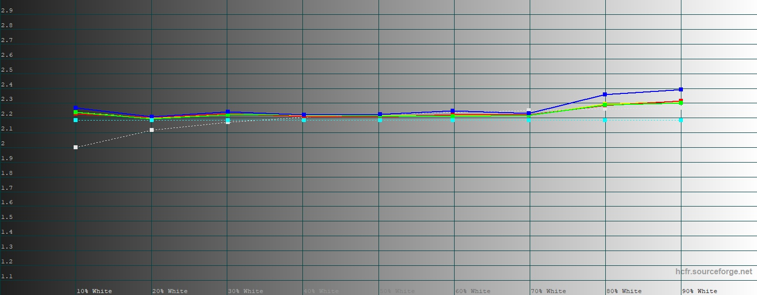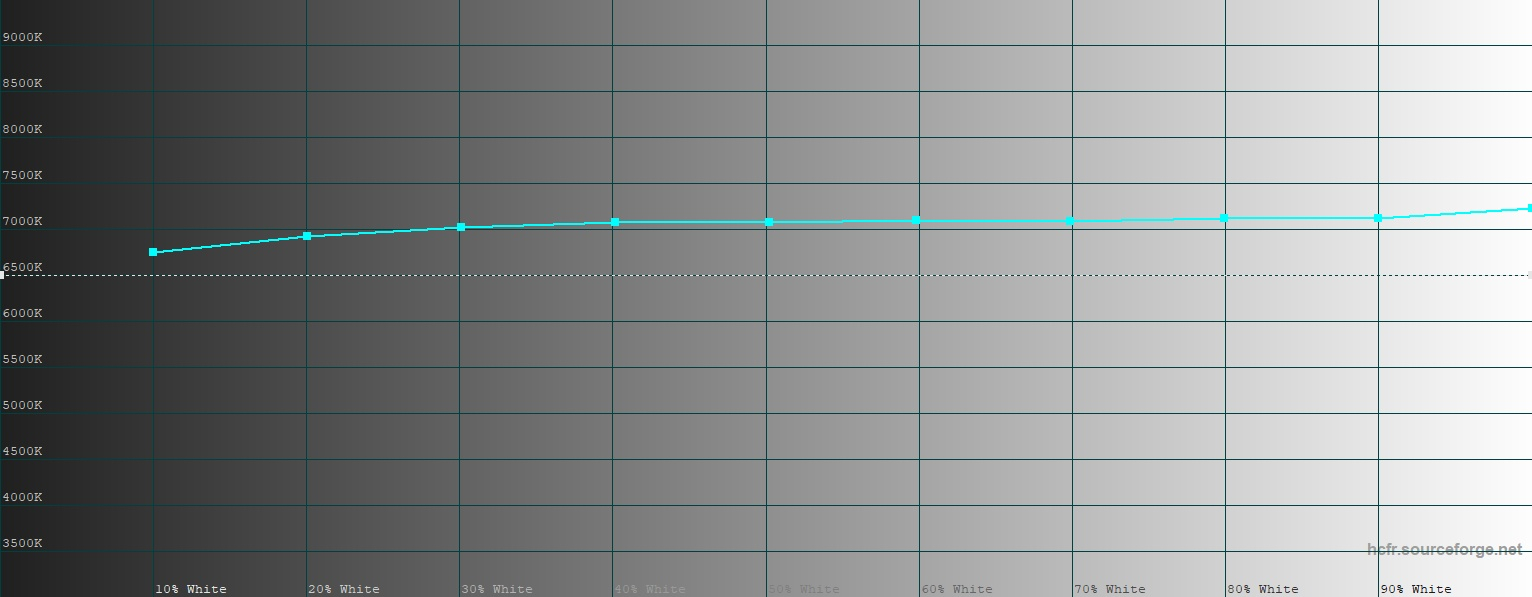 По умолчанию дисплей работает в режиме «Естественный». Цветовое пространство здесь соответствует охвату sRGB почти в точности. Гамма в норме (2,18), кривые стабильны. Цветовая температура очень близка к эталону (6 700-6 800 К). Среднее отклонение DeltaE по таблице Color Checker, включающей в себя как широкий спектр цветов, так и оттенки серого, составляет 5,13 при норме 3,00 и эталонном значении 2,00. Превышение довольно значительное.