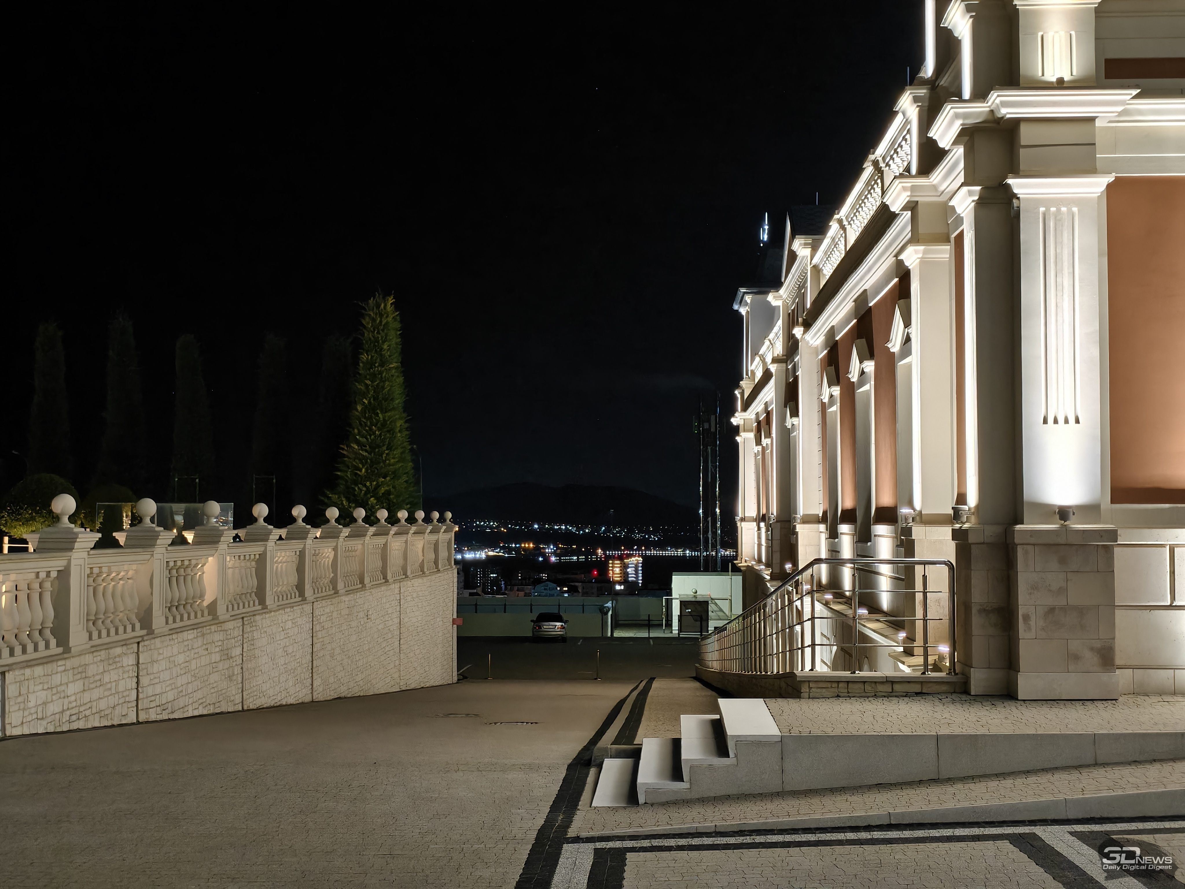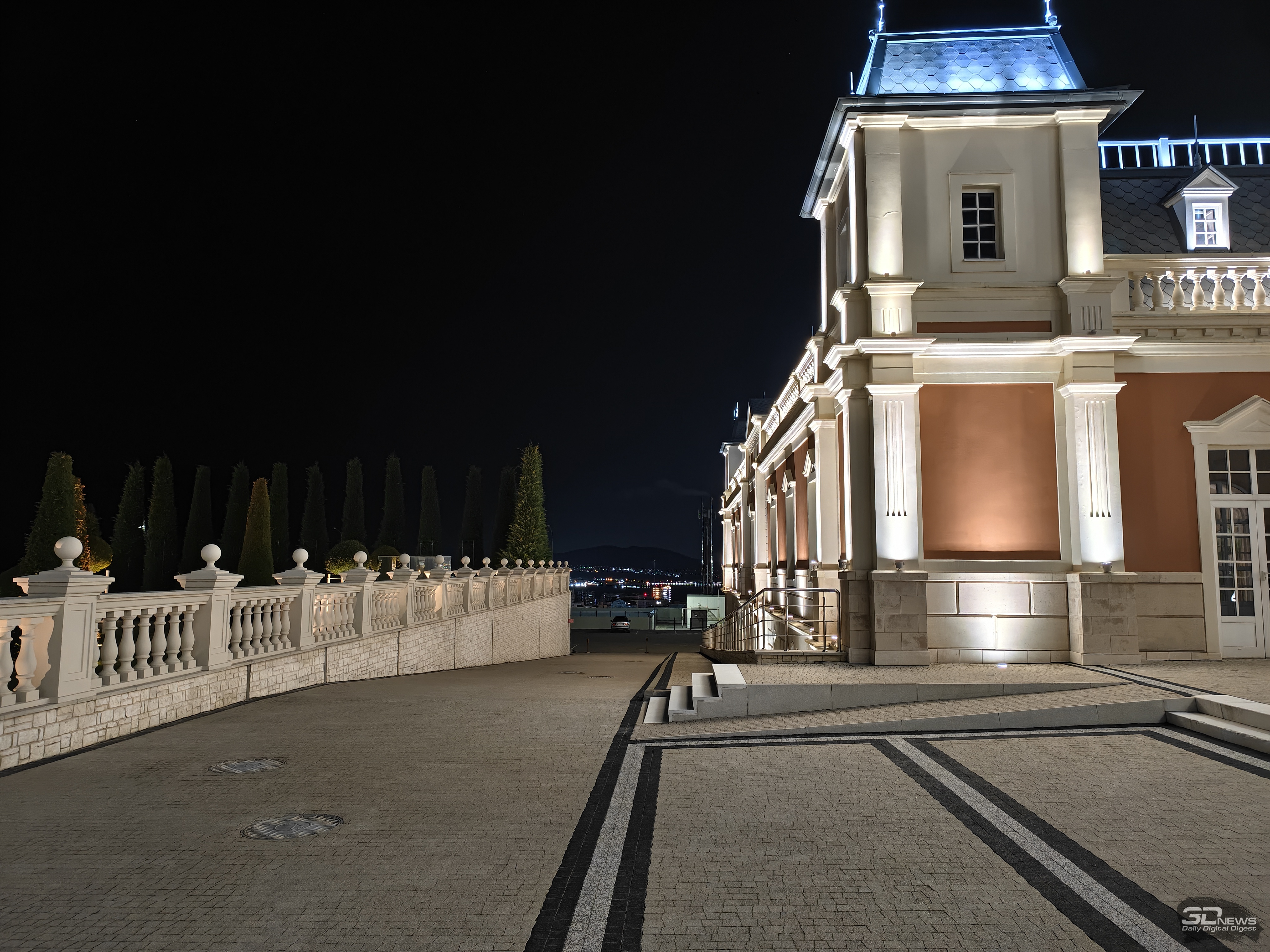 Ночной режим активируется автоматически при съемке в базовом формате при недостатке освещения, но при желании можно включить его вручную (в этом формате запускается более длинная «выдержка» — точнее, более длинная серия кадров, из которых склеивается конечное изображение). Теперь ночной режим находится в особом подменю «Пейзаж и ночь», где, помимо склейки снимков в условиях слабого освещения, можно выставить съемку с повышенным разрешением, а также настроить динамический автофокус. Из особенностей этого режима — уже упомянутые особые фильтры и различные опции, связанные с длинной экспозицией и позволяющие снимать водопады с «молочной водой», ночное небо или автомобили с проводкой; для большинства из них понадобится штатив или какая-то опора, снимать с длинной экспозицией с рук не рекомендуется. Что касается базовой ночной съемки, то специально переходить в режим «Пейзаж и ночь» нет необходимости — смартфон хорошо снимает при недостаточном освещении хорошо без дополнительной помощи, достаточно просто не отключать «ночную съемку» в базовом режиме. Даже без дополнительной склейки, к слову, vivo X300 FE справляется уверенно.