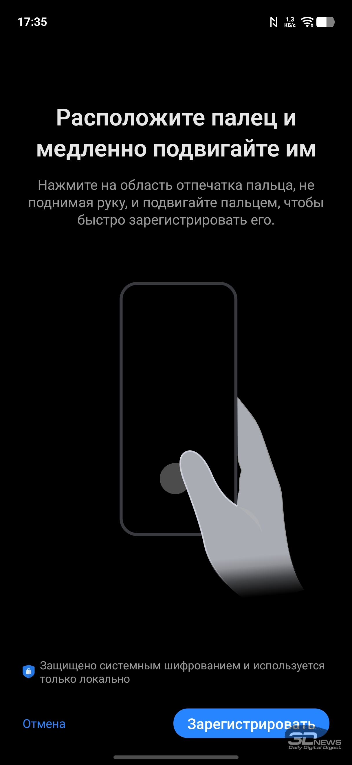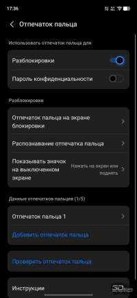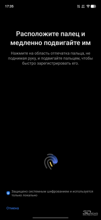 Сканер отпечатков пальцев разместился в поверхности экрана. Использован ультразвуковой сенсор, и он весьма хорош – работает быстро, с минимальным процентом сбоев, да еще и расположен высоко. Есть тактильный отклик как при удачном, так и при неудачном срабатывании, а реагирует сенсор на прикосновения в том числе и влажных пальцев, под дождем не спасует. Сканер можно продублировать при помощи системы распознавания лица с использованием фронтальной камеры без датчика глубины.