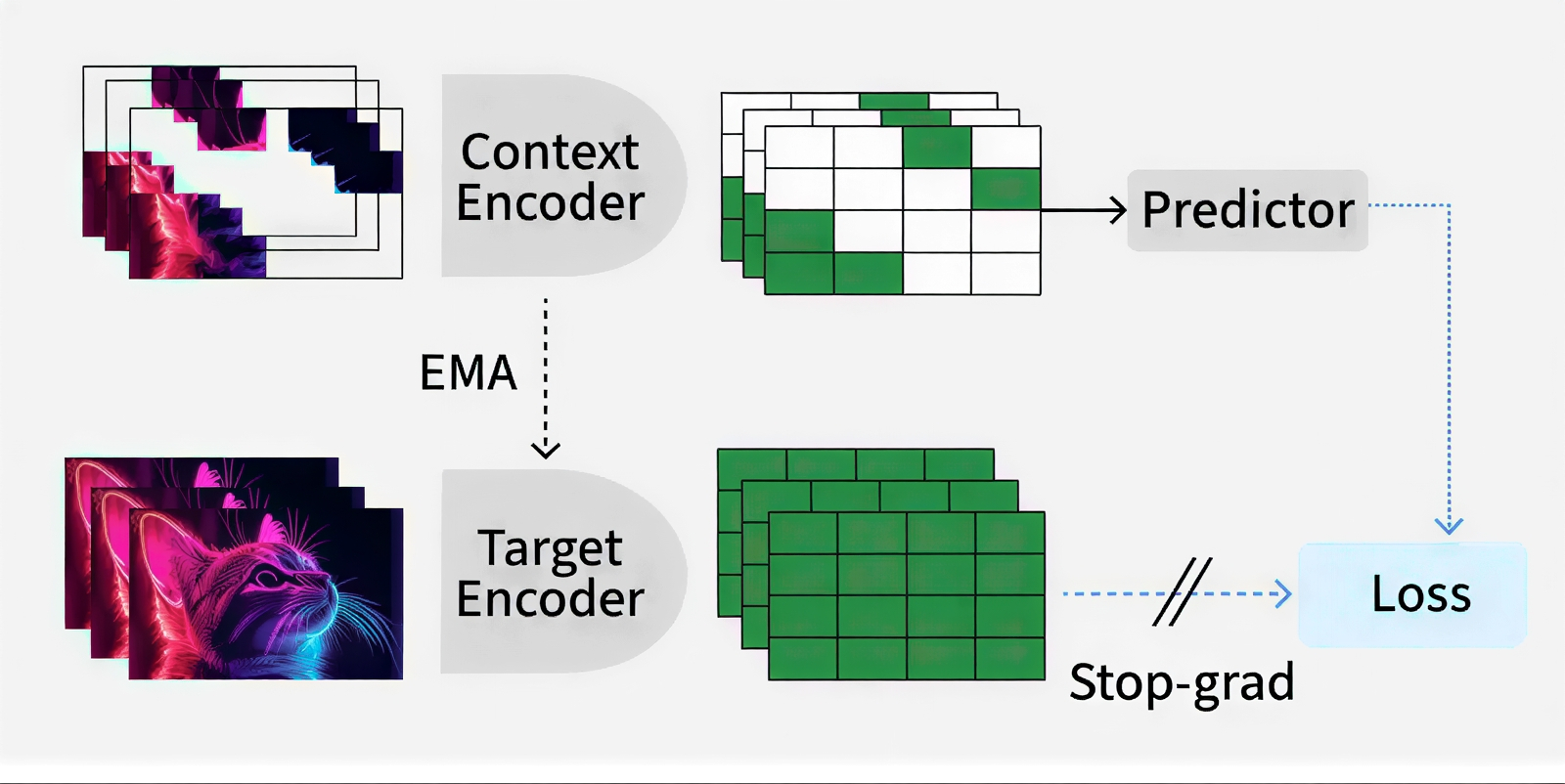 Базовая схема обучения JEPA: контекстный кодировщик обрабатывает открытую для системы часть данных (собственно контекст) и формирует его векторное представление в латентном пространстве; целевой кодировщик обрабатывает ту часть данных, которую системе необходимо предсказать (цель), и формирует целевое векторное представление; предиктор принимает контекстное векторное представление и предсказывает на его основе целевое векторное представление; далее, минимизируя особым образом заданную функцию потерь, модель обучается сокращать расстояние (всё в том же гипермногомерном латентном пространстве) между предсказанным целевым векторным представлением и фактическим целевым векторным представлением (источник: GeeksForGeeks) Если коротко, JEPA извлекает из обучающих данных не некие опосредованные и неявные закономерности («за токенами, кодирующими „Красная“, с довольно высокой вероятностью должны идти токены, соответствующие слову „площадь“», а вопросом «Почему так?» или «Что это значит?» модель не то что не задаётся — не способна задаться), но абстрактные представления о том, как устроен мир. Лекун и его единомышленники верят, что как раз такой подход позволит им конструировать системы, осознающие физическую реальность так же, как люди и животные: не через язык, а через телесный опыт. В том направлении кибернетики, что занимается роботами и машинным обучением, где-то с 1980-х известен парадокс Моравека: «Относительно легко заставить компьютеры демонстрировать уровень взрослого человека в тестах на интеллект или при игре в шашки, однако сложно или практически невозможно наделить их навыками даже годовалого ребёнка в области чувственного восприятия и движений». В приложении к людям он также справедлив: мы лучше осознаём простые процессы, которые плохо работают, чем сложные, которые действуют идеально, как раз потому, что способности наши — включая когнитивные — формировались эволюционным путём, в ходе естественного отбора. Машину же учат решать определённые задачи на массиве данных, накопленных и оцифрованных людьми. А людям решительно не интересно описывать, чем в деталях стул отличается от чашки или какие в точности действия необходимо произвести отдельными частями тела, чтобы подняться с кресла в гостиной, дойти до кухни и налить воды в стакан. Вот почему обученные на самых обширных массивах данных БЯМ пасуют перед тривиальнейшими задачами (когда им доверяют управлять роботами, скажем): нет в этих массивах специфически важной информации.