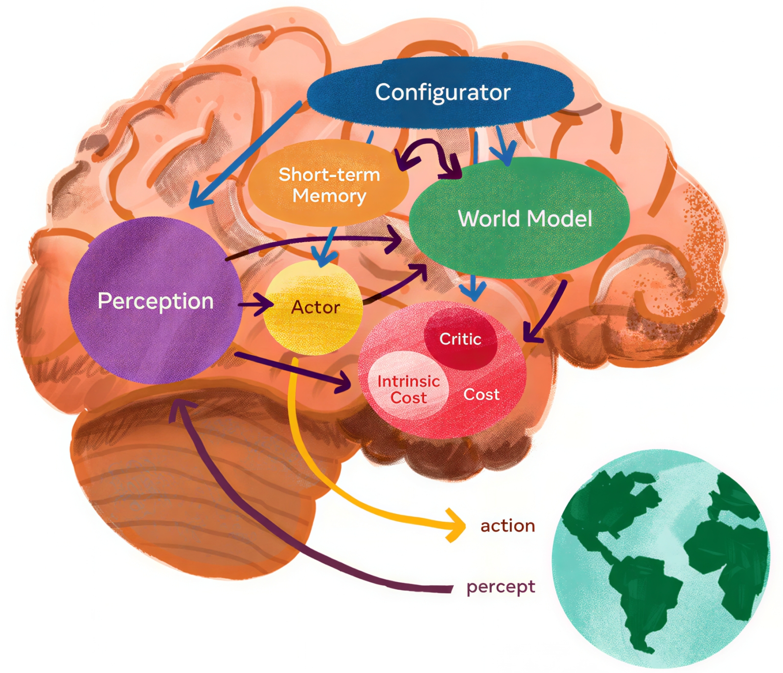 Общая архитектура системы автономного интеллекта, предложенная Яном Лекуном в начале 2022 г., сводится к «осмыслению» реального мира ИИ-моделью — с обратным подкреплением через реакцию этого самого мира на её действия (источник: Yann LeCun) Ещё в 2024 году, выступая на научной конференции, Ян Лекун горячо заявлял: «Языковые модели полезны для определённого круга задач, но они — тупик на пути к искусственному интеллекту человеческого уровня. Если вы аспирант, не посвящайте себя работе над БЯМ. Сосредоточьтесь на поиске методов, которые позволят обходить их принципиальные ограничения». Теперь, в марте 2026-го, он пообещал инвесторам, что в течение года-двух его AMI начнёт переговоры с корпоративными партнёрами, заинтересованными в практических приложениях JEPA, а уже через три-пять лет станет «главным мировым поставщиком достаточно универсальных интеллектуальных систем», готовых к развёртыванию в любой области, где в принципе требуется приложение сильного машинного интеллекта. Столь прочная уверенность Яна Лекуна в перспективах моделей мира основана на том, что им удастся реализовать три ключевых принципа, которые он и его коллеги закладывают прямо сейчас в их структуру: