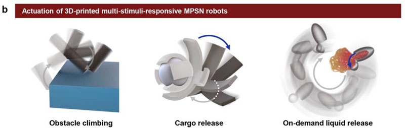 В отличие от обычной 3D-печати, 4D-печать добавляет в модель фактор изменчивости, или времени, как считают учёные. В частности, напечатанные структуры способны автономно изменять форму и двигаться под воздействием внешних факторов без использования двигателей и источников питания. Тепло и свет деформируют структуру или конечности роботов в соответствии с заданной памятью формы, а добавление в серу около 20 % магнитного порошка позволяет телам роботов управляемо перемещаться в магнитных полях.