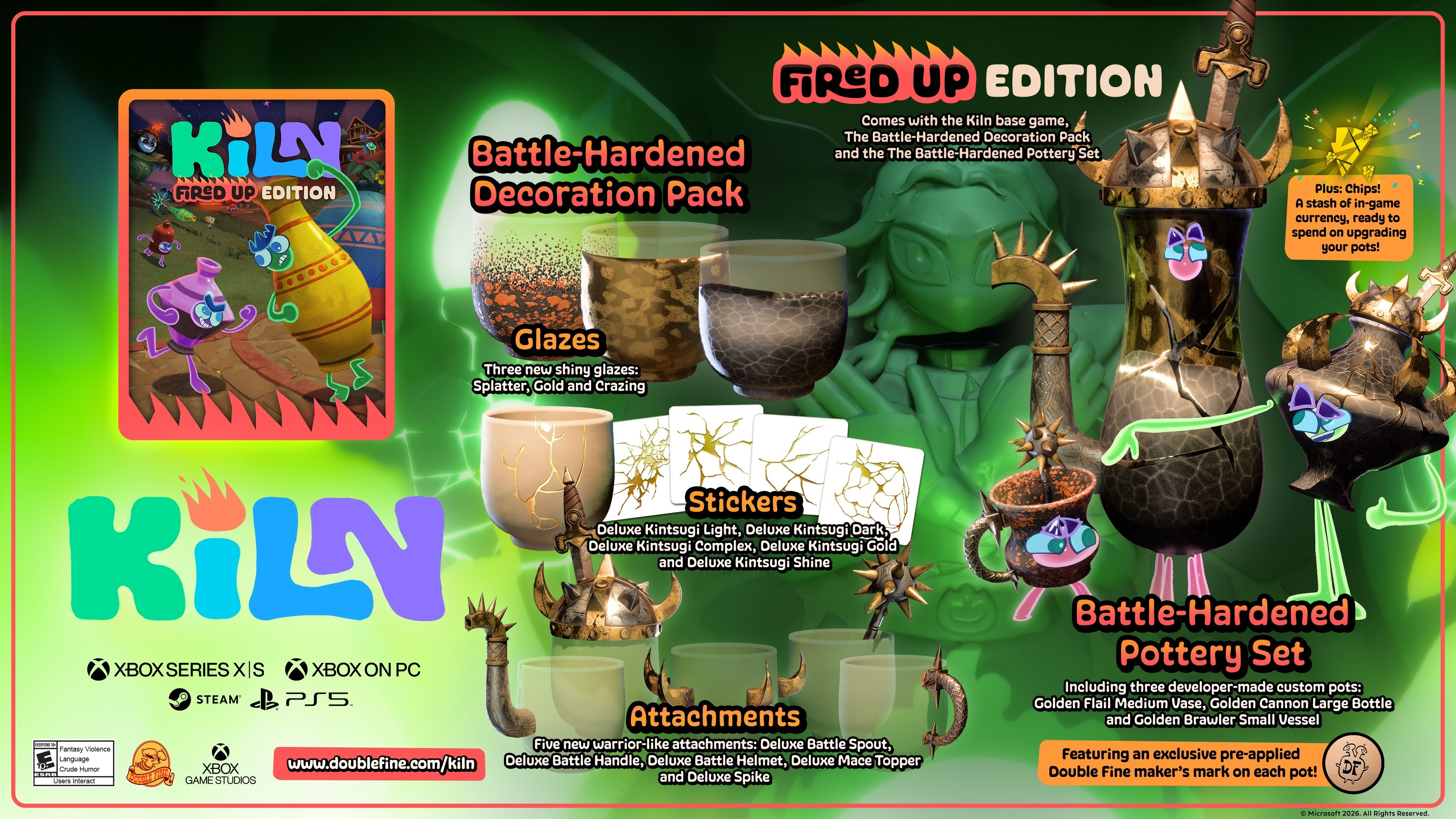 Как стало известно, Kiln поступит в продажу 23 апреля 2026 года для PC (Steam, Microsoft Store), PS5, Xbox Series X и S. Со дня релиза игра также будет доступна в подписке Game Pass (Ultimate, PC).