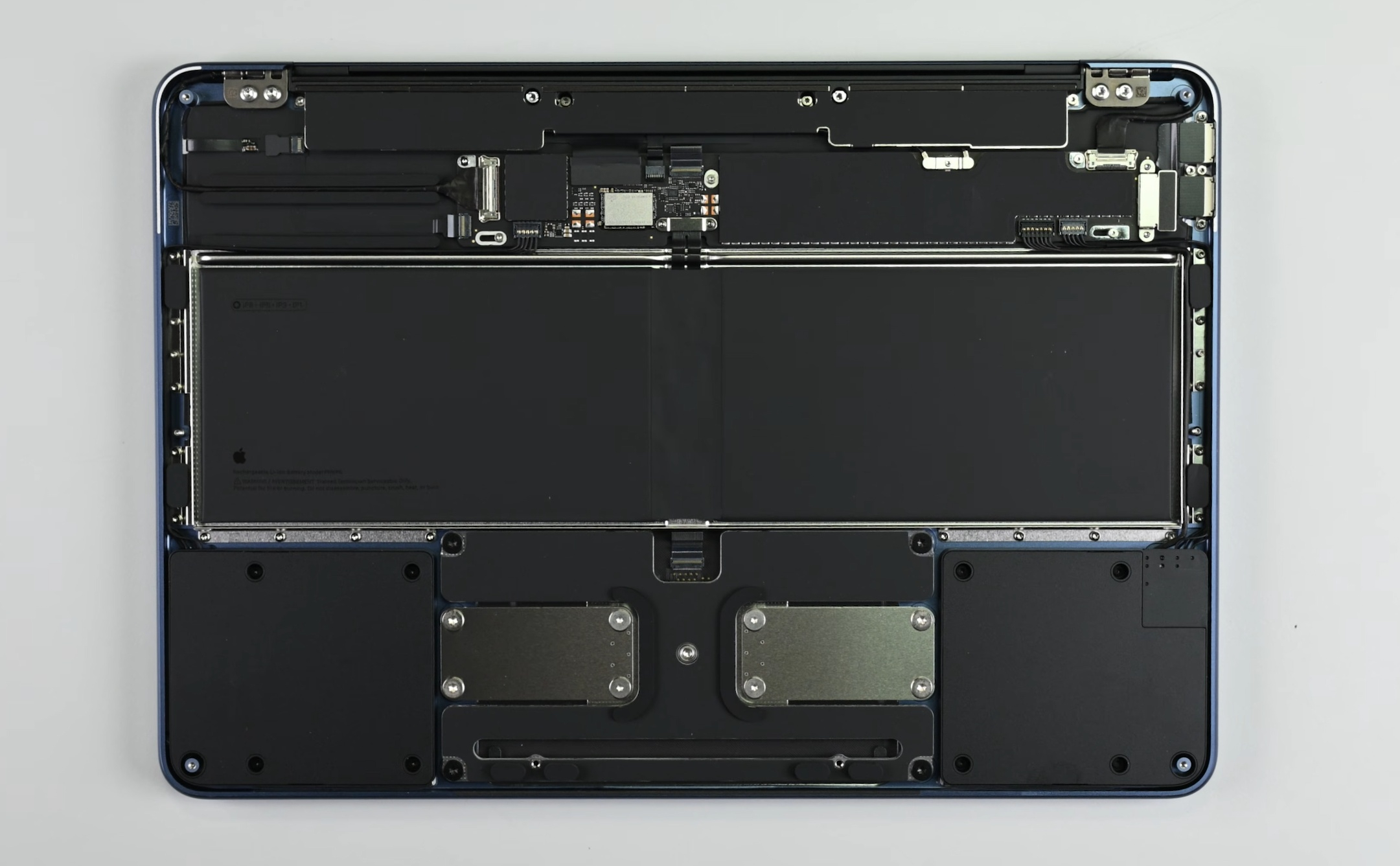 Главное улучшение — батарея MacBook Neo легко доступна и закреплена 18 винтами, а не приклеена, как у других MacBook, поэтому её замена будет намного проще и безопаснее. Компоновка в целом выглядит весьма удобной, поскольку материнская плата, батарея, тачпад и другие составляющие не перекрывают друг друга, так что для их замены не придётся разбирать ноутбук целиком. Это потребуется разве что для замены клавиатуры, которая, к слову, также закреплена винтами.
