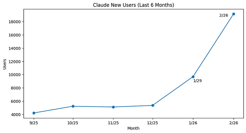 Конфликт с Минобороны США и забавная реклама против ChatGPT неожиданно сыграли на руку Anthropic. Аналитика анонимизированных транзакций по кредитным картам примерно 28 млн американских пользователей, проведённая компанией Indagari по заказу издания TechCrunch, продемонстрировала рекордный приток платных подписчиков к нейросети Claude.