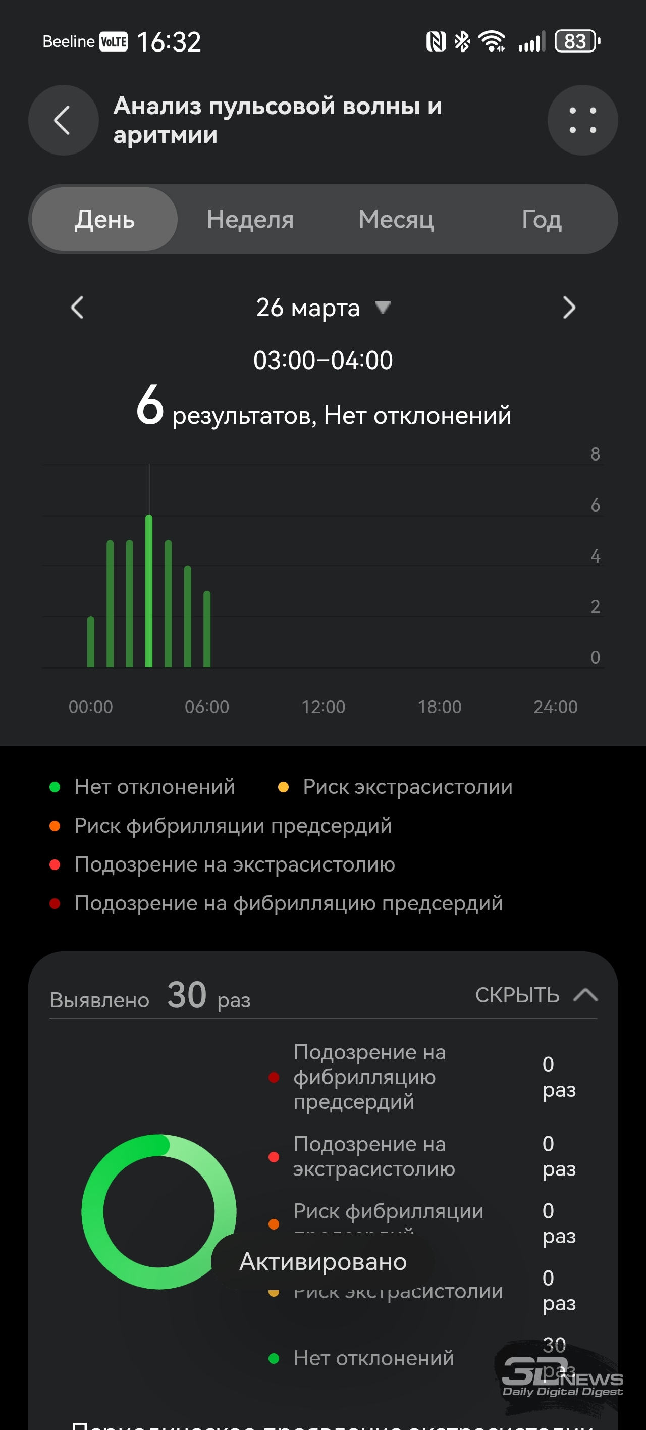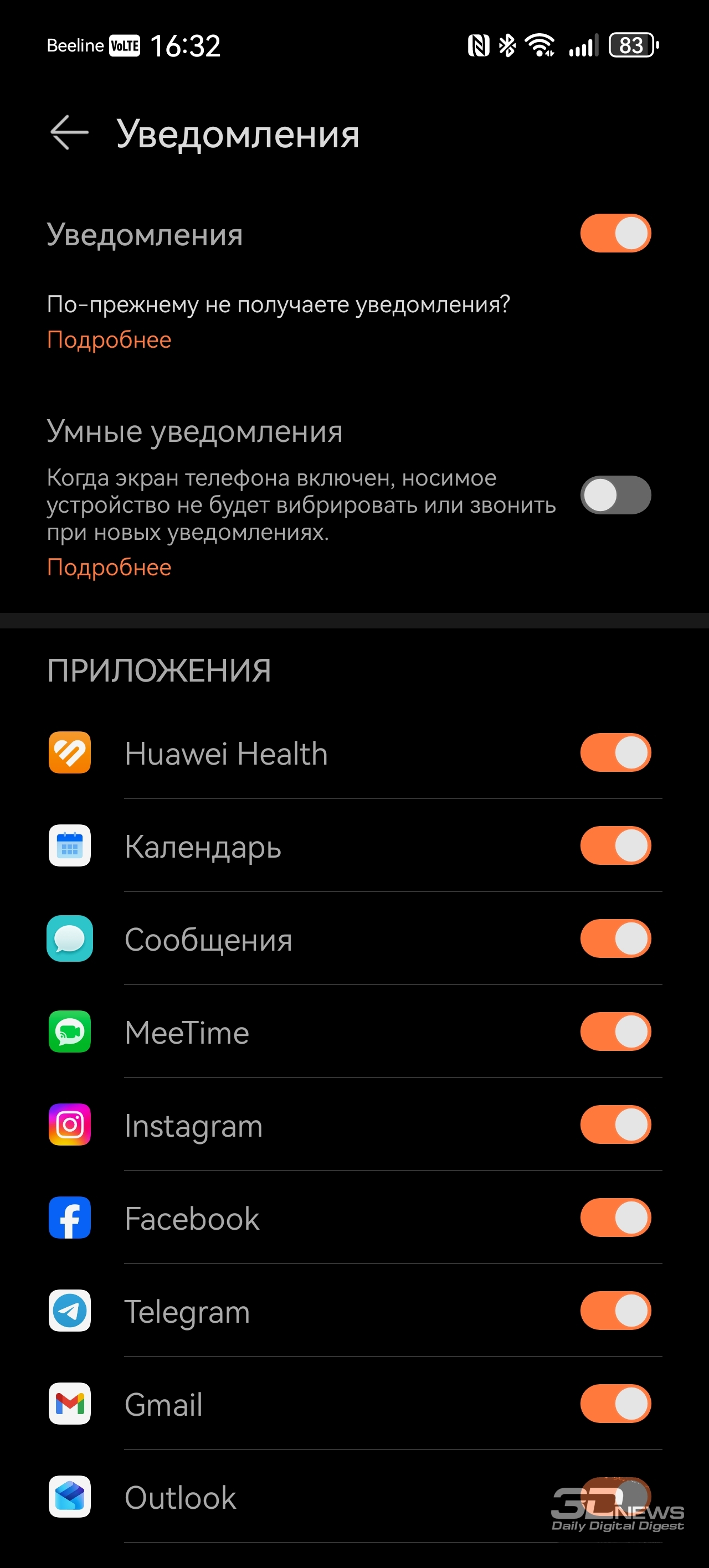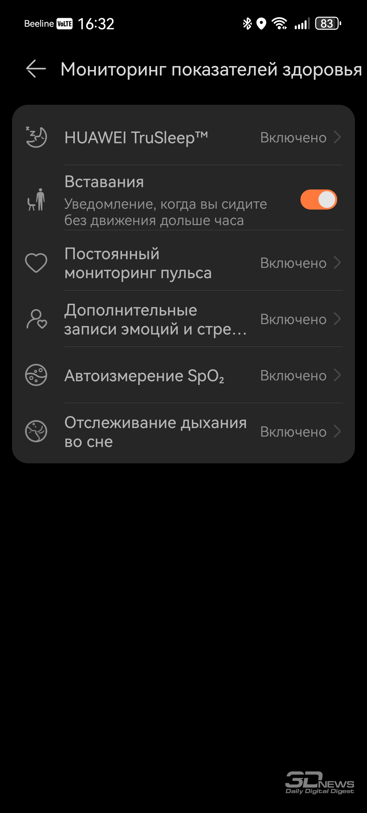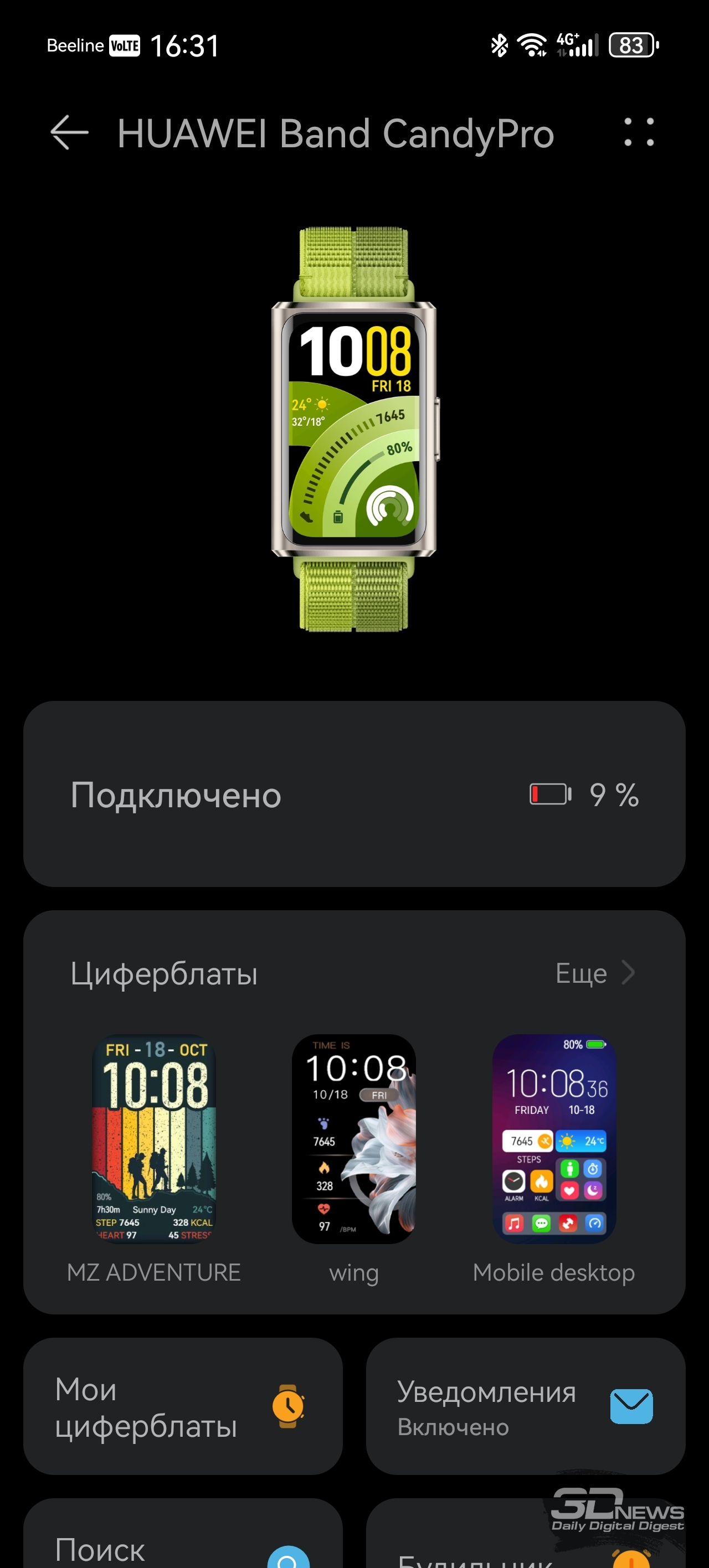 Со смартфоном браслет соединяется при помощи Bluetooth (теперь — версии 6.0), требуется приложение Huawei Health, предустановленное на гаджеты Huawei и доступное в AppStore для iOS. На Android-же устройства придется устанавливать это приложение при помощи apk-файла. Функциональное и простое в оформлении, оно применяется для работы со всеми носимыми устройствами бренда — с его помощью можно отслеживать поступающие данные о здоровье, менять циферблаты и так далее. Есть даже встроенный в приложение виртуальный инструктор по бегу, задействующий для тренировок нейросети, конечно же. Теперь же поговорим о функциональности HUAWEI Band 11 Pro – браслету есть чем удивить и по сравнению с конкурентами, и по сравнению с предшественниками. «База», скажем так, тут обыкновенная: как и любой современный фитнес-браслет, HUAWEI Band 11 Pro умеет считать пульс, шаги, сон, уровень кислорода в крови, записывать данные о тренировках; этот список дополняет возможность измерять уровень стресса и предлагать дыхательные упражнения, если у вас с этим перегрузка. Если вы засиделись, браслет вибрирует и предлагает подвигаться. HUAWEI Band 11 Pro Но в Band 11 Pro добавлено несколько возможностей, которые мы на подобных устройствах просто не ожидаем увидеть. Если анализ пульсовой волны на предмет возможной аритмии мы наблюдали еще на HUAWEI Band 9, а улучшенный мониторинг сна — исключительно программное улучшение (и отслеживать дыхание браслет не умеет — микрофон отсутствует), то встроенный GPS для браслета — редкость. Причем Huawei обещает высокую точность позиционирования благодаря использованию специального чипа. В теории на пробежку брать с собой смартфон не обязательно — как минимум для записи трека он здесь не нужен. С обязанностями устройства-компаньона HUAWEI Band 11 Pro также справляется вполне уверенно: уведомления и звонки браслет принимает быстро и корректно, но ответить на звонок при помощи браслета нельзя – повторюсь, тут нет микрофона, отсутствует и динамик. Заявлено, что HUAWEI Band 11 Pro может проработать до двух недель, но, как и в случае с любыми часами/браслетами, тут все индивидуально — зависит от того, постоянно ли вы измеряете свои данные (пульс, кислород и так далее), насколько часто тренируетесь. У меня Band 11 Pro успешно «жил» полторы недели. Заряжается браслет за 45 минут. Несмотря на свои весьма серьезные возможности, HUAWEI Band 11 Pro относится к бюджетному сегменту устройств — на старте браслет стоит 4 999 рублей (при цене на базовый HUAWEI Band 11 – 3 999 рублей).