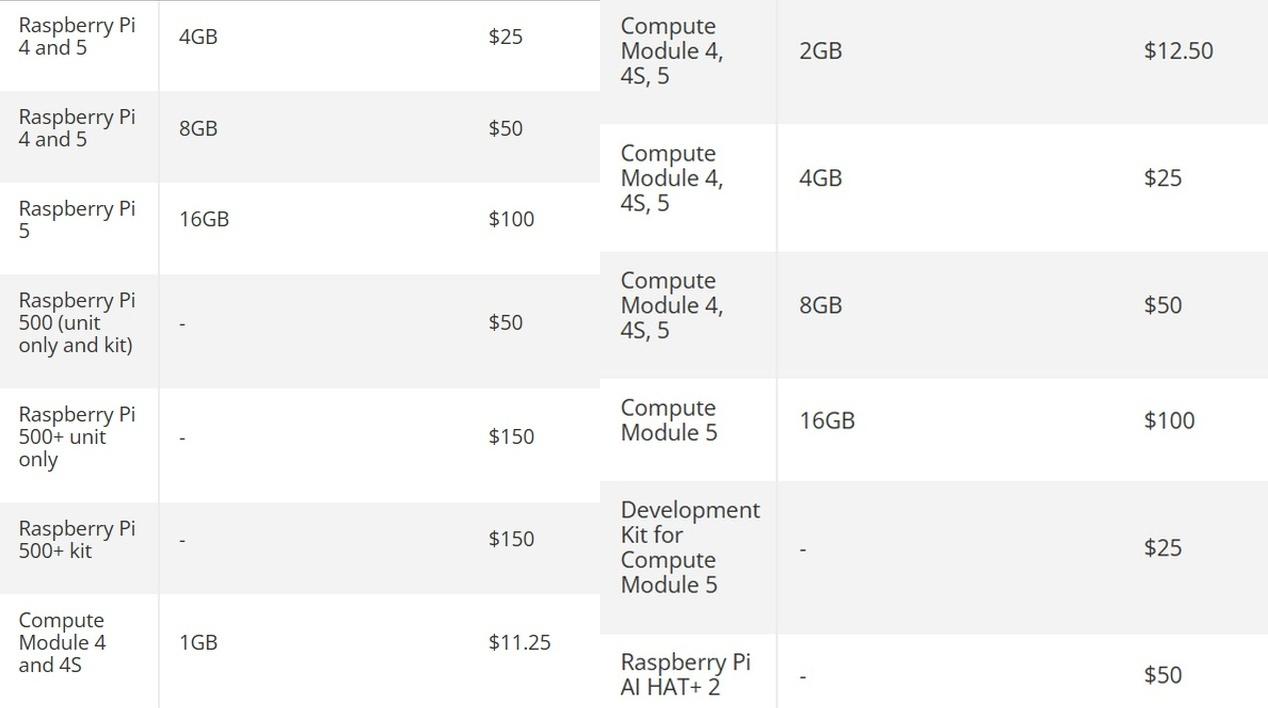 В целом, повышение напрямую связано с объёмом установленной оперативной памяти. «Как бы ни были неприятны эти повышения цен, есть и положительные моменты. Нам удалось удержать цену Raspberry Pi 400 с 4 Гбайт памяти на уровне $60, а варианты Raspberry Pi 4 и Raspberry Pi 5 с 1 Гбайт и 2 Гбайт памяти — в диапазоне от $35 до $65. Это мощные и универсальные современные компьютеры Raspberry Pi по доступной цене», — сообщил представитель компании.