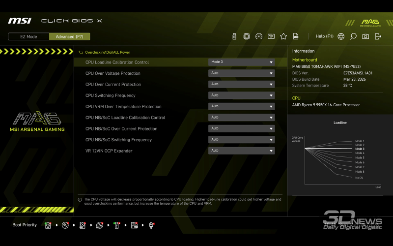 У компании MSI на наборе системной логики AMD B850 в мейнстримовой серии MAG (MSI Arsenal Gaming) есть сразу три материнские платы с названием TOMAHAWK. Модель «Томагавка» Max WiFi мы уже тестировали прошлым летом, и к сегодняшнему дню она модернизирована до второй версии с некоторыми улучшениями и оптимизациями. А вот младшая версия этой платы с самым простым названием TOMAHAWK WiFi только ещё попала к нам на тесты и никаким оптимизациям не подвергалась. Вероятно, в MSI решили, что это и так самодостаточная плата с необходимым или даже исчерпывающим функционалом для создания игровой системы любого уровня? Хотя, может быть, они просто ждут нашего вердикта чтобы что-то улучшить. Так это на самом деле или нет, мы и попробуем выяснить в сегодняшнем материале. ⇡#Технические характеристики и стоимость