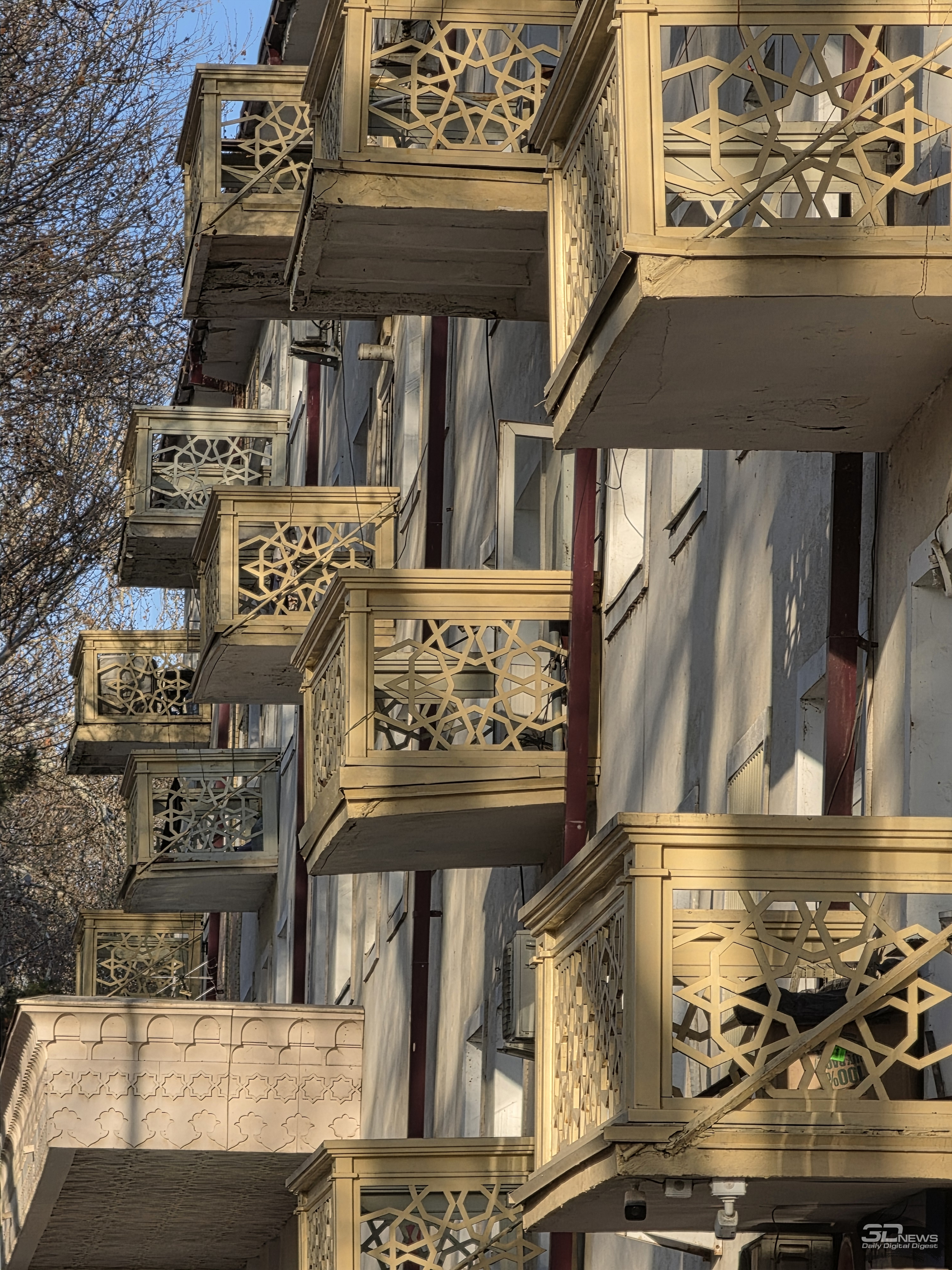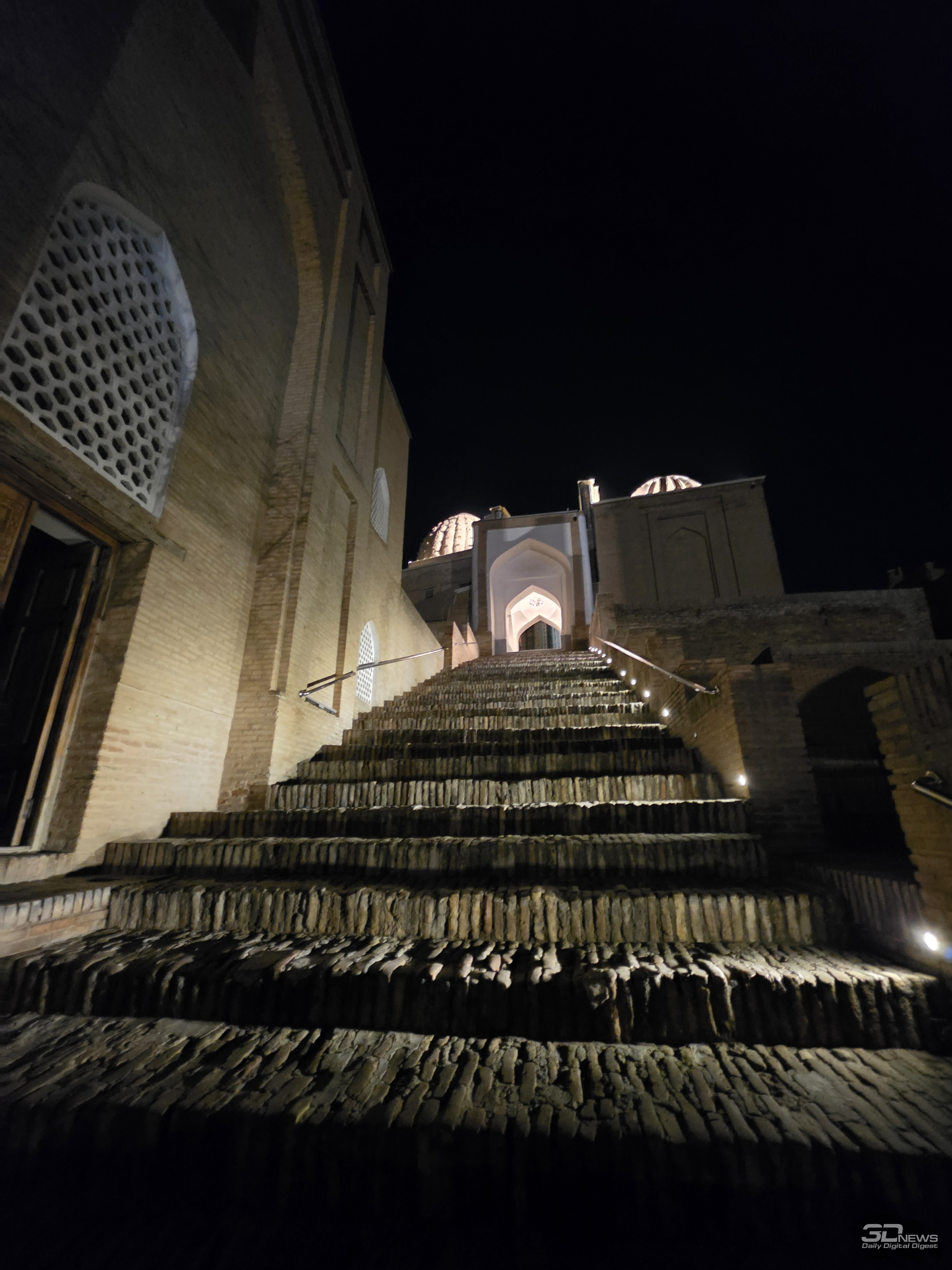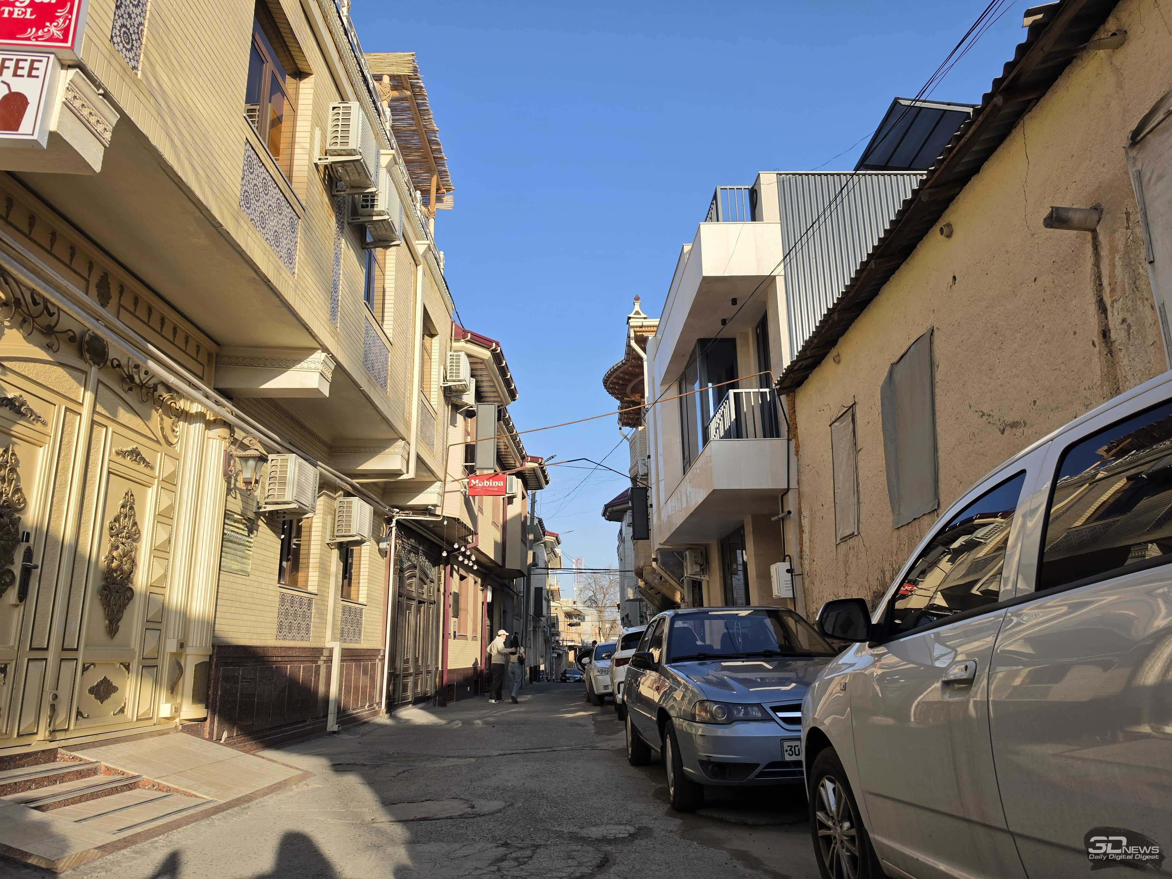 Отдельной строкой хочется отметить работу смартфона в сценке с кофейней на площади Пои-Калян в Бухаре: очень сложный по светотени сюжет, где мы не видим никаких пересветов. А как раз таки «плоский» по глубине резкости из-за маленького сенсора кадр здесь идет в плюс, в зоне резкости оказывается все. При помощи полнокадровой камеры, к примеру, такого эффекта добиться нельзя.